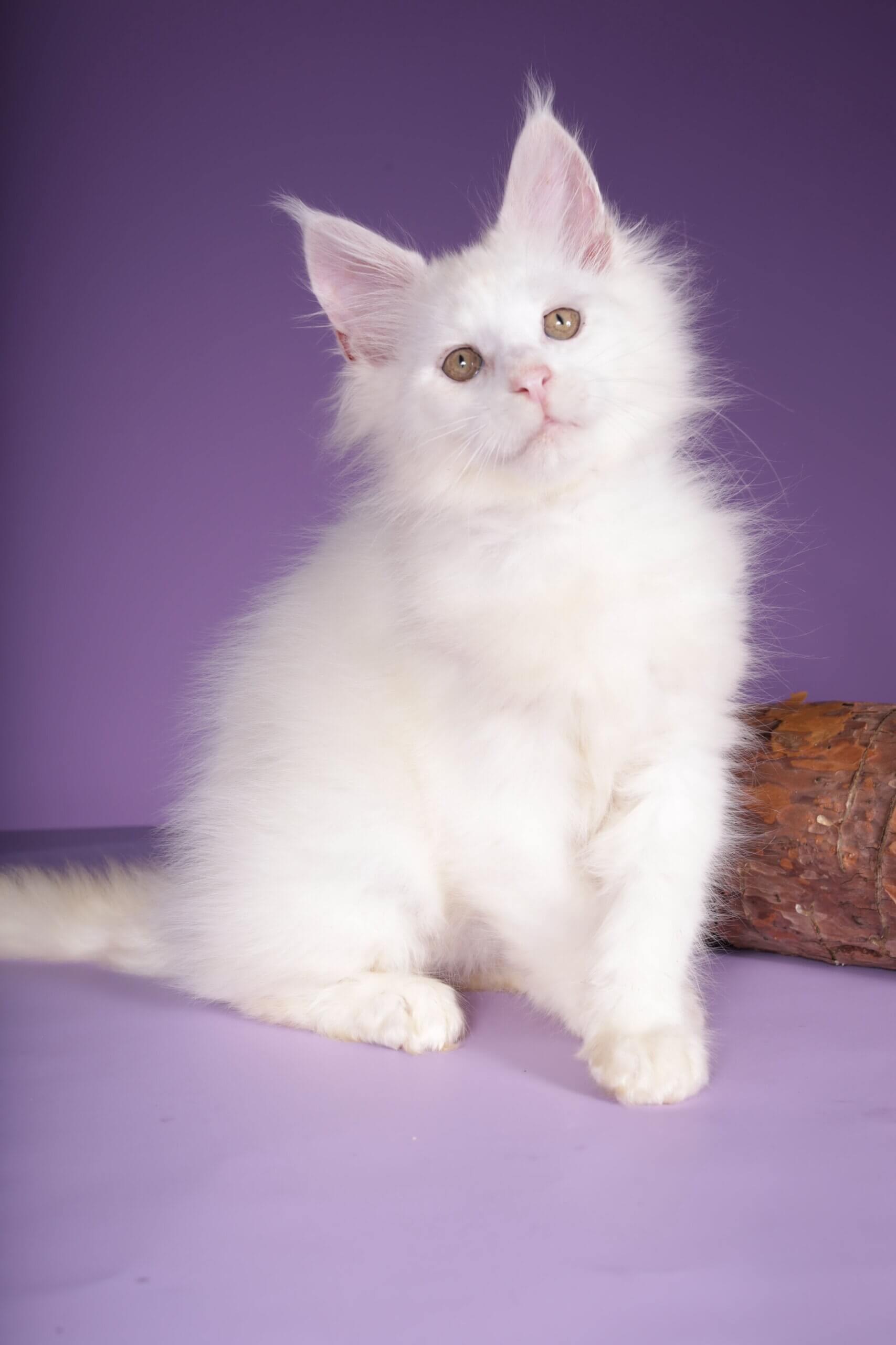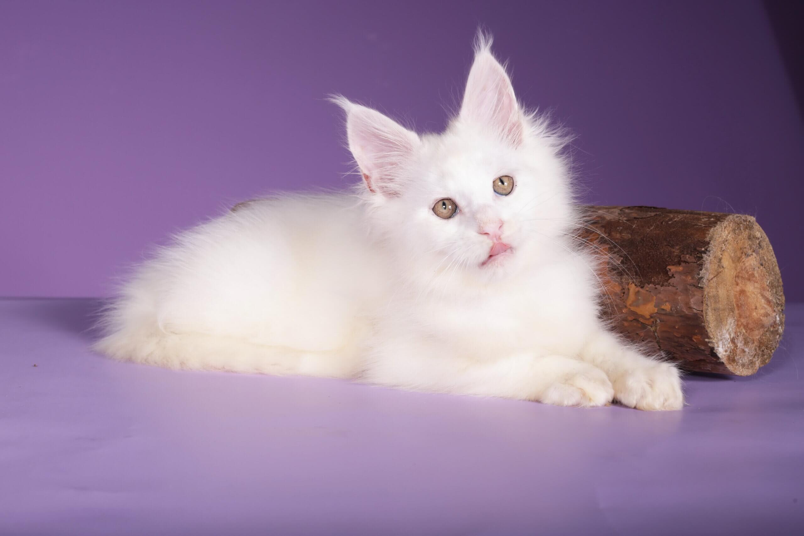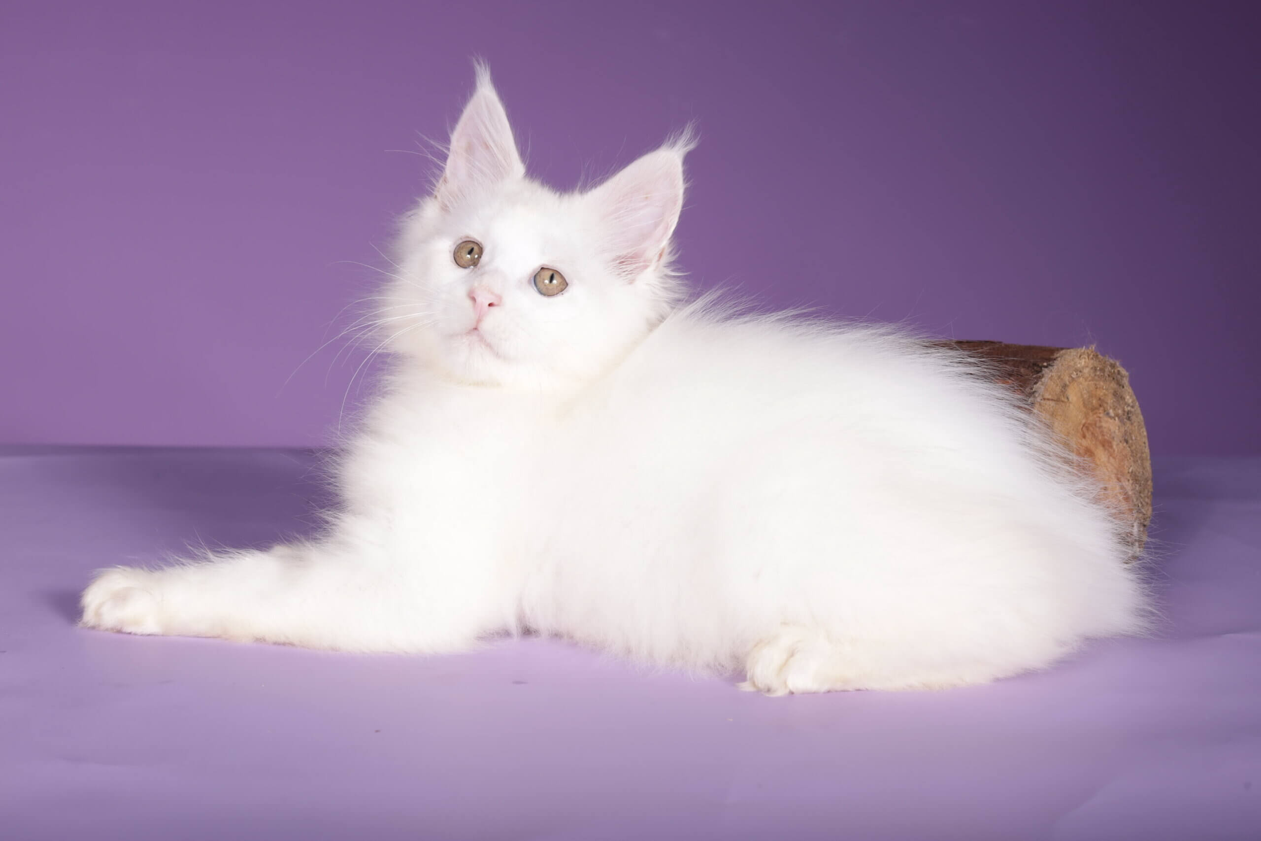 From the moment you lay eyes on Puff, your heart will melt—a soft, cloud-white Maine Coon boy with captivating yellow eyes that shine with warmth and curiosity. His gentle purrs, plush fur, and affectionate nature make every cuddle feel like home.
