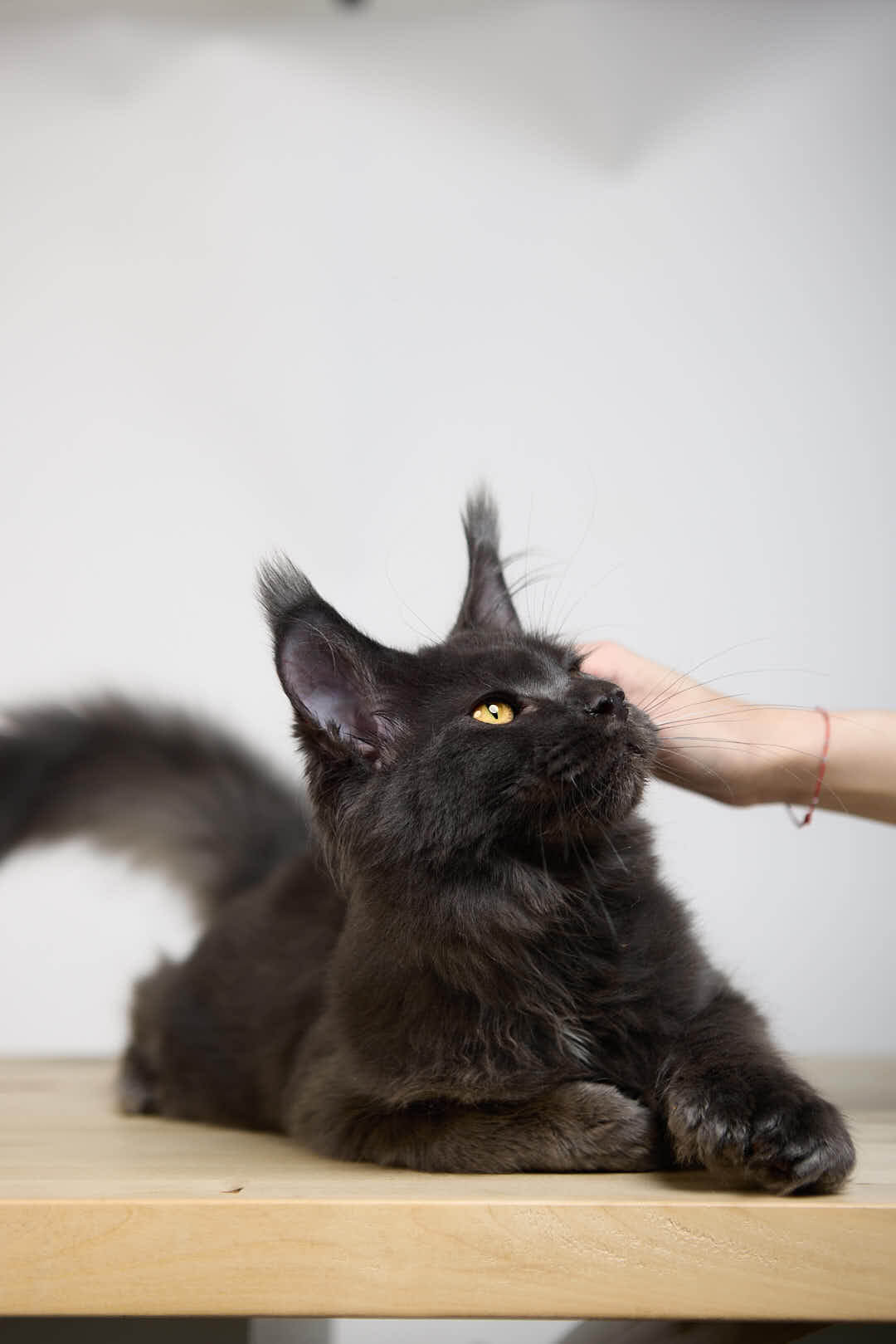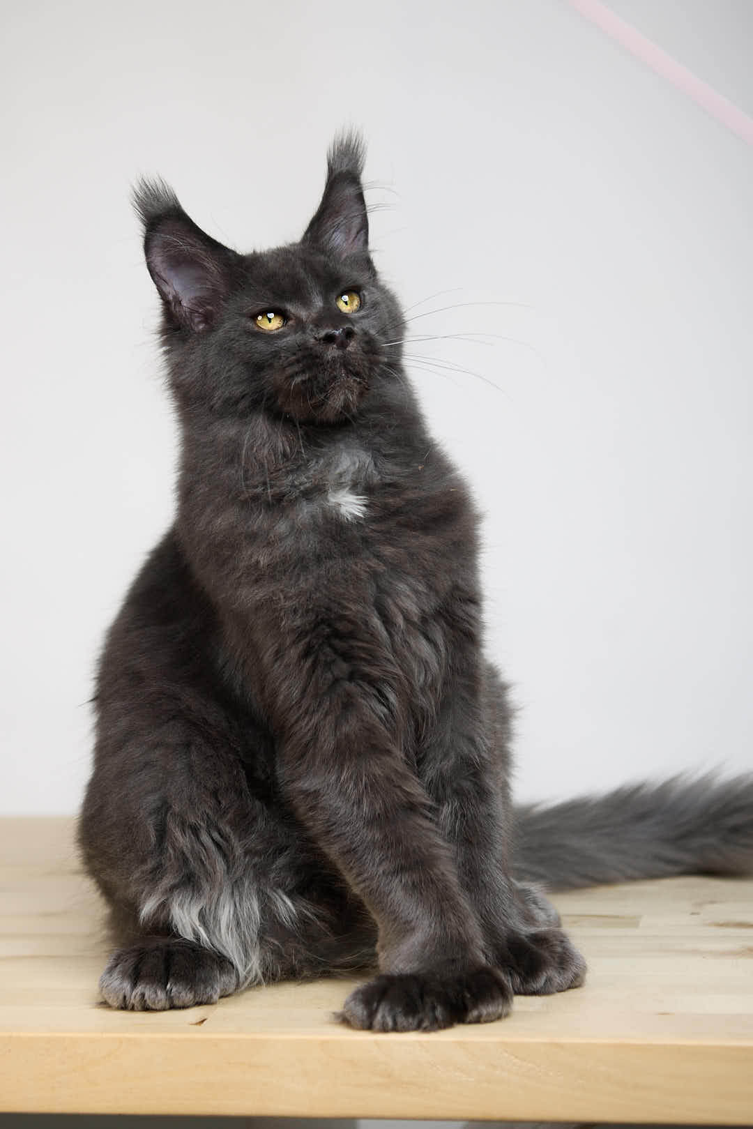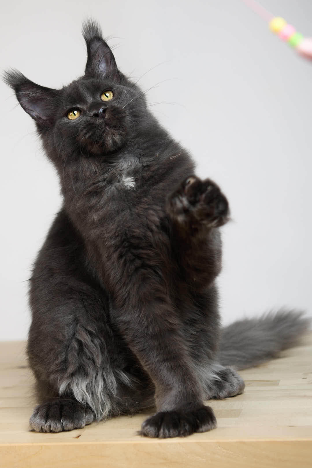 Meet Qadir, a stunning male Maine Coon POLY kitten with a luxurious blue coat and captivating yellow eyes. Born on March 25, 2025, Qadir boasts champion bloodlines and is show quality, with a pedigree available upon request. This charming kitten will be ready to join your home from July 25, 2025. Though located in Europe, Qadir can be reserved through our website for pickup in Wood Dale, USA, with delivery options available to other states from Chicago.