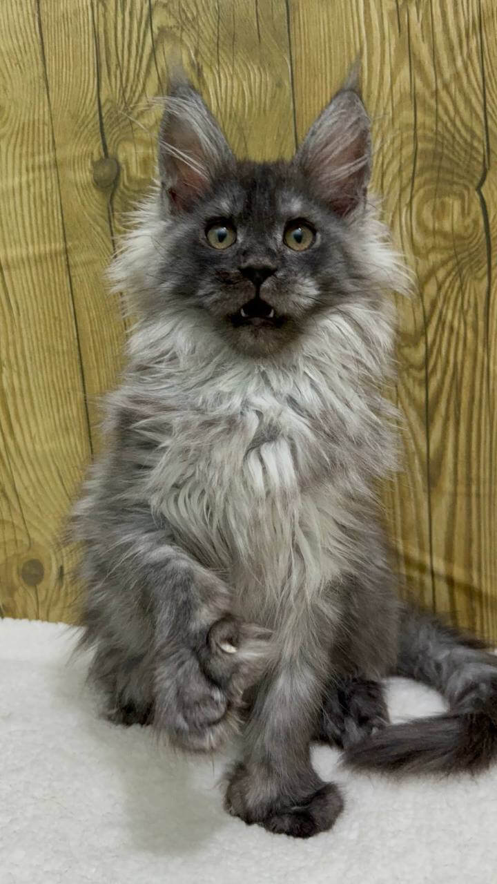 Meet Qadir—a Maine Coon kitten whose gentle heart is as generous as his oversized, silken paws. From his very first day, Qadir has captured every gaze with his glossy black silver coat, sunbeam-yellow eyes, and rare, irresistible polydactyl (extra-toed) charm. Imagine your mornings brighter with his soft purr rumbling close, his clever, loving spirit welcoming every cuddle.
