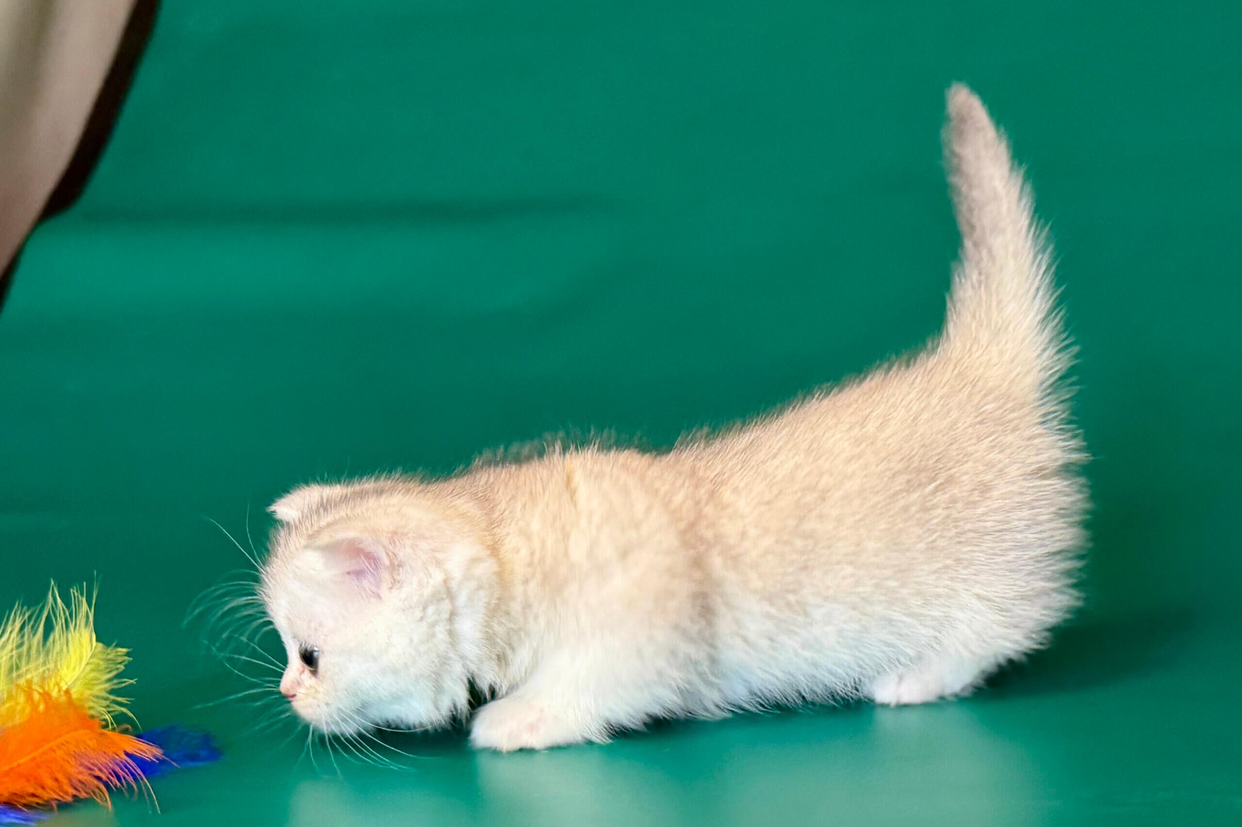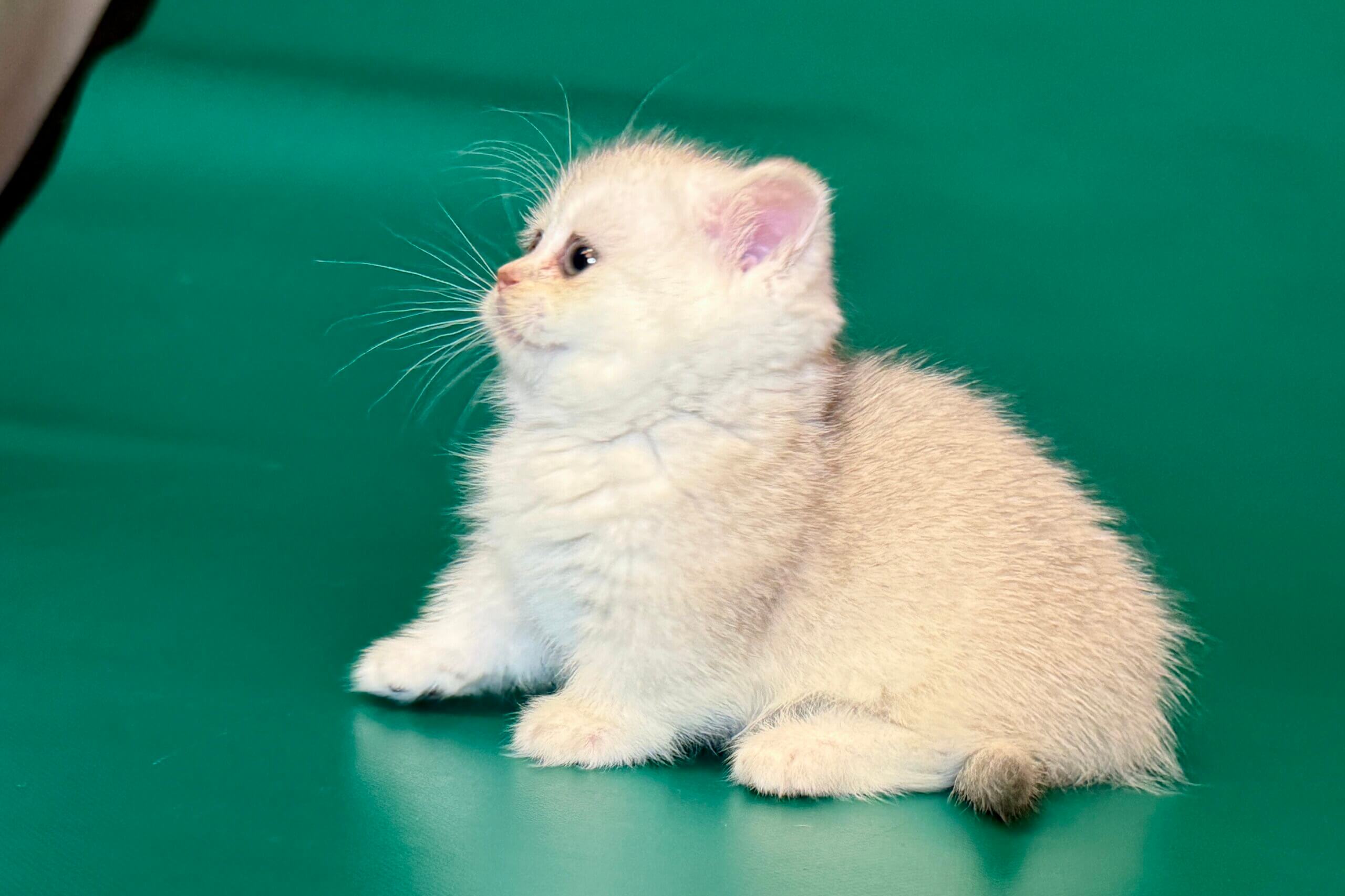 Queniva isn’t just beautiful—she’s got a gentle, affectionate spirit, and her adorable short Munchkin legs only add to her playful, kittenish charm. She loves to be near you, whether she’s chasing a sunbeam or curling up for warm, quiet cuddles. Her alert gaze and sweet, trusting nature make it impossible not to fall in love.
