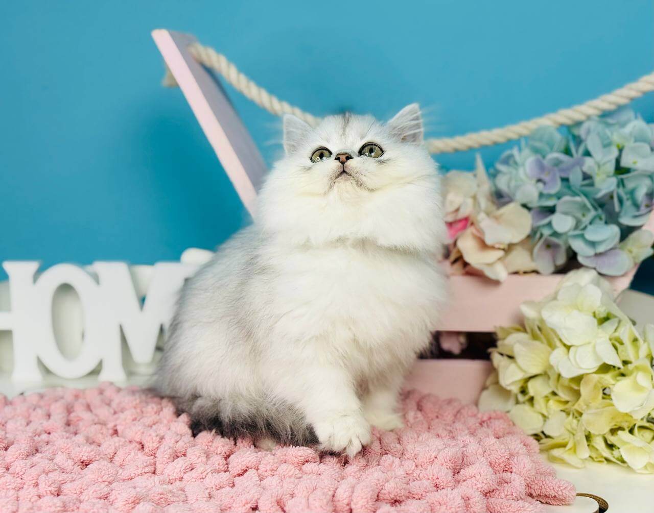 Meet Quo, a striking male Scottish Straight kitten with enchanting green eyes and a luxurious black silver shaded coat. Born on July 11, 2025, Quo hails from champion bloodlines, ensuring his show-quality status. He is registered and will be neutered/spayed to join your home as a pet, ready for his new journey from November 11, 2025.