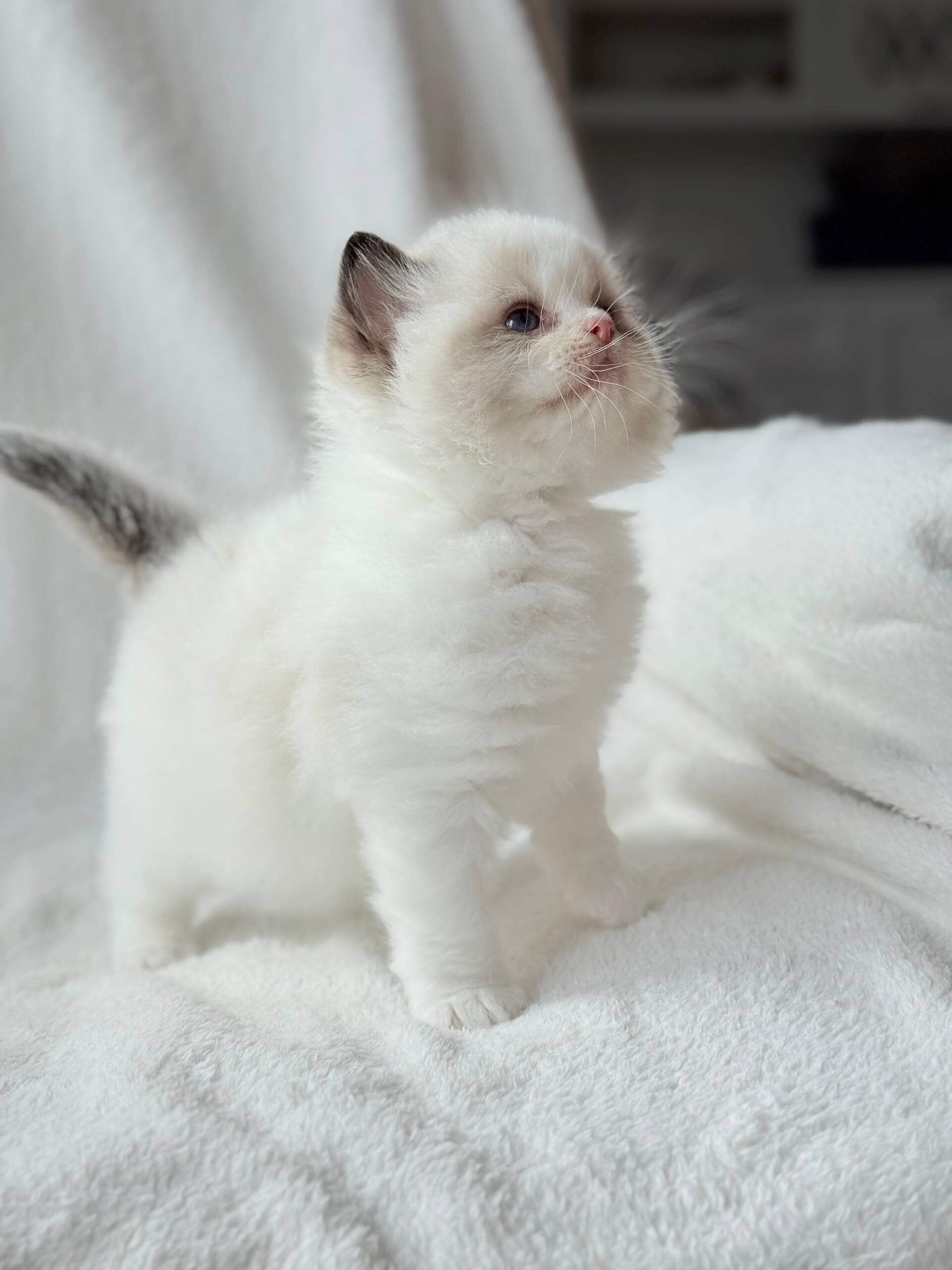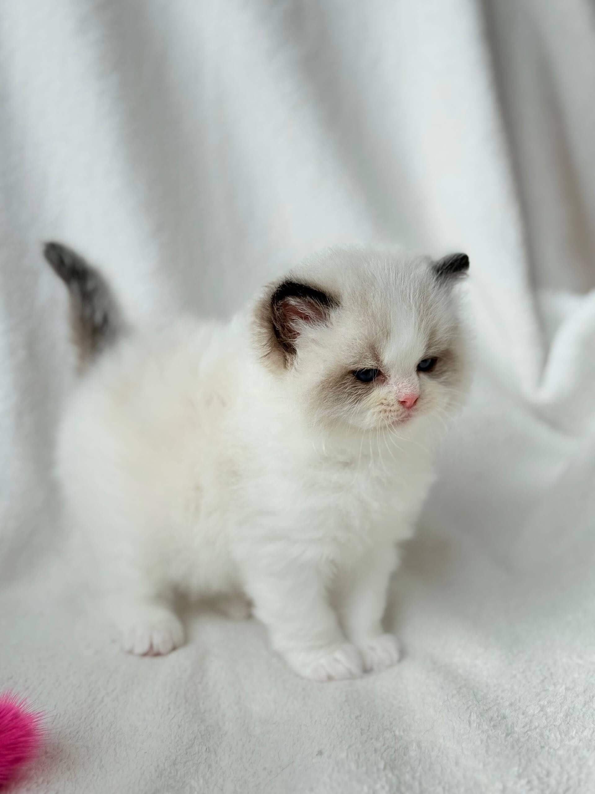 Meet Ramen: the instant you enter the room, he’ll be at your feet, inviting a gentle ear rub with a hopeful trill. He loves curling next to you, head tucked under your hand for security, yet transforms playtime into a choreography of slow motion leaps and plush-pawed pounces. Ramen bonds for life and seeks your presence with absolute sincerity, never overstating his need—just showing it.