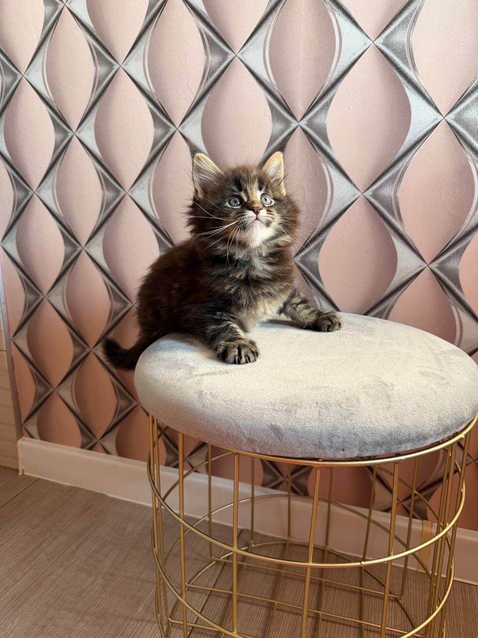Meet Raphael – a heart-stealer with a midnight coat and golden-yellow eyes that shine like little lanterns. The moment he looks up at you, it’s as if he’s saying, “I choose you!” Raphael’s black tabby spotted fur is velvety-soft, perfect for gentle strokes between naps and bursts of playful energy. He’s the kind of kitten who melts into your arms, purrs rolling like distant thunder, always ready for sweet snuggles or a new adventure.