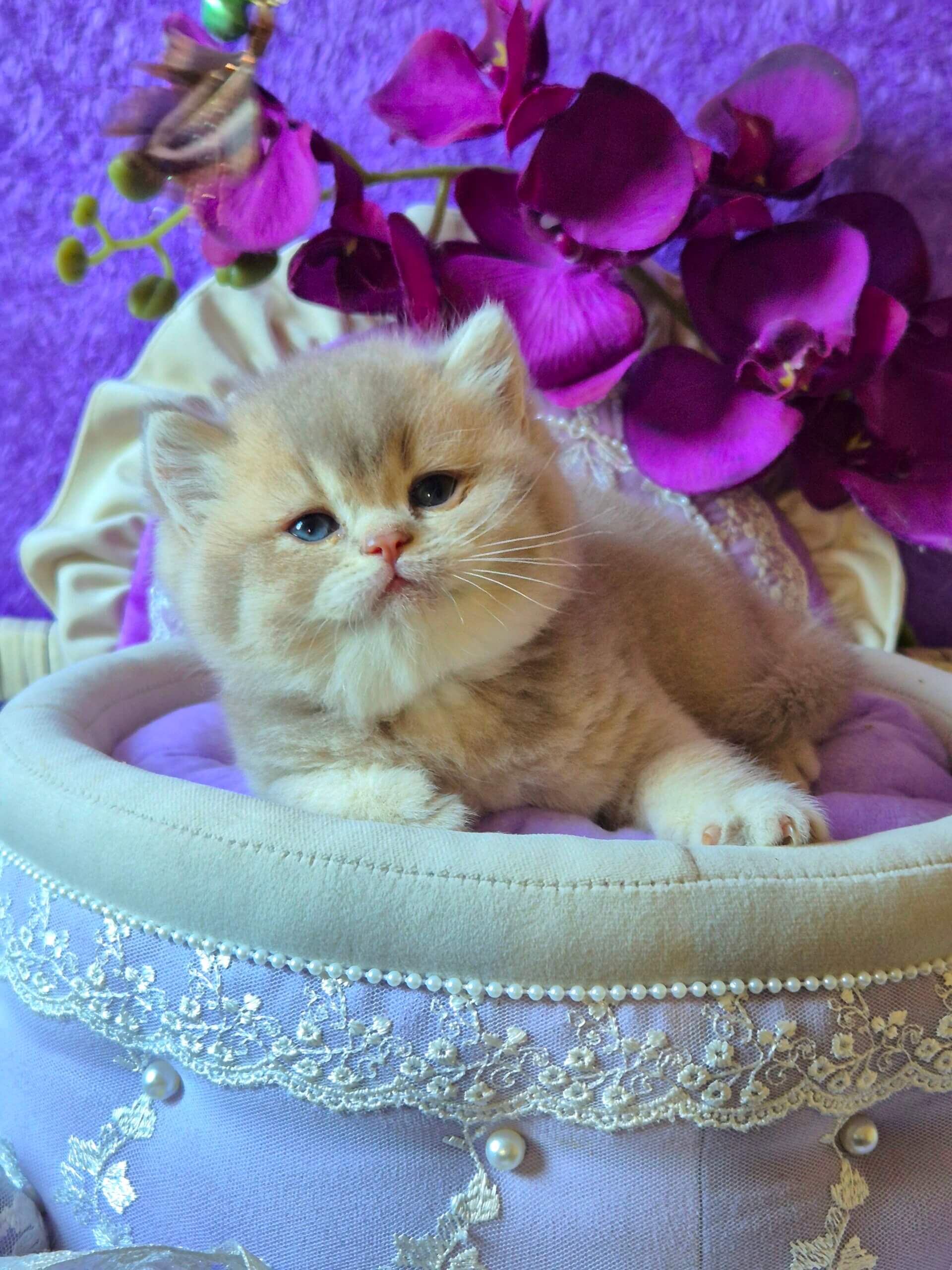 Meet Rey – a gentle little prince with a heart full of sunshine and a coat like soft moonlight dusted in gold. The moment you meet Rey, you’ll feel the world pause: his plush lilac-golden fur invites your touch, and his bright green eyes seem to promise endless purrs, warmth, and devotion.