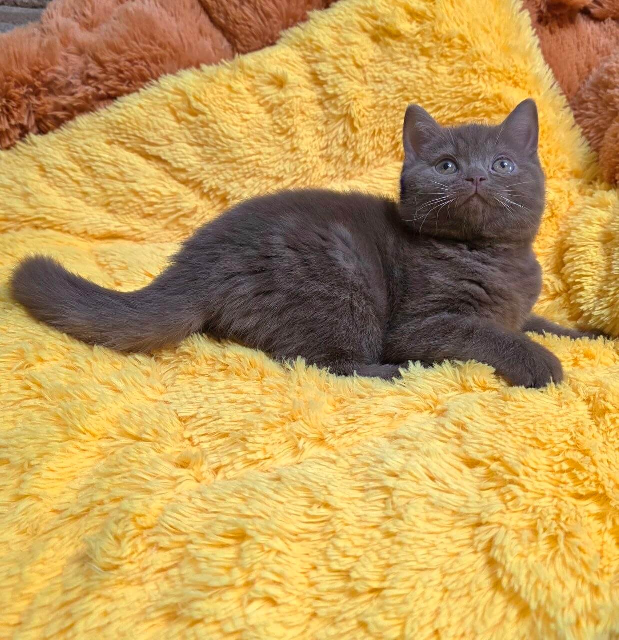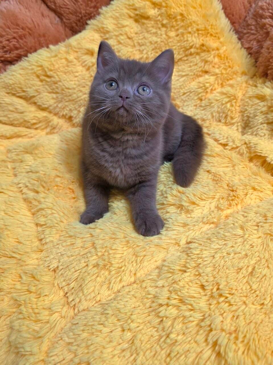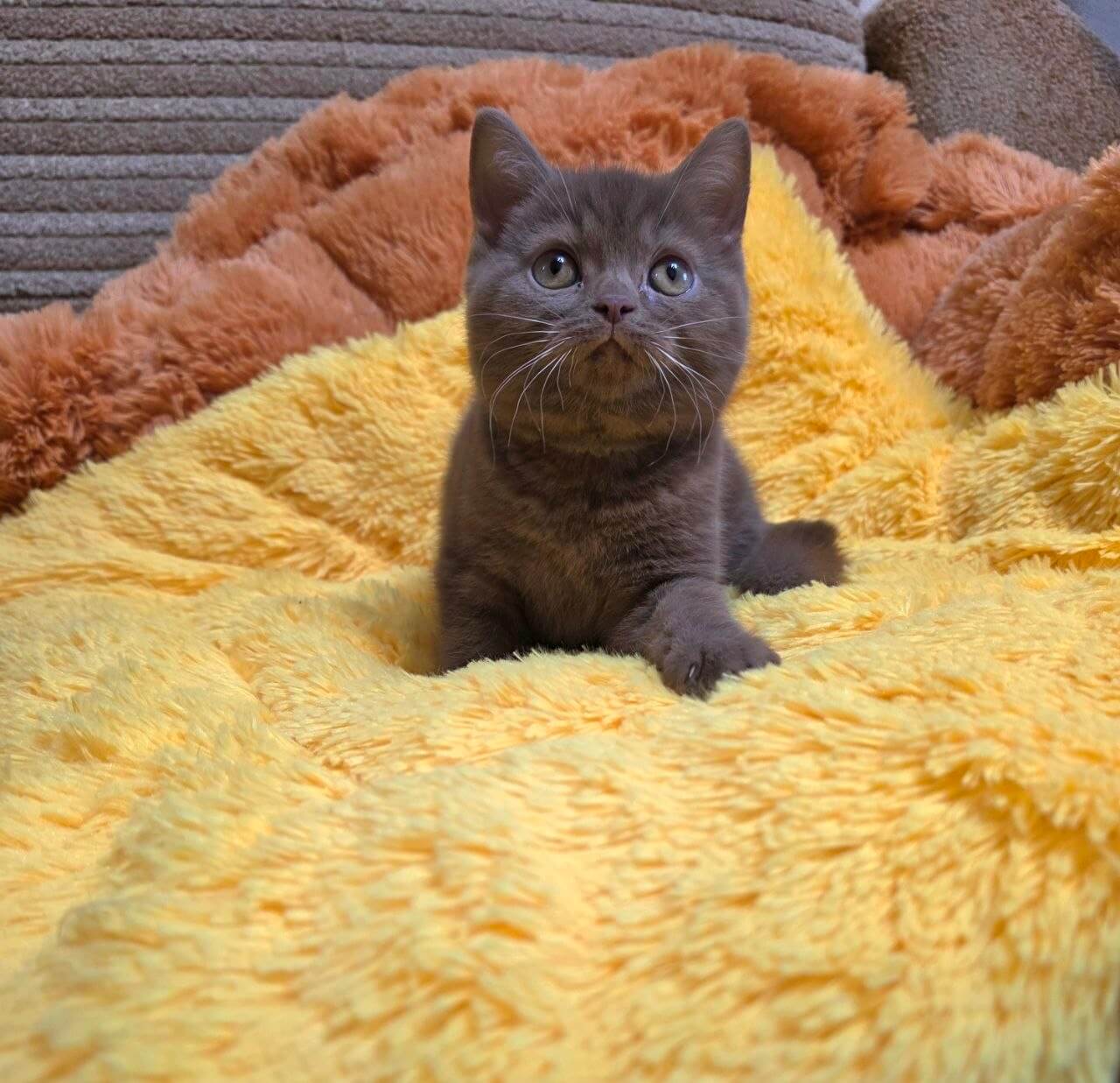 Run your hand across Rocky’s plush cinnamon coat and you’ll discover the unmistakable velvet of a true Cinnamon British Shorthair kitten. His thick, teddy bear fur feels like warm suede, an irresistible backdrop for those deep orange eyes that glow like polished copper in the soft light. Rocky carries gentle weight and a quiet, calming presence in your arms.