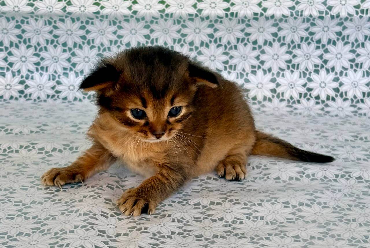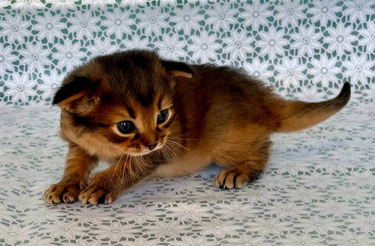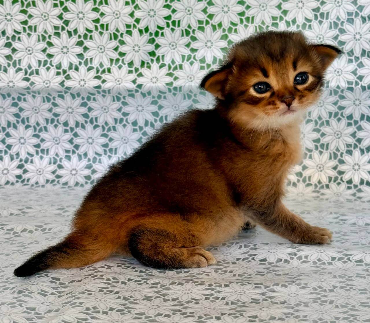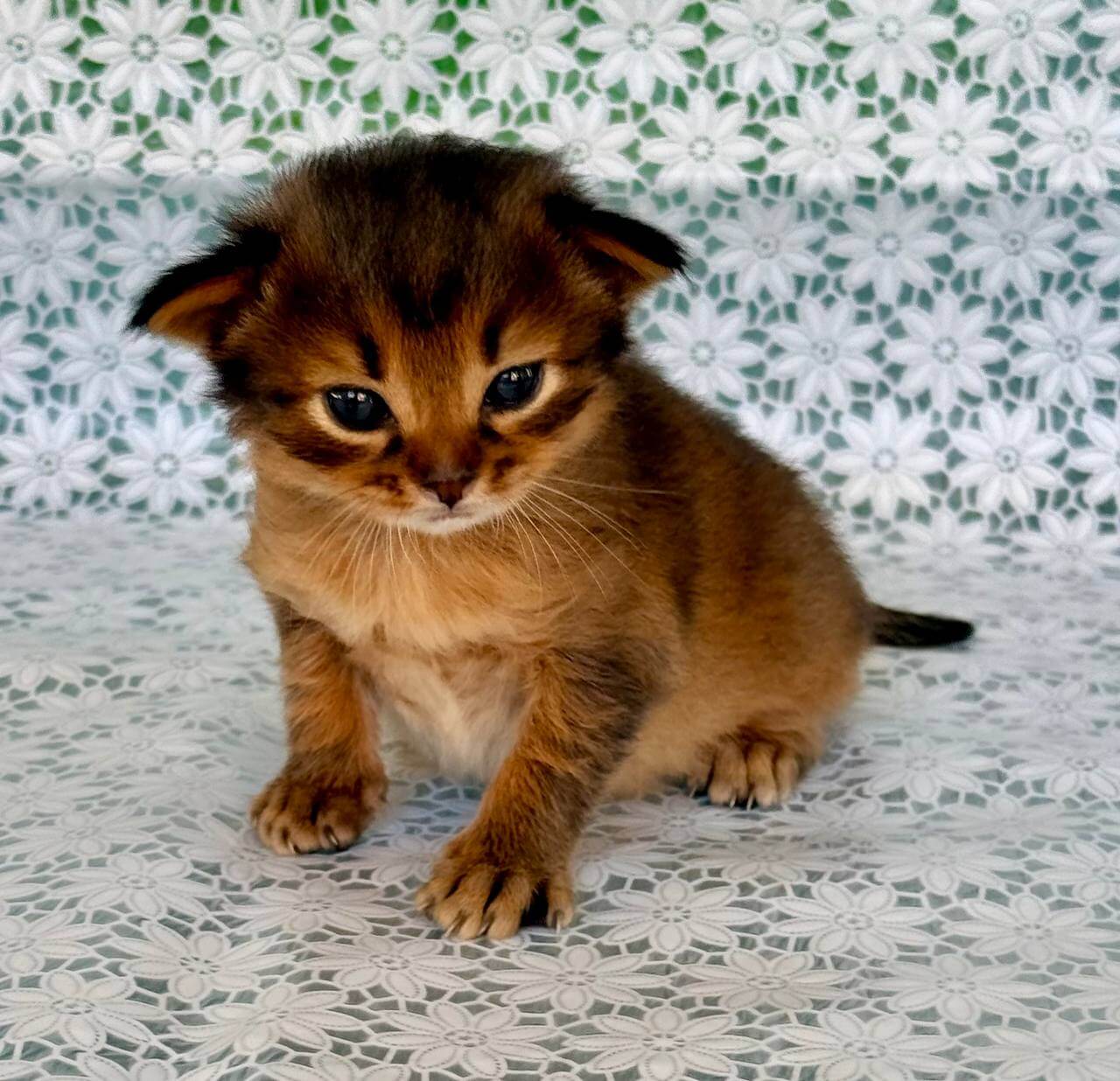 Meet Roger, our enchanting male Somali kitten whose ruddy, fox-like coat and sparkling yellow eyes will instantly capture your heart. Soft as silk and endlessly affectionate, Roger loves to nuzzle your hand and gaze up with warmth that melts all worries away.