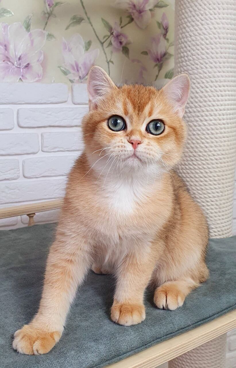 Meet Rokki — a golden dream wrapped in plush velvet. This irresistible British Shorthair boy will melt your heart the moment his sparkling green eyes find yours. Imagine little Rokki, with his shimmering black golden shell coat, nestled on your lap, purring softly and gazing up with pure devotion.