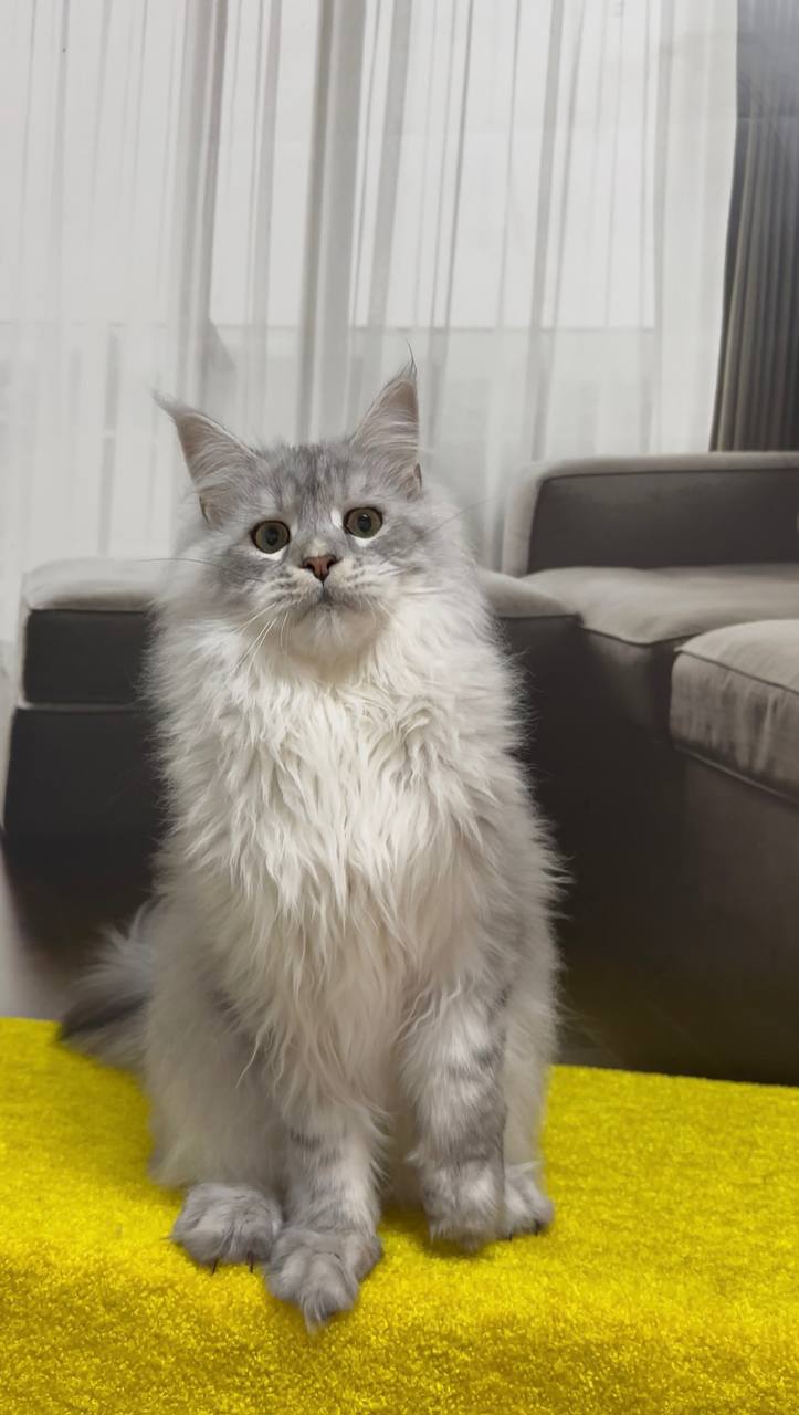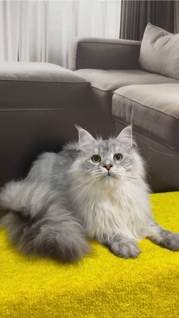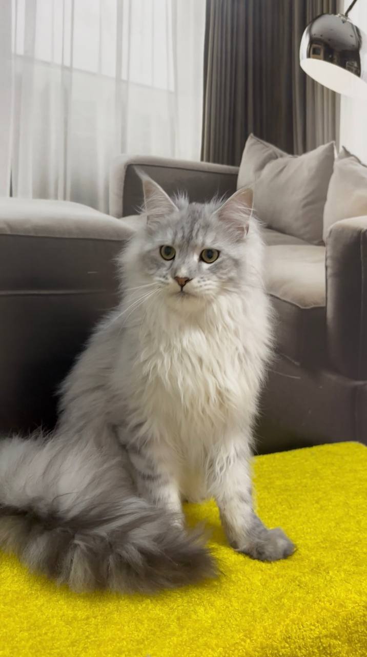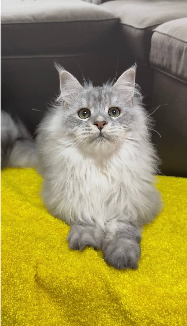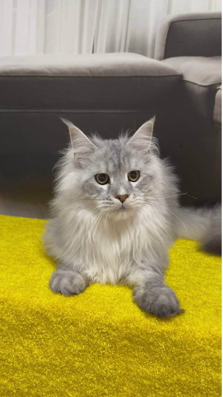 Wrap your arms—and your heart—around Rokot, a stunning black silver tabby spotted Maine Coon boy with luminous yellow eyes and a sweet, calming nature. He’s the kind of kitten whose gentle purring fills your home with comfort, and whose affectionate gaze invites endless cuddles.