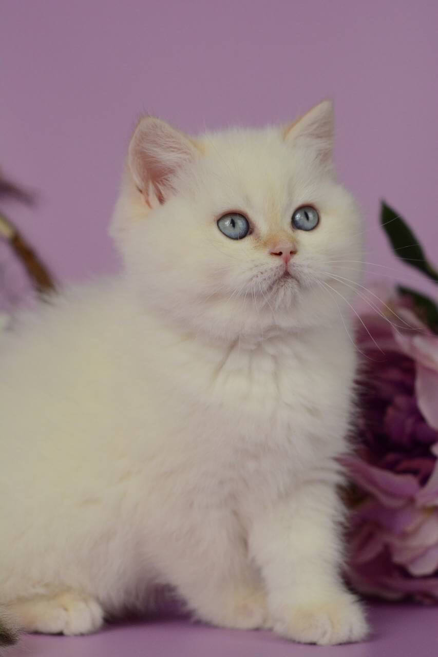 Rosa is as lovely as she is gentle: playful and curious, yet always ready for a cozy cuddle. She adores soft touches and loves to gaze at you, blinking slowly with trust and tenderness. Her show-quality charm comes from champion bloodlines—she’s registered, health-checked, and beautifully socialized for a smooth, loving transition into your family. Rosa is meticulously litter-trained with wood pellets or clumping litter, and comes with support and care guidance seven days a week.
