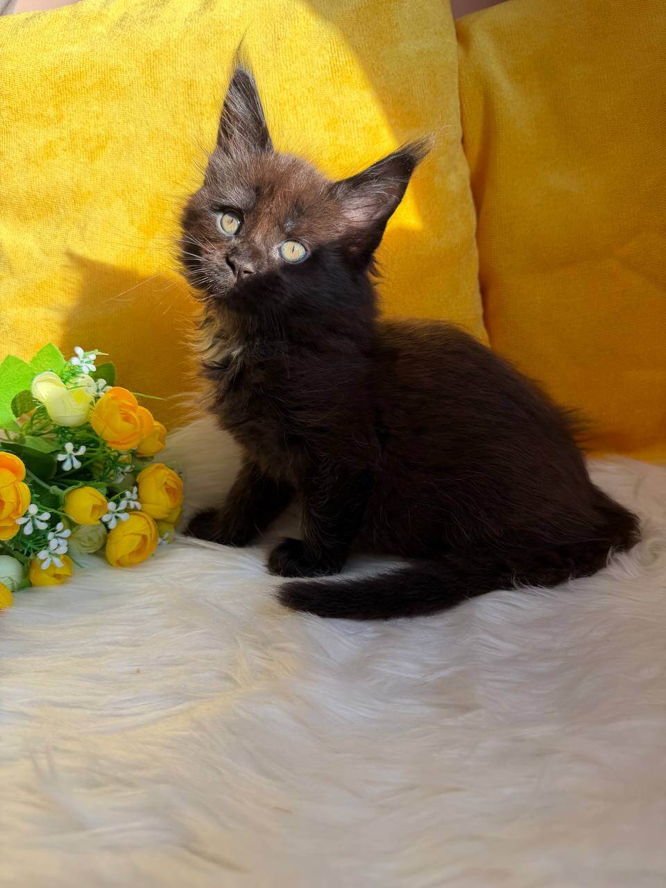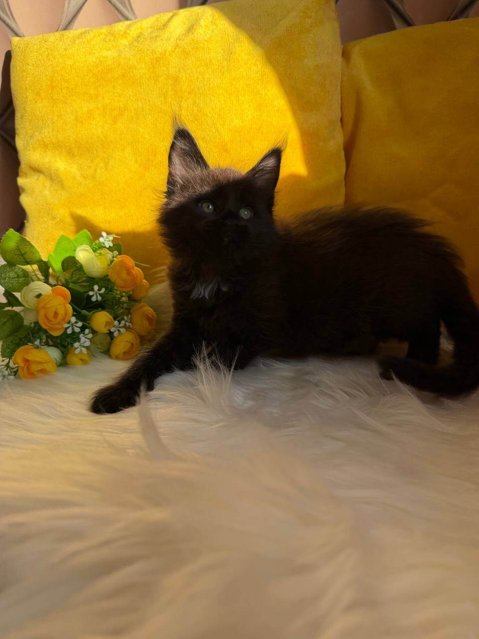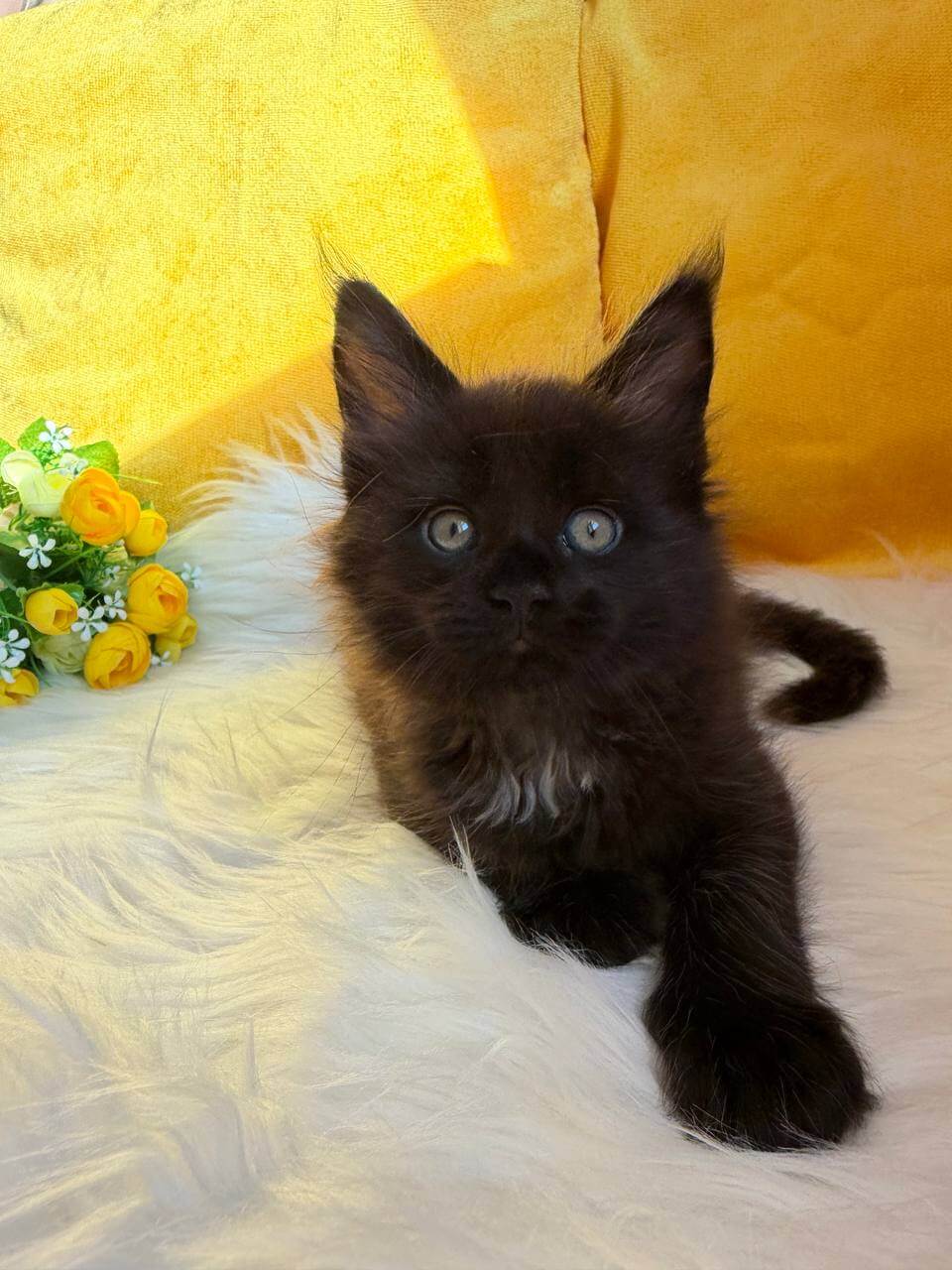 Fall in love at first sight with Rosa, a breathtaking black-and-white sweetheart whose yellow eyes glow with boundless curiosity and warmth. This gentle girl loves to nuzzle close, her silken fur a comfort to touch, her purrs filling your arms with quiet happiness.
