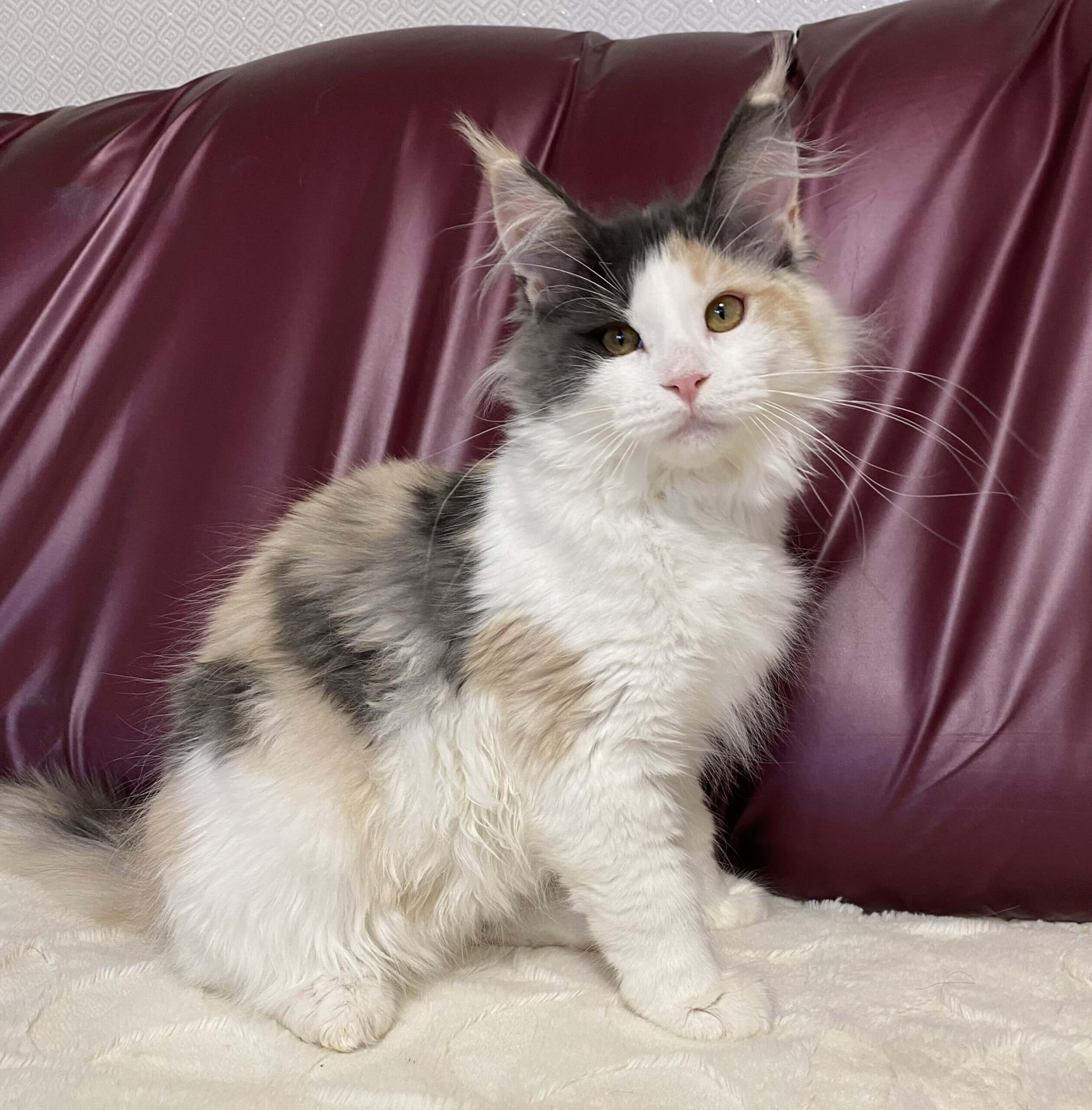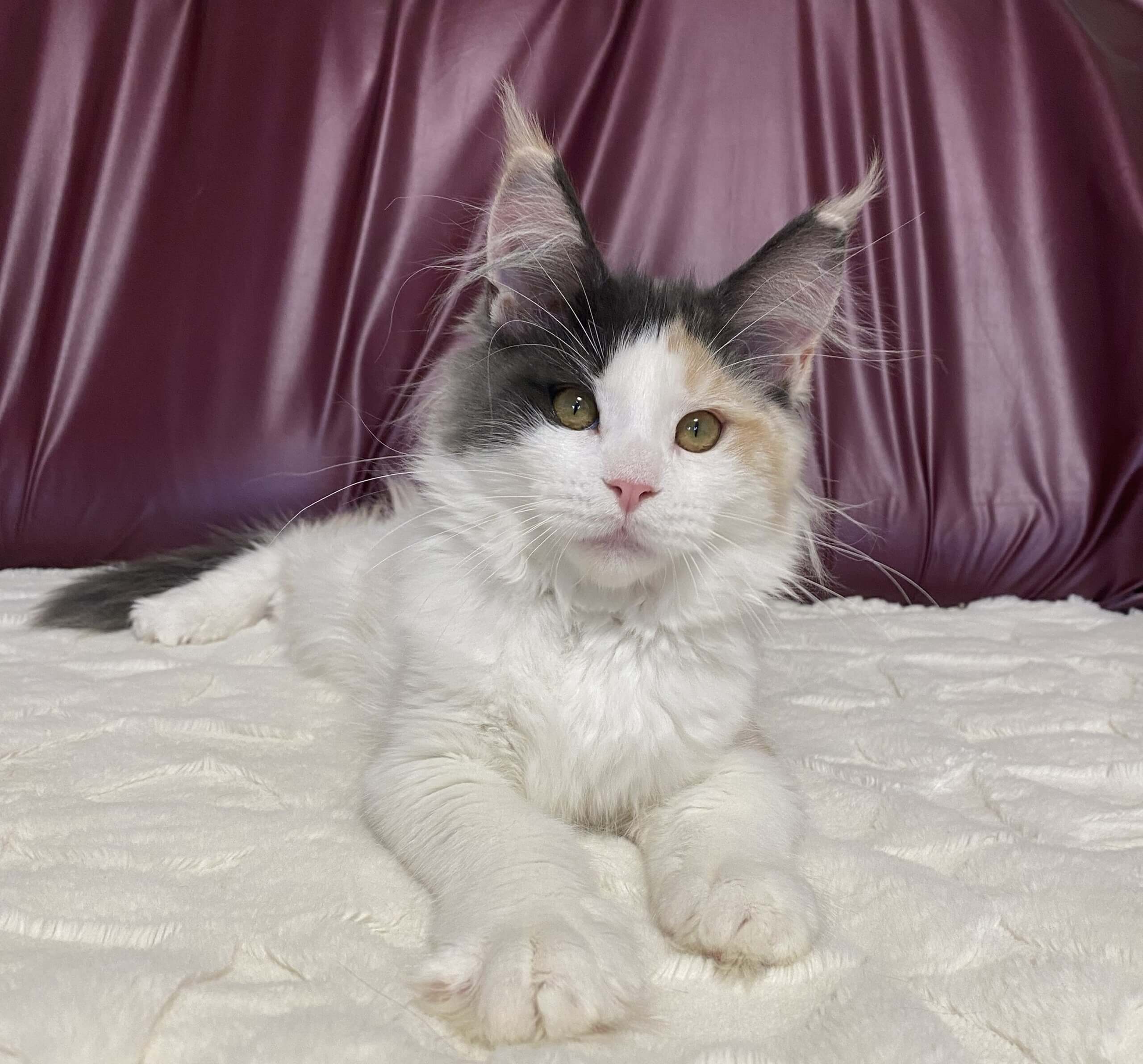 Meet Rosalina — your future sunbeam with whiskers. One glance into her golden-yellow eyes, framed by the delicate swirls of her rare Blue Tortie Silver With White fur, and your heart simply melts. Rosalina is a gentle soul with a playful sparkle: she adores soft strokes, curling in your lap, and offering purrs that feel like small, warm treasures.
