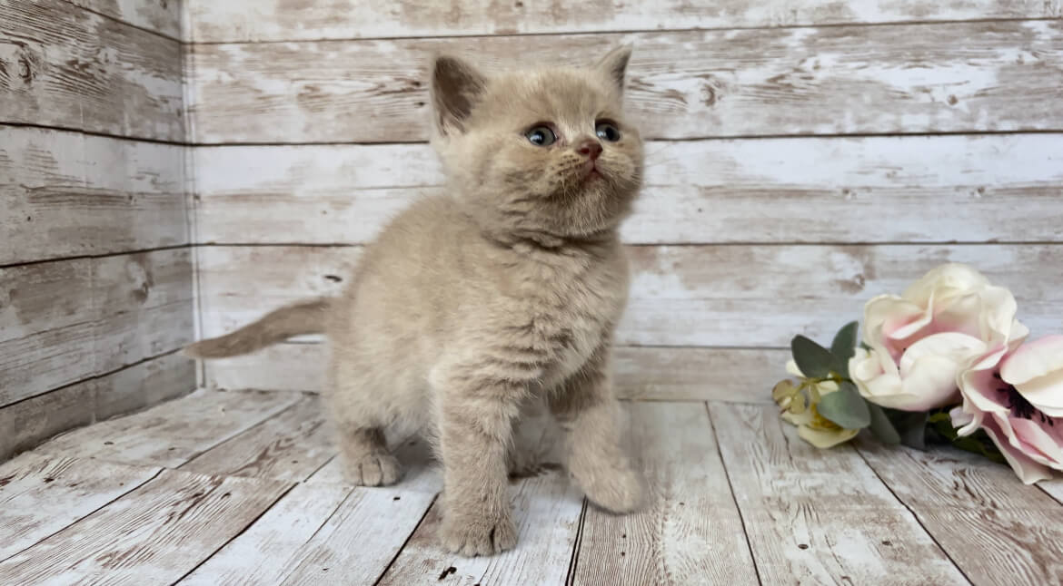 Soft as a rose petal and just as lovely, our lilac British Shorthair girl, Rose, will instantly capture your heart. With her plush, silvery fur and hypnotic yellow eyes, Rose is a gentle ray of warmth—always ready to purr her way into your arms and fill your days with soothing companionship.