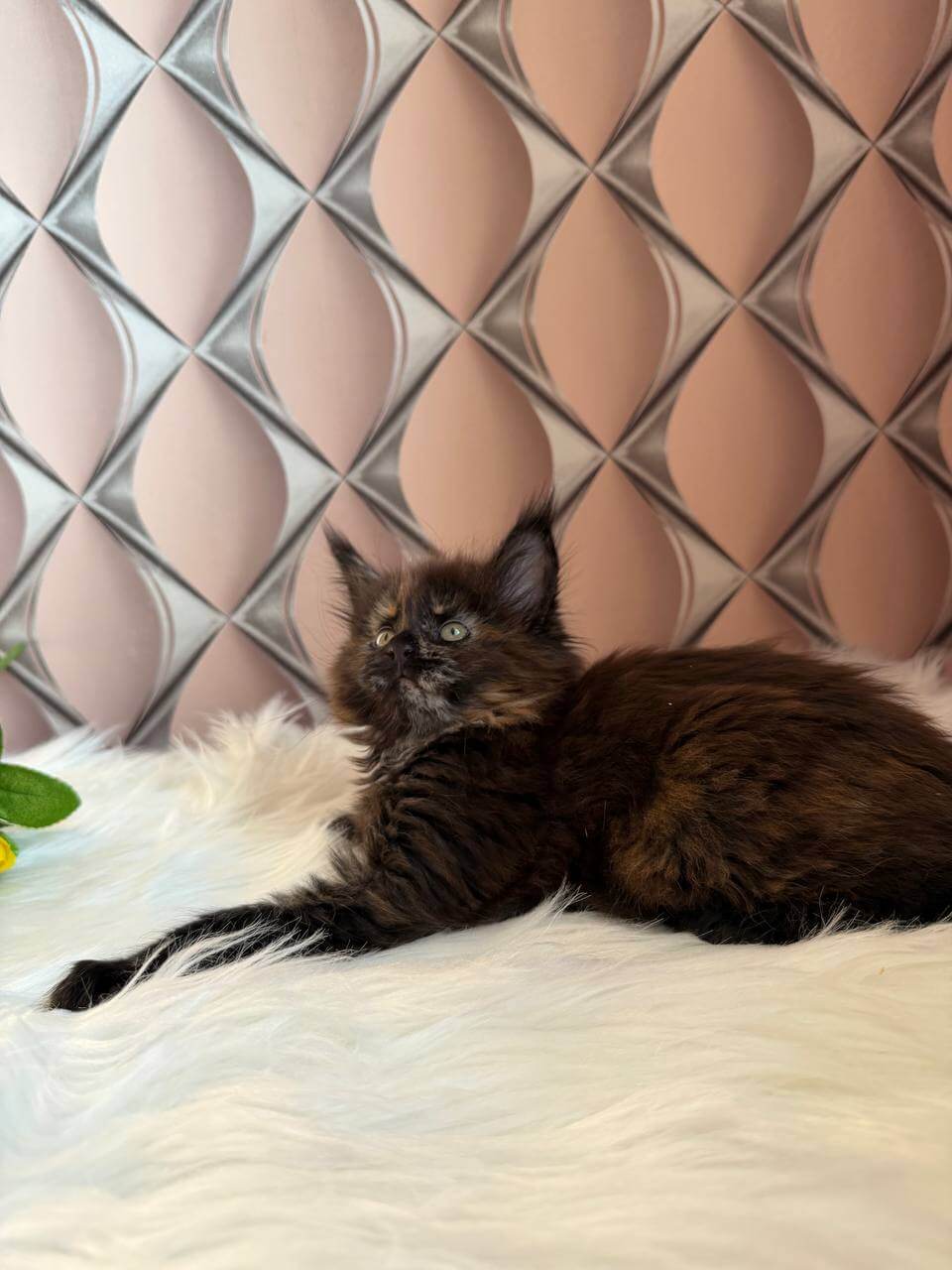 Ryna is pure charm—full of curiosity, affectionate purrs, and a tender spirit that makes you feel instantly at home. Her rare black tortie coat shimmers with hints of chocolate and amber, making her a true beauty. Ryna adores gentle pets, loves to chase toys, and will happily curl up on your lap to nap, purring softly for hours.