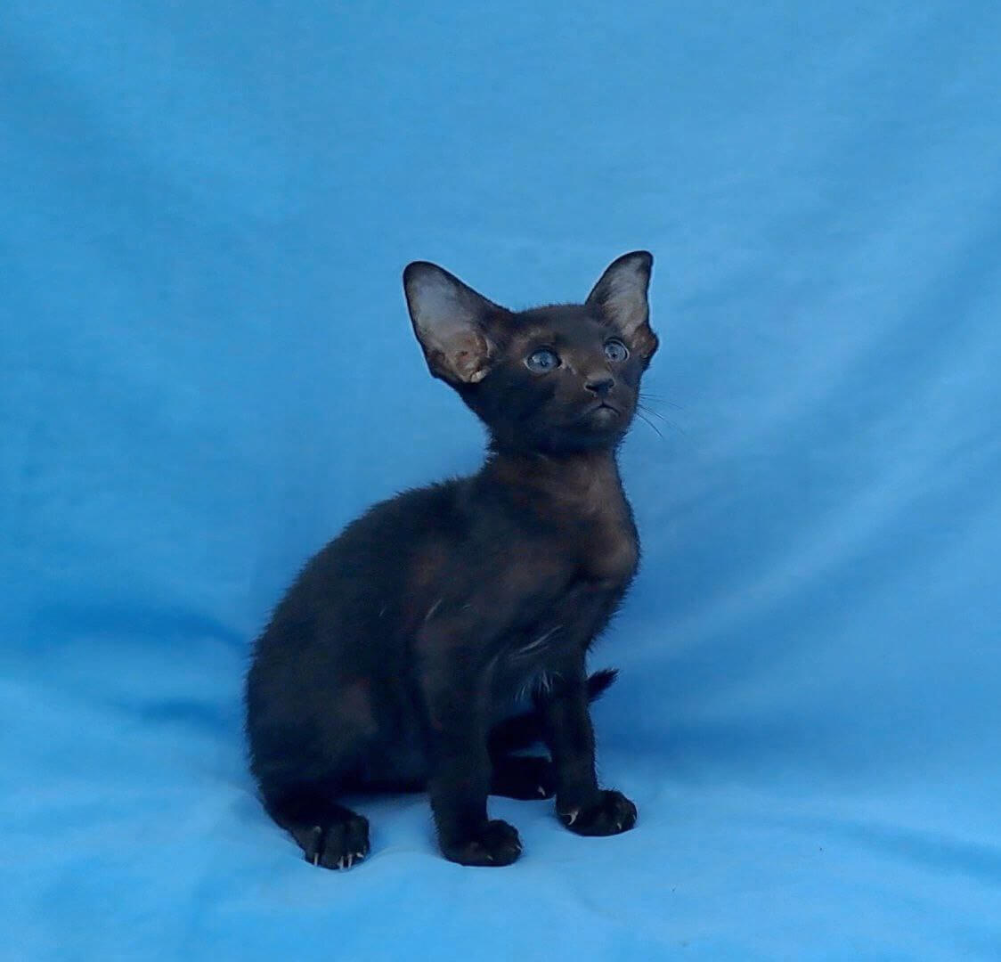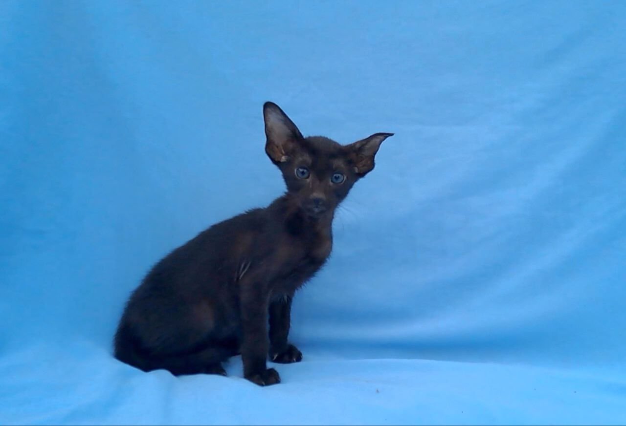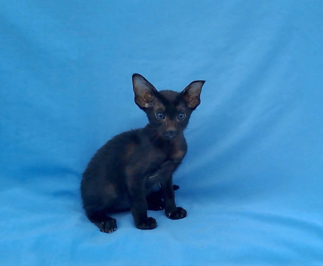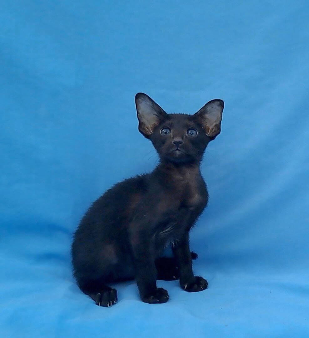 Meet Simon – your midnight-hued, green-eyed dream. From his silken black coat to his luminous yellow-green gaze, Simon is pure Oriental elegance bundled in a small, purring package. One touch, and you’ll fall for his feather-soft fur and gentle warmth melting into your arms.