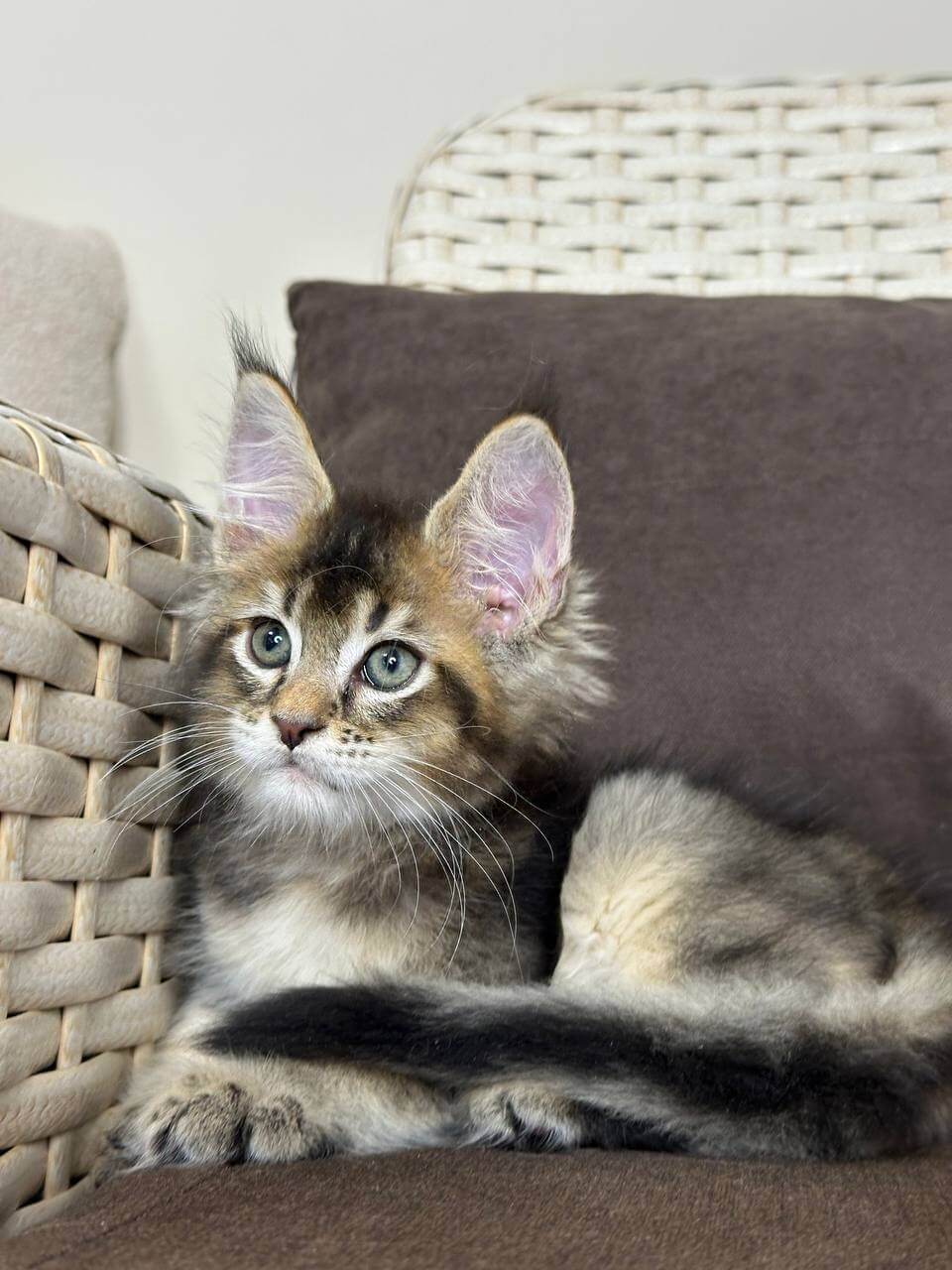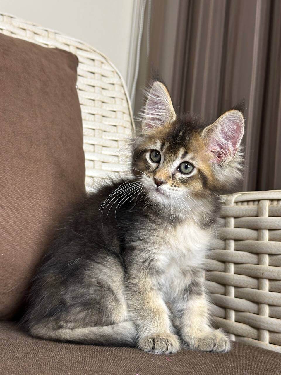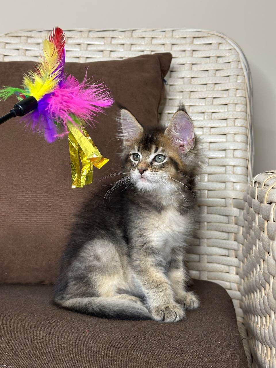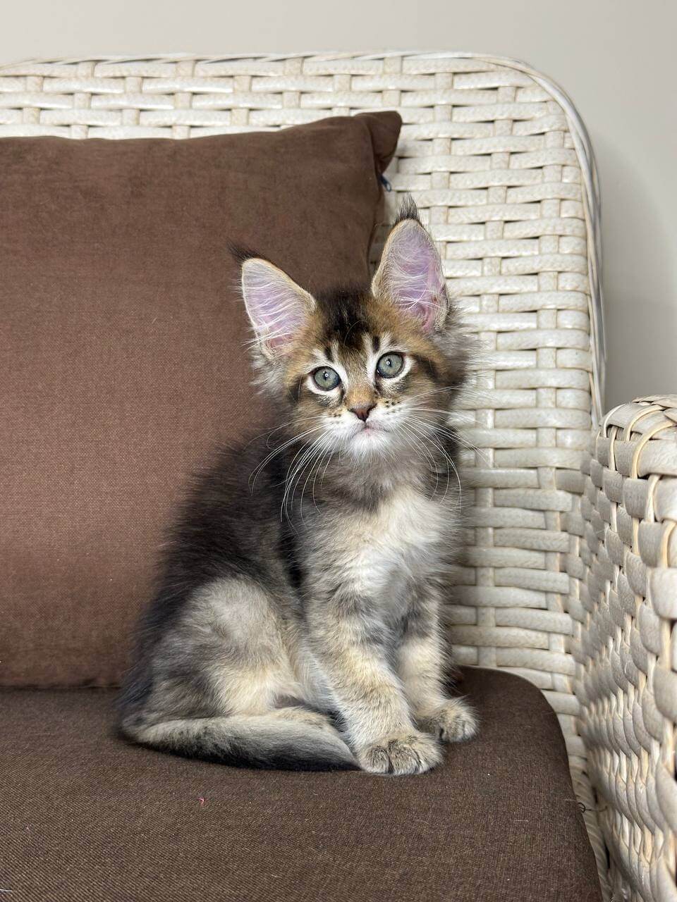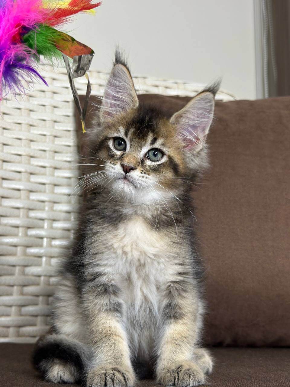 Meet Shekspir, a breathtaking black tabby ticked Maine Coon boy whose golden-yellow eyes gleam with curiosity and warmth. From his first purrs, Shekspir’s gentle heart and playful spirit will wrap your home in comfort—he adores soft snuggles, gentle head-butts, and curling up close when you need a dose of soothing affection.