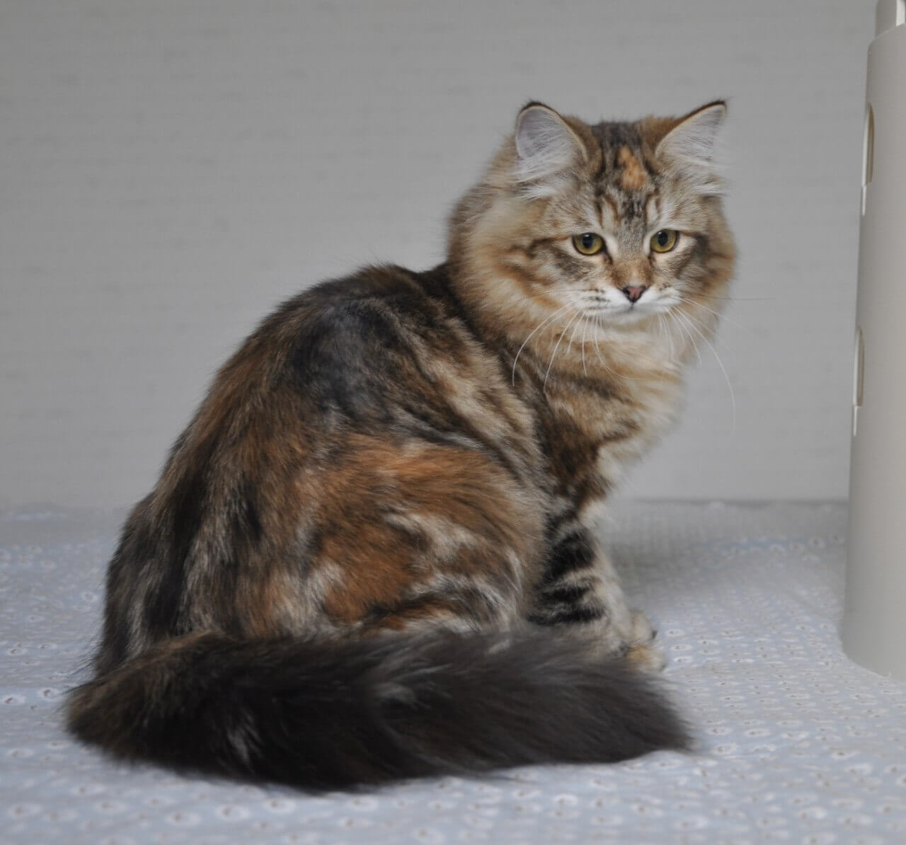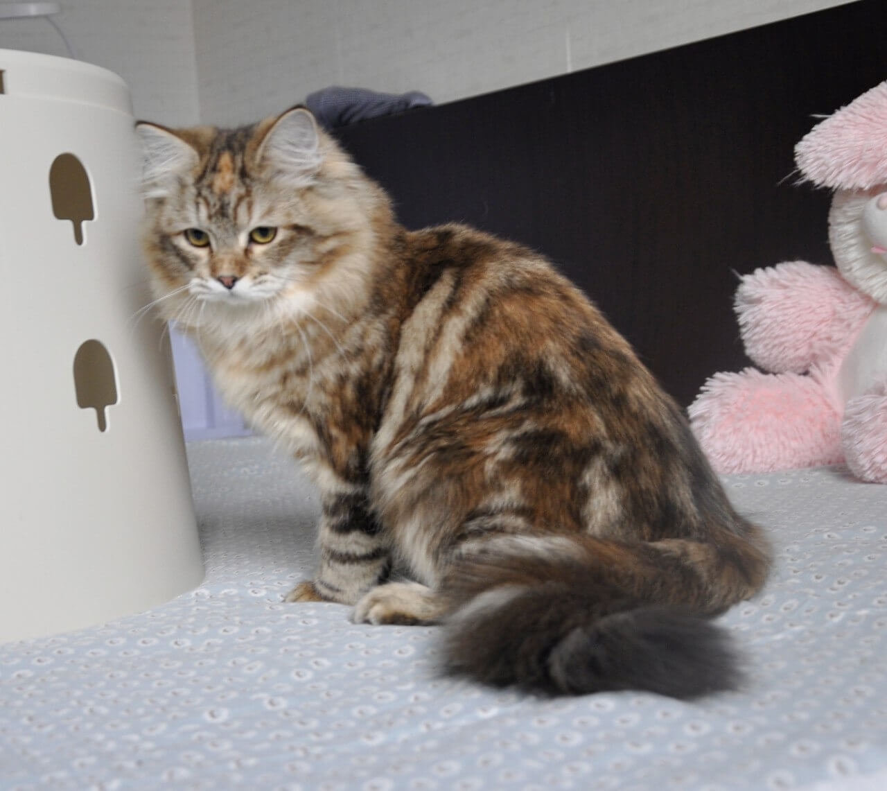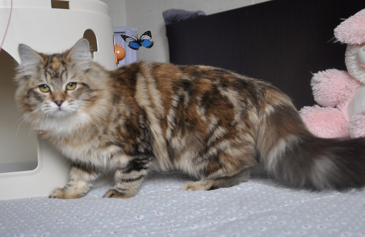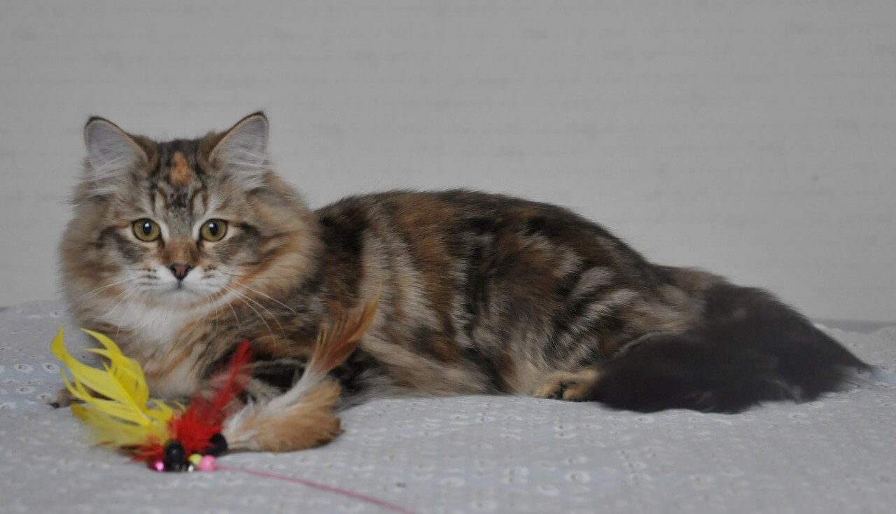 Simona is a Black Tortie Tabby Blotched beauty, her silken coat swirling with ebony and copper, making her truly one of a kind. Her playful curiosity shines in every gentle paw-step and affectionate head-bump. Simona adores being close—she’ll nestle by your side after playtime, breathing gentle warmth into every moment.