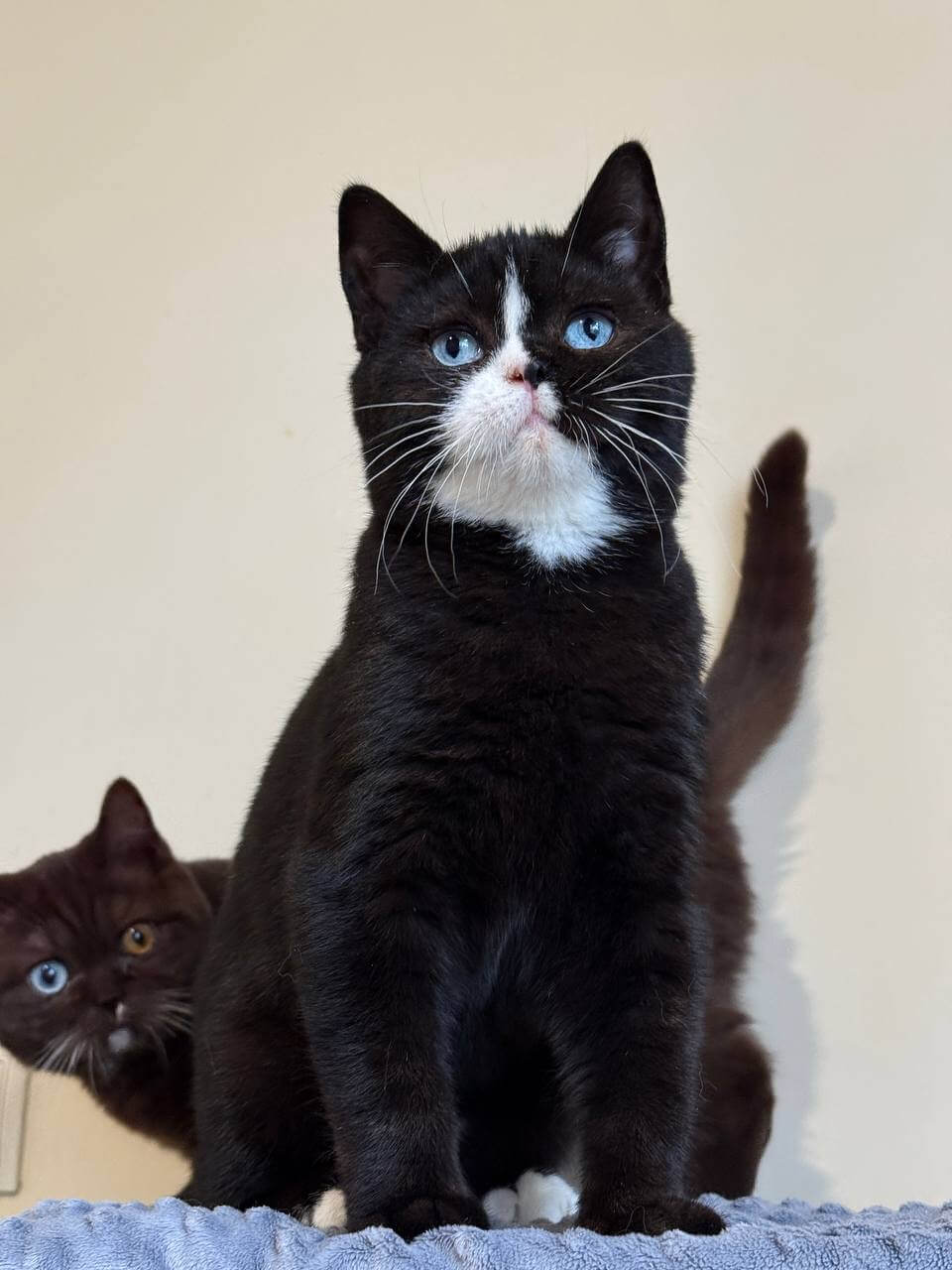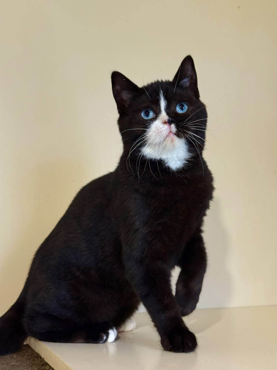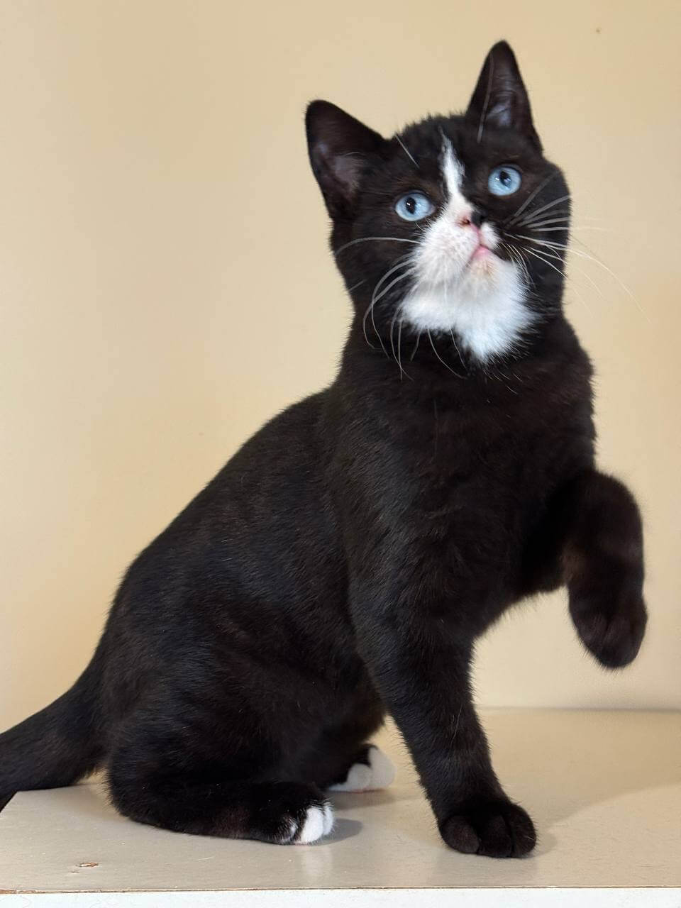 There’s a thoughtful quietness to Sky, true to the dignified Scottish Straight temperament. He greets you with a delicate head bump and prefers to curl beside you rather than clamor for constant attention. Watch as he chases shadows with quiet persistence or rests his chin atop your book, seeking gentle closeness instead of wild play. His loyalty builds slowly but deeply—he chooses his best person.