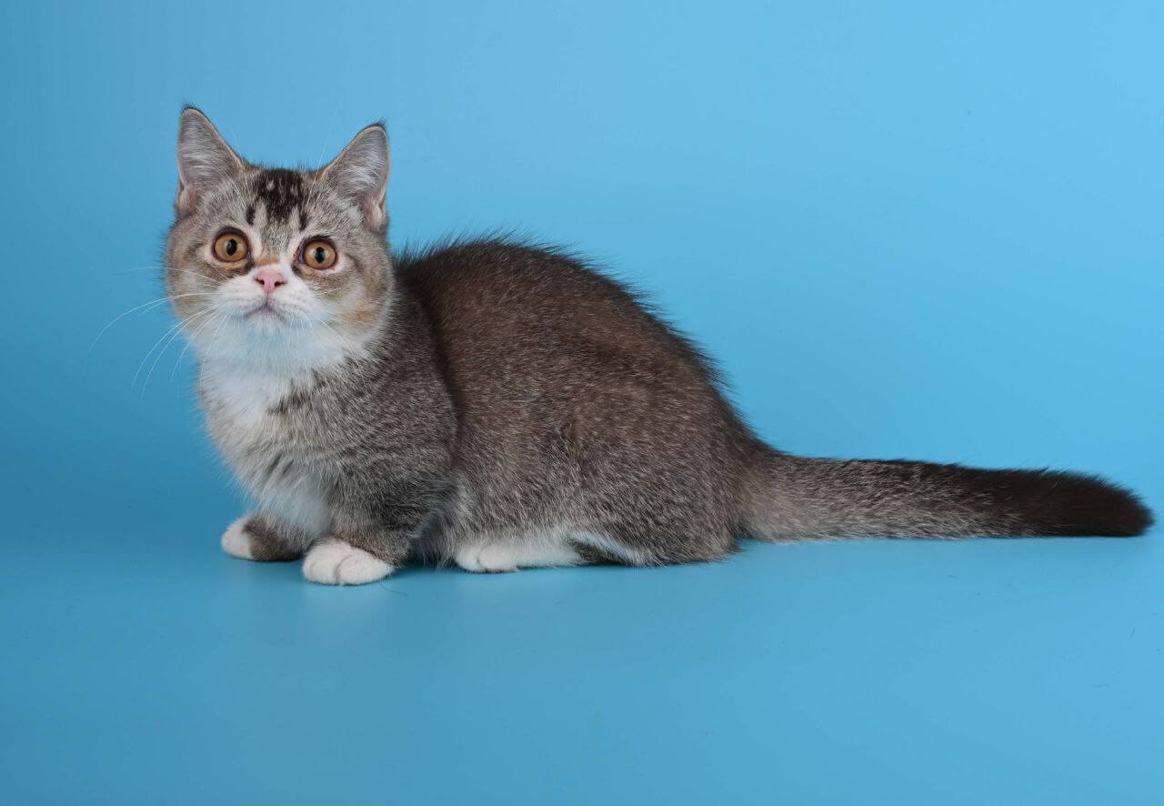 Meet Stephen, an adorable male Munchkin kitten with a unique chocolate ticked coat accented by white patches. His striking yellow eyes add a dash of charm to his already captivating appearance. Born on June 5, 2025, Stephen hails from champion bloodlines and boasts show-quality standards. Available for reservation now, he can join his new family starting October 5, 2025. Located in Europe, Stephen can be picked up at our Wood Dale, USA, location or delivered to other states from Chicago.