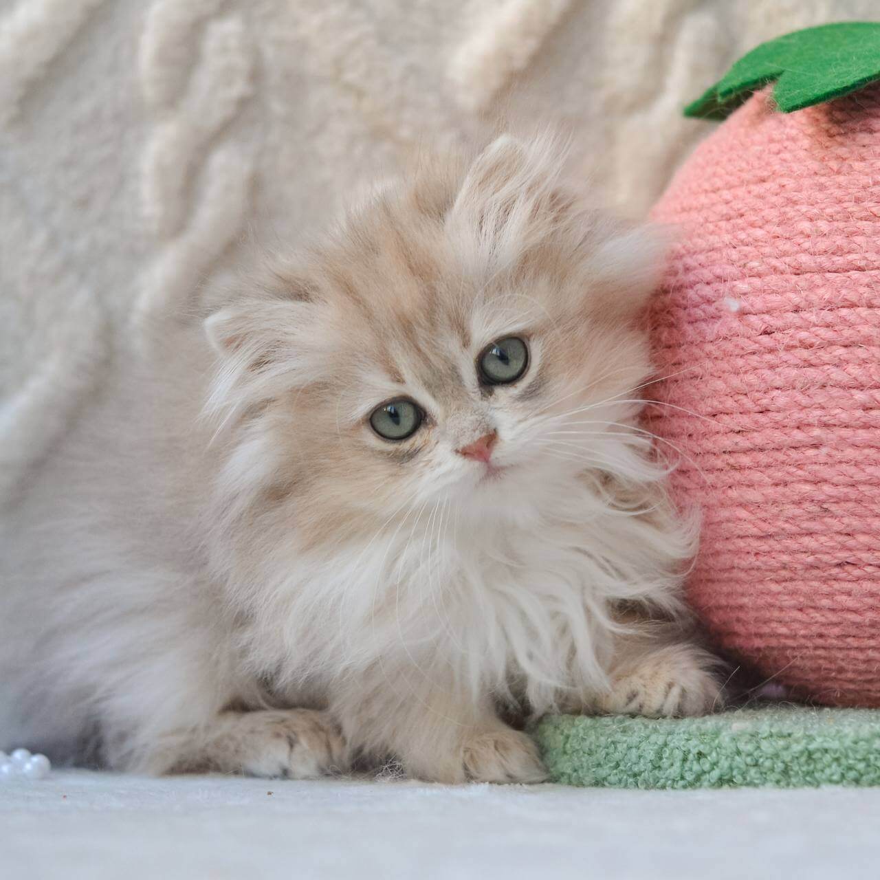Meet Steve, a heart-stealing Blue Golden Shaded gentleman, ready to sprinkle your home with warmth and wonder. His luminous green eyes will follow your every move, eager for a gentle stroke or cozy lap nap—Steve’s purr is like a lullaby you’ll never tire of hearing.