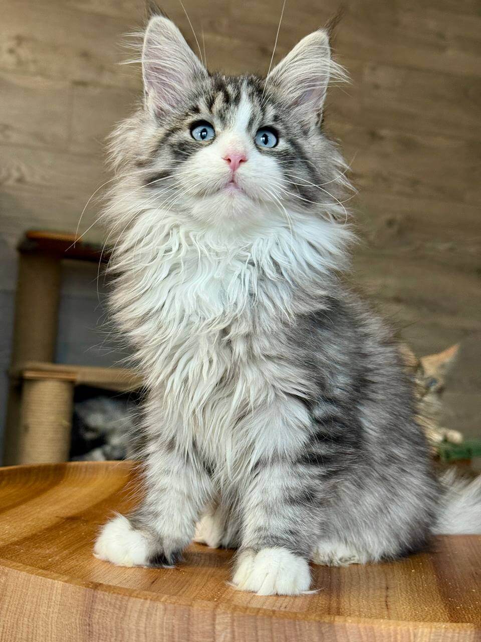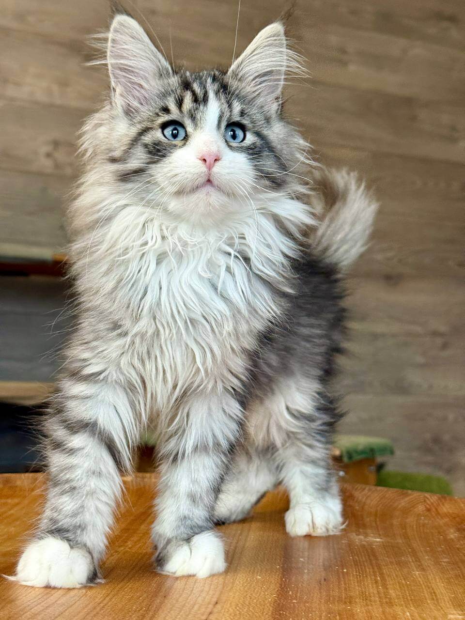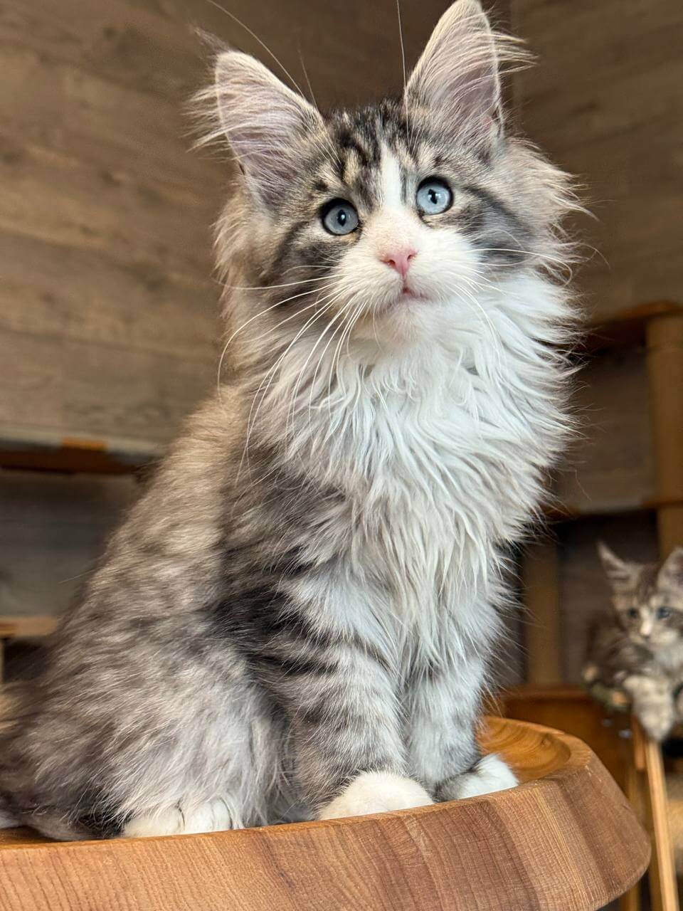 Raised for show quality with champion bloodlines and his WCF registration, Sultan represents everything noble in a Maine Coon pedigree. He’s been fully socialized, with multiple vet checks and all age-appropriate vaccinations, so you can welcome him home with total confidence. Litter trained to wood pellets, Sultan is prepared for an easy transition, and you’ll have access to daily support after adoption.