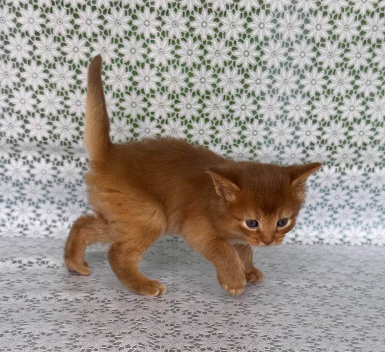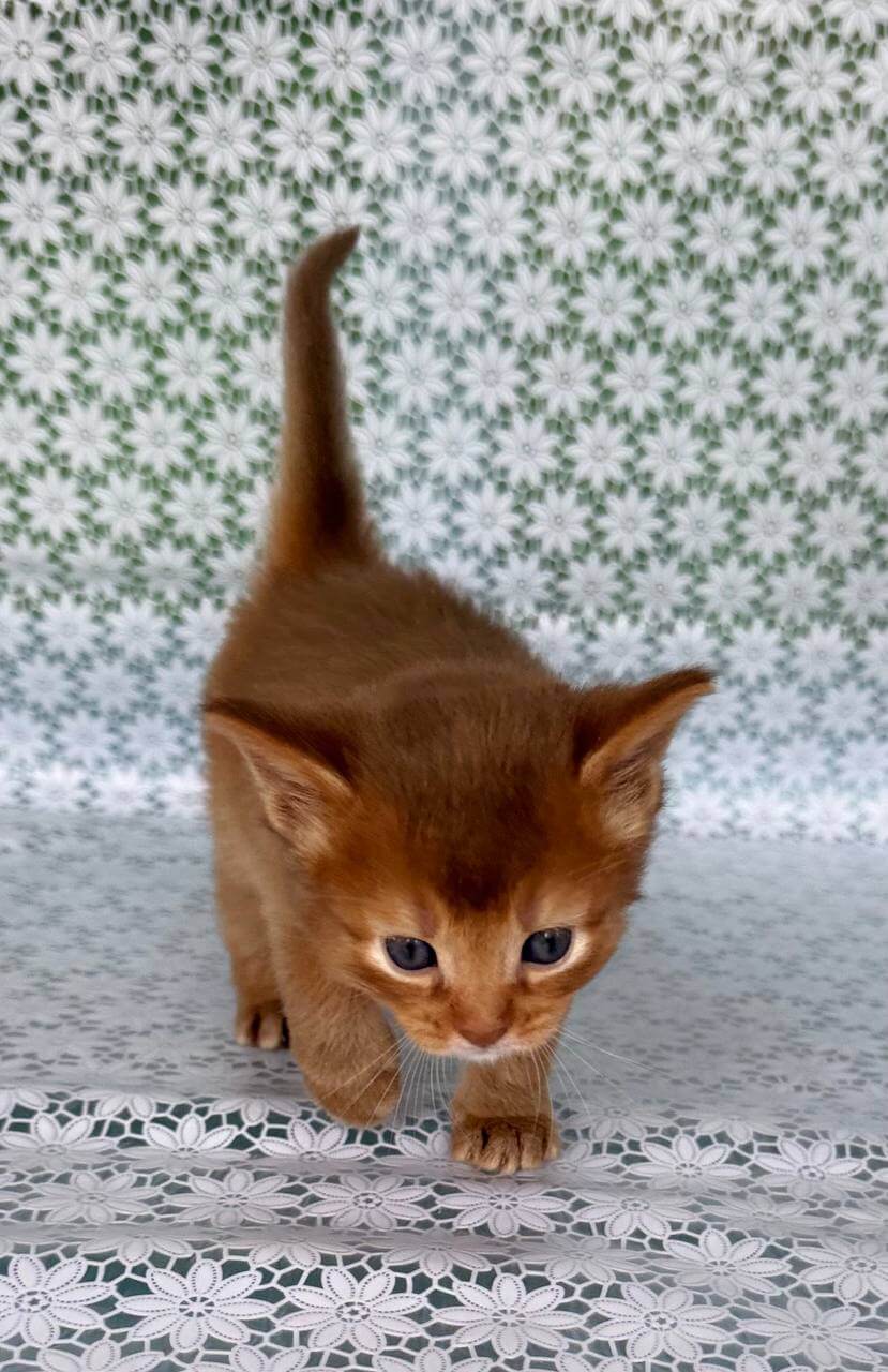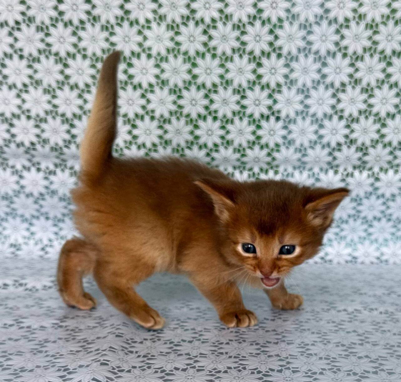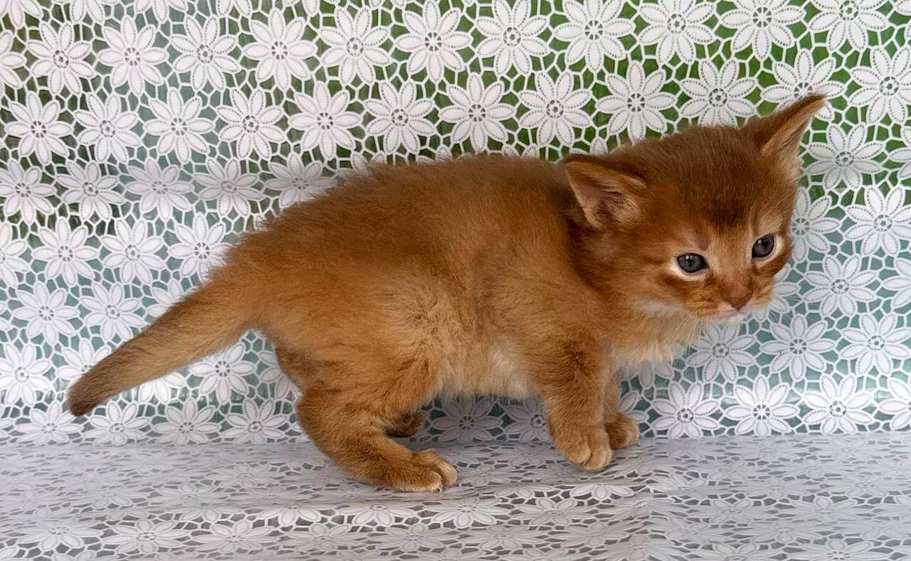 Meet Sunny, our dazzling Somali princess whose soft sorrel fur gleams like a cozy sunrise. She’s a gentle soul with sparkling yellow eyes—full of playful curiosity and boundless affection. Whether she’s curling up for purring cuddles or exploring the world with her delicate paws, Sunny fills every heart (and lap!) with warmth.