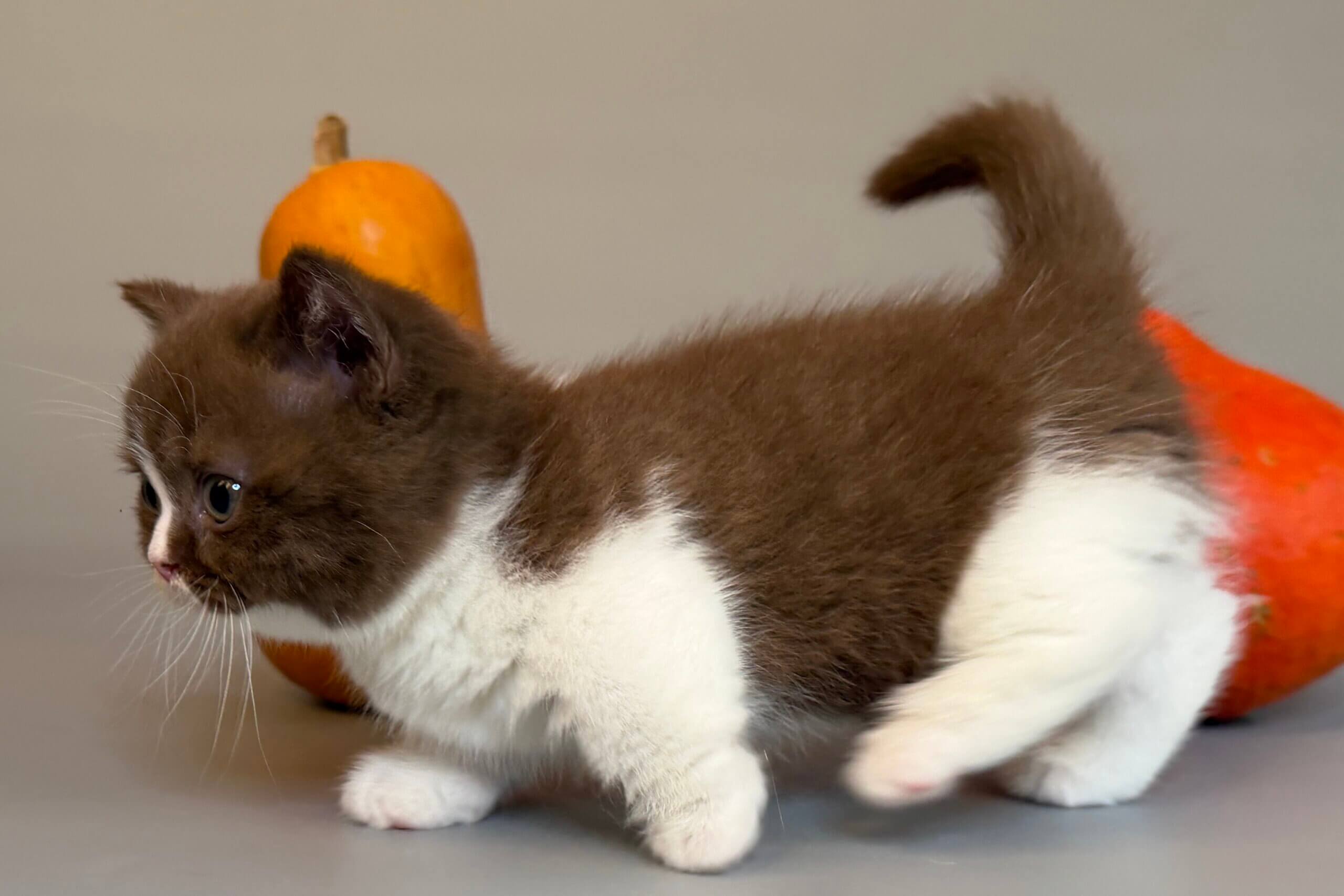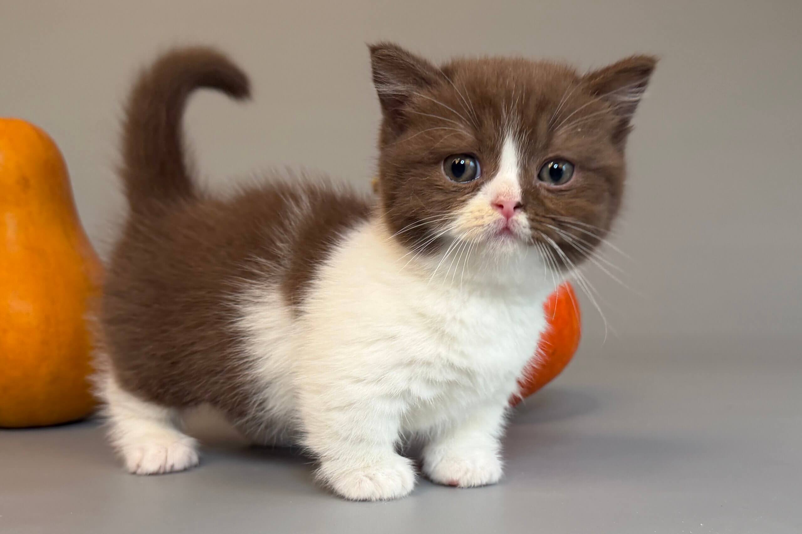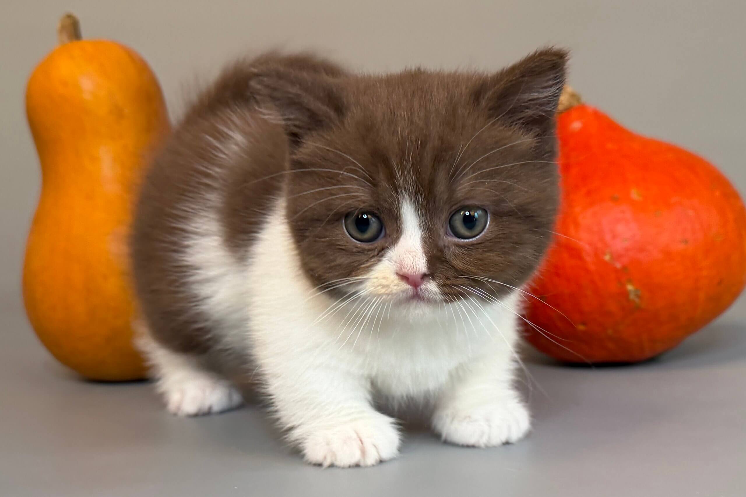 From the moment you hold Tama, you’ll feel her soft warmth purring gently into your heart. With her plush chocolate-and-white coat and inquisitive yellow eyes, Tama is a little masterpiece—curious, gentle, and already a champion snuggler.
