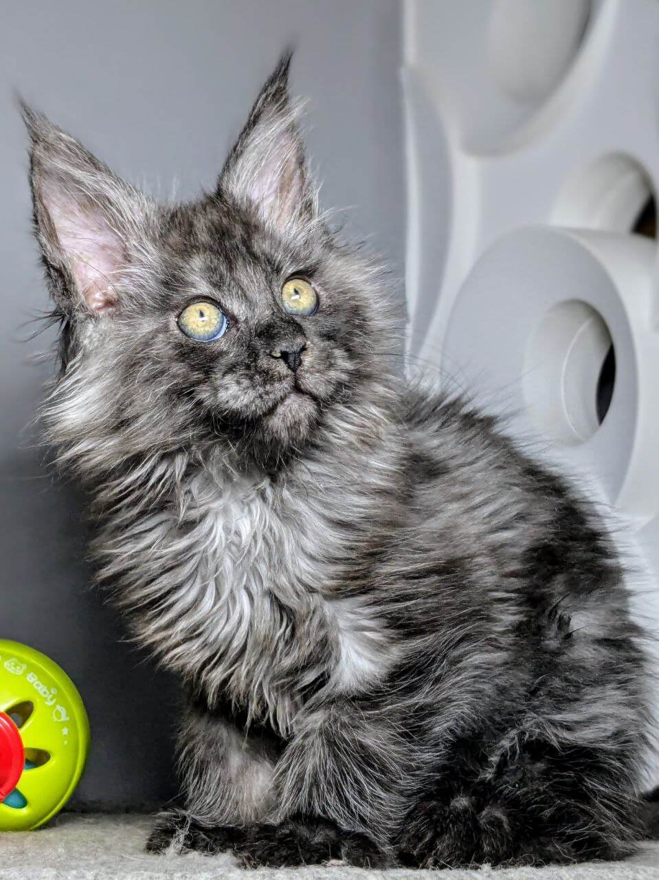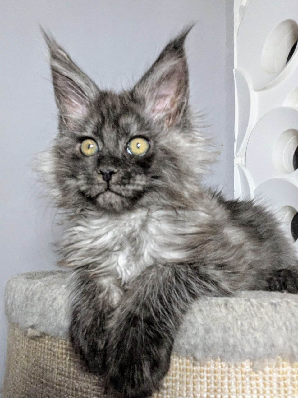 Imagine tiny paws padding softly into your life, with a silken Black Silver coat that shimmers in the sunlight and warm golden-yellow eyes that melt your heart at first glance. This precious Tayger boy is a true showpiece—born to champion bloodlines, his elegant stripes and playful elegance will leave you enchanted.