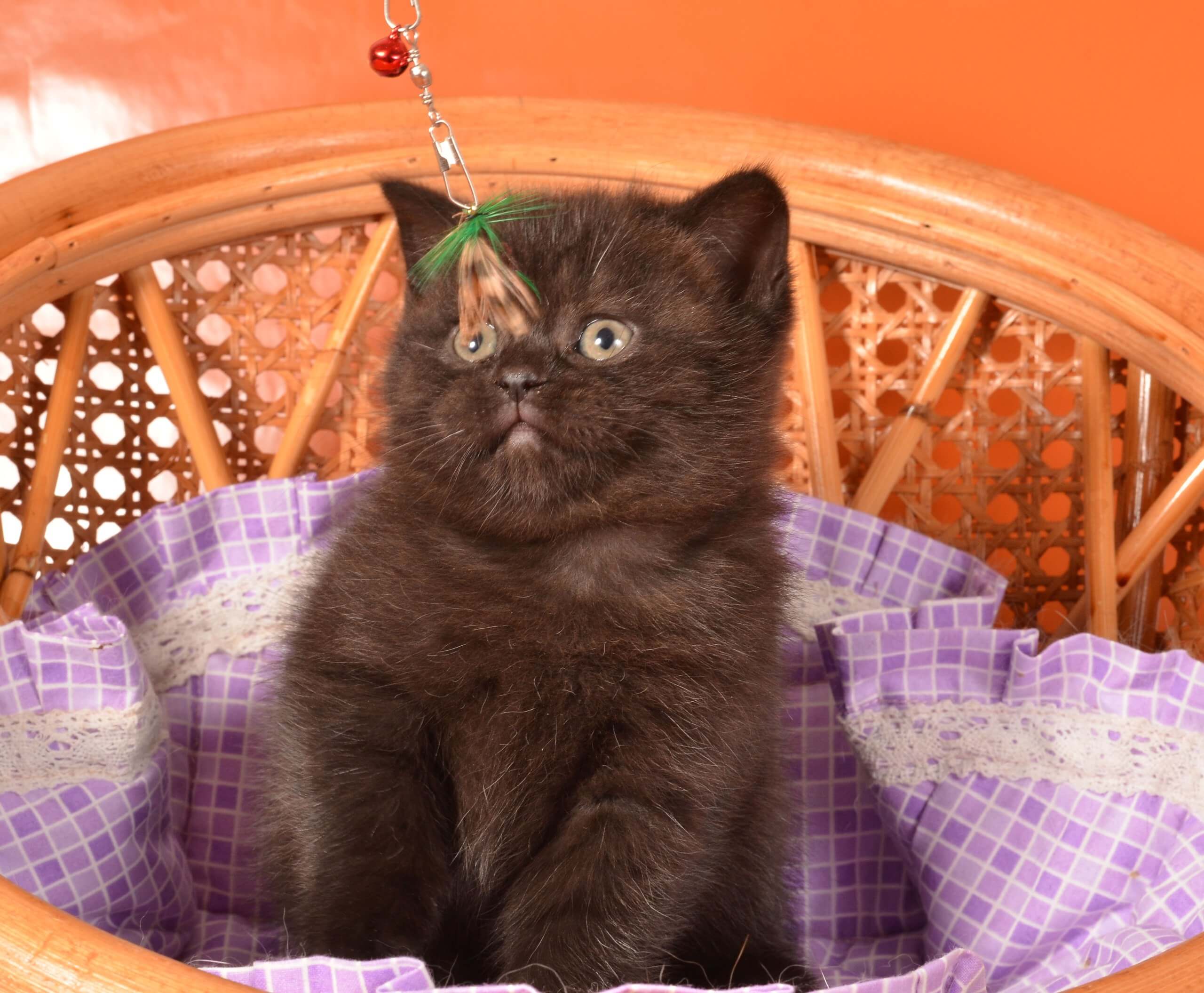 Teodora is a Female Scottish Straight kitten with outstanding show quality, carefully raised in a loving environment. She is playful yet serene, always seeking your affection and happy to greet you with soft brushes of her velvety fur. Her classic features and soulful golden gaze speak volumes about her elegant champion lineage.
