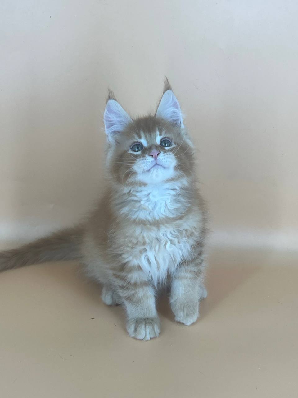 Exuding classic Maine Coon charm, Tiguan is surprisingly attentive for such a regal kitten. He greets you at the door with a chirrup, follows your footsteps like a fluffy shadow, and settles at your side during evening quiet time. Curious but gentle with new sounds and people, he invents games with feather toys and bonds best through shared routines, quickly becoming a household confidant.