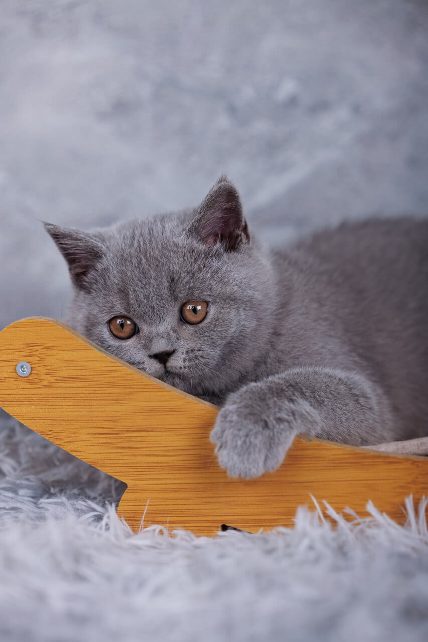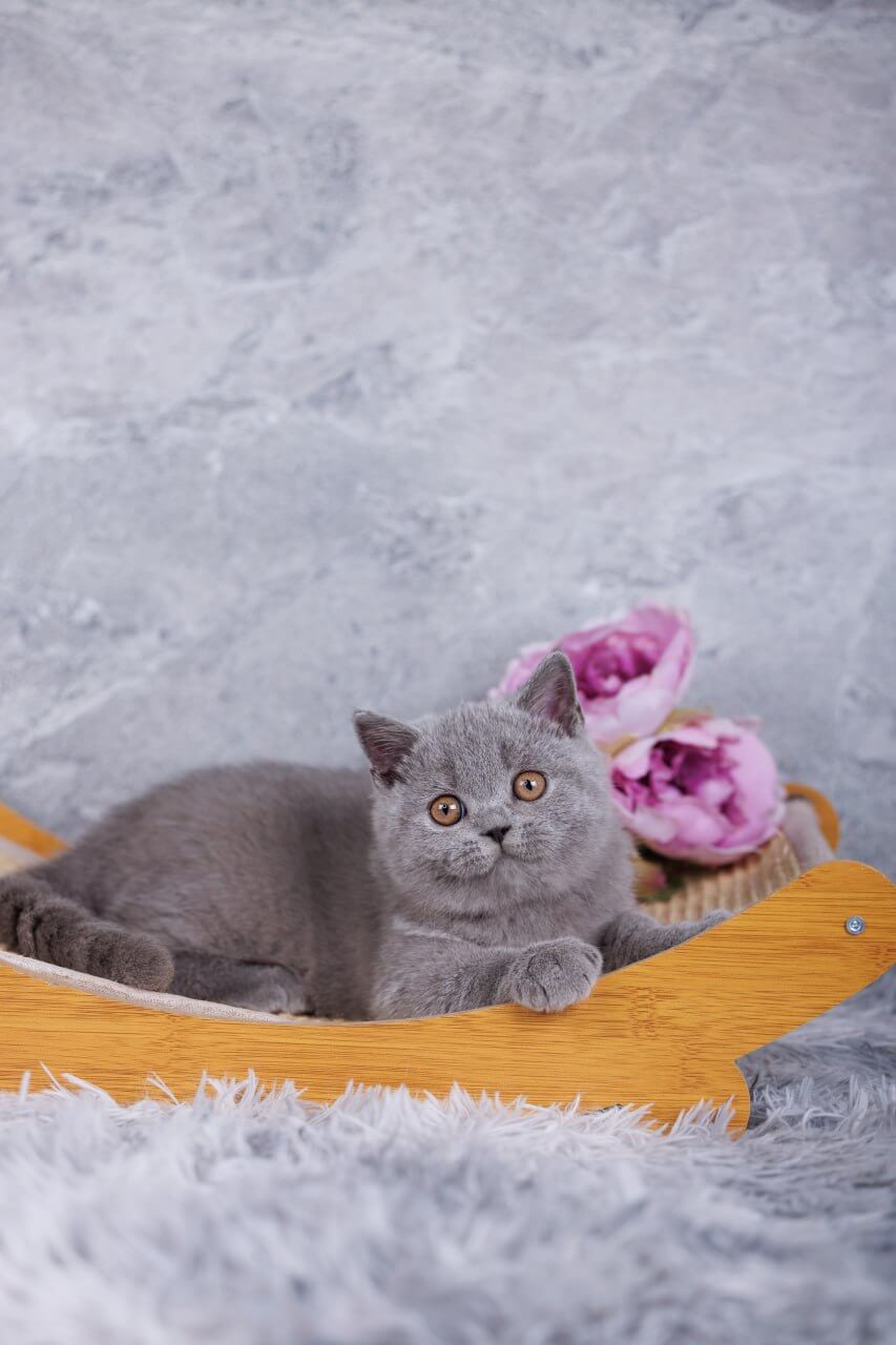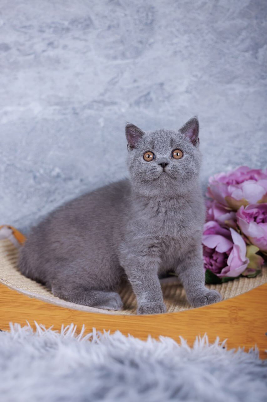 Meet Tilda, a show-quality female British Shorthair with stunning blue fur and captivating orange eyes. Born on June 20, 2025, she hails from champion bloodlines, offering both remarkable beauty and lineage.