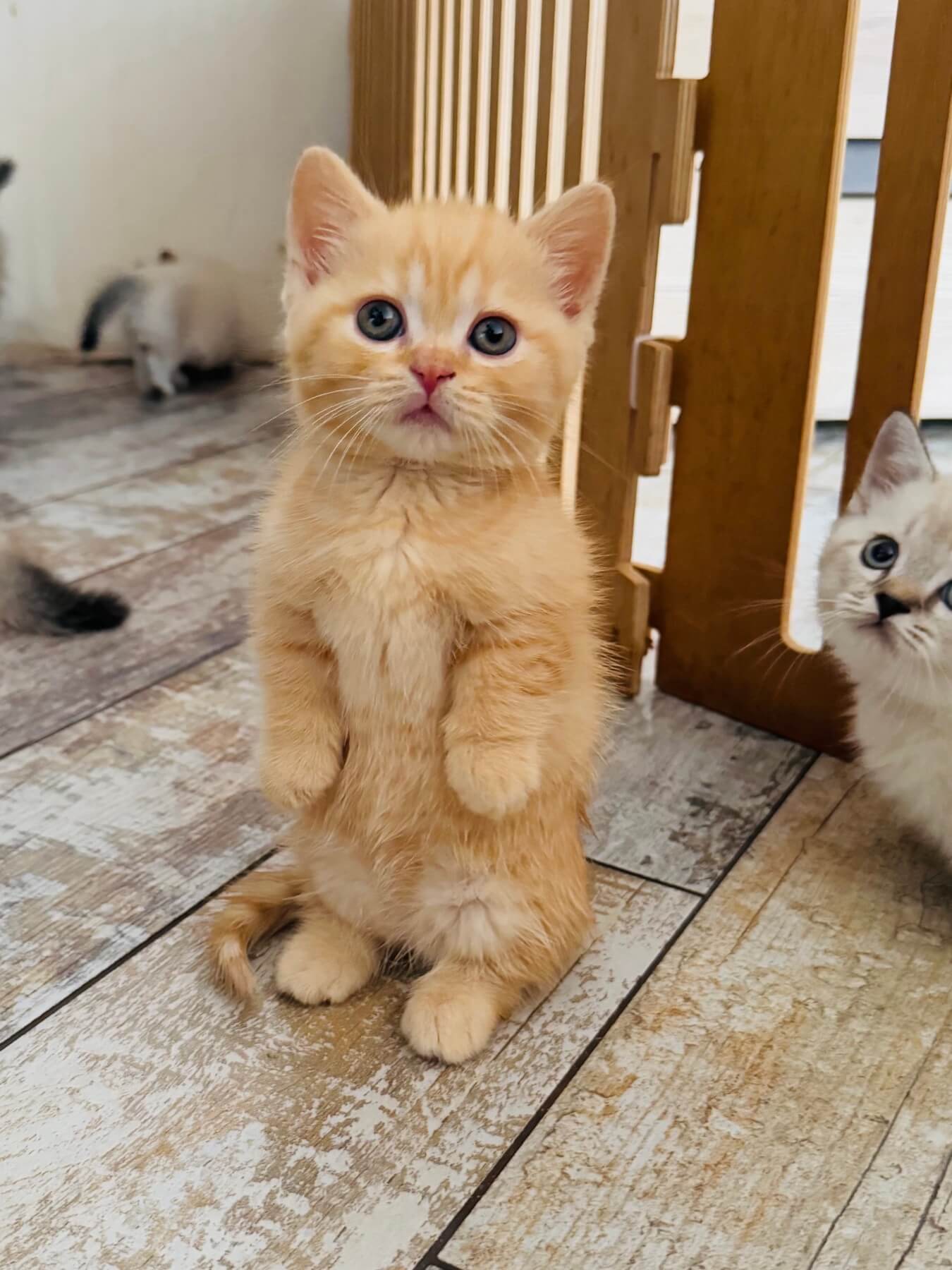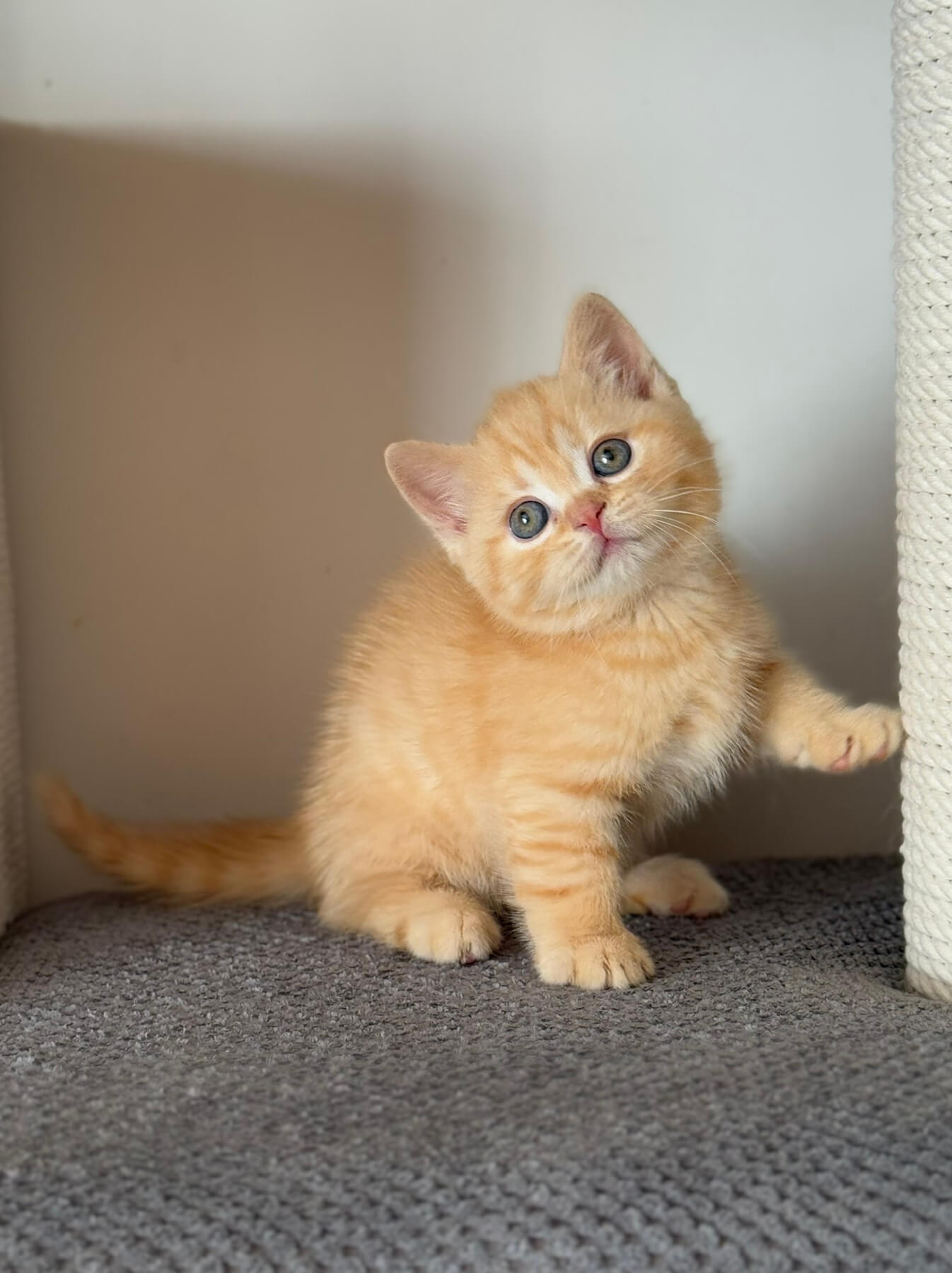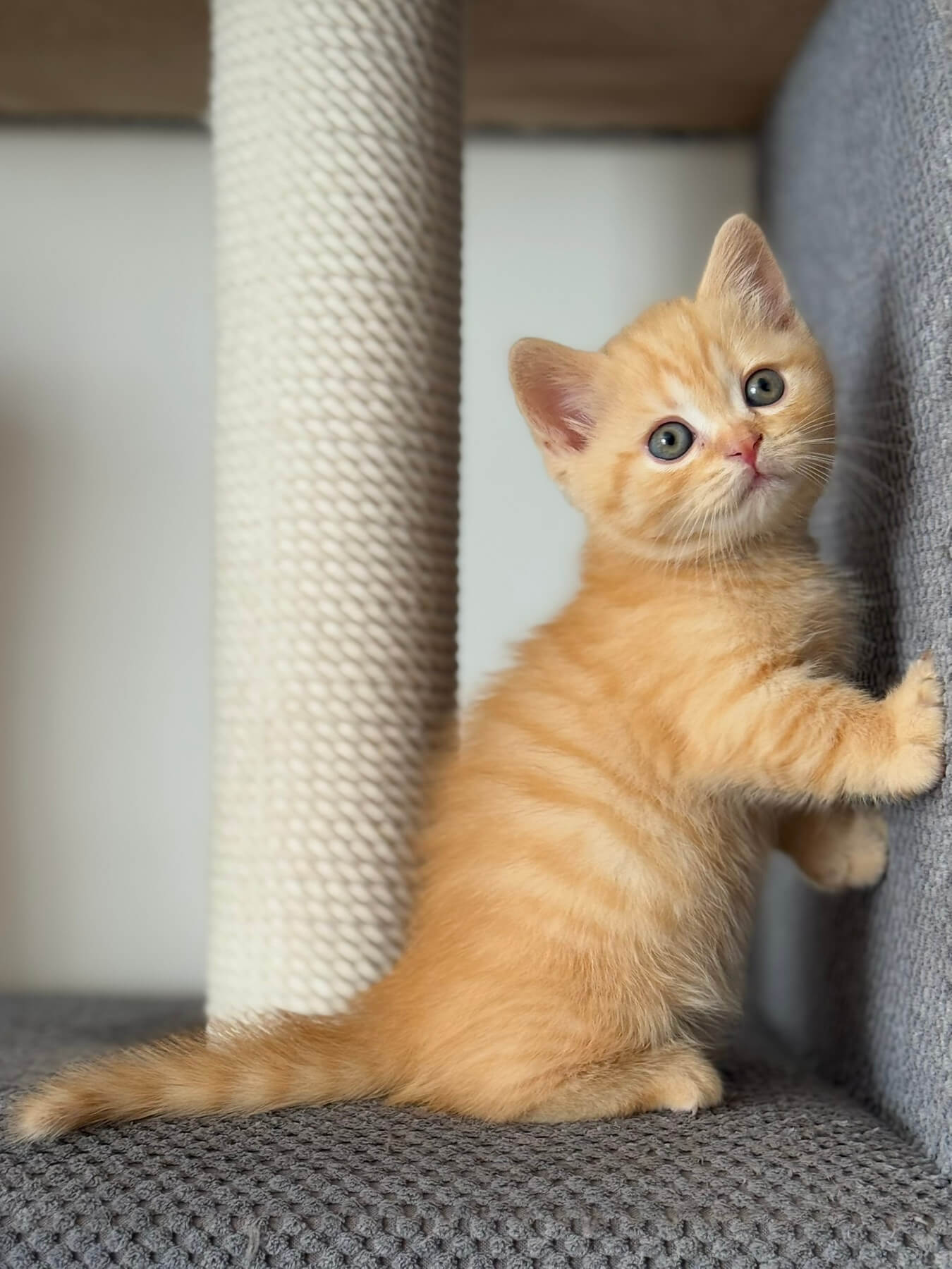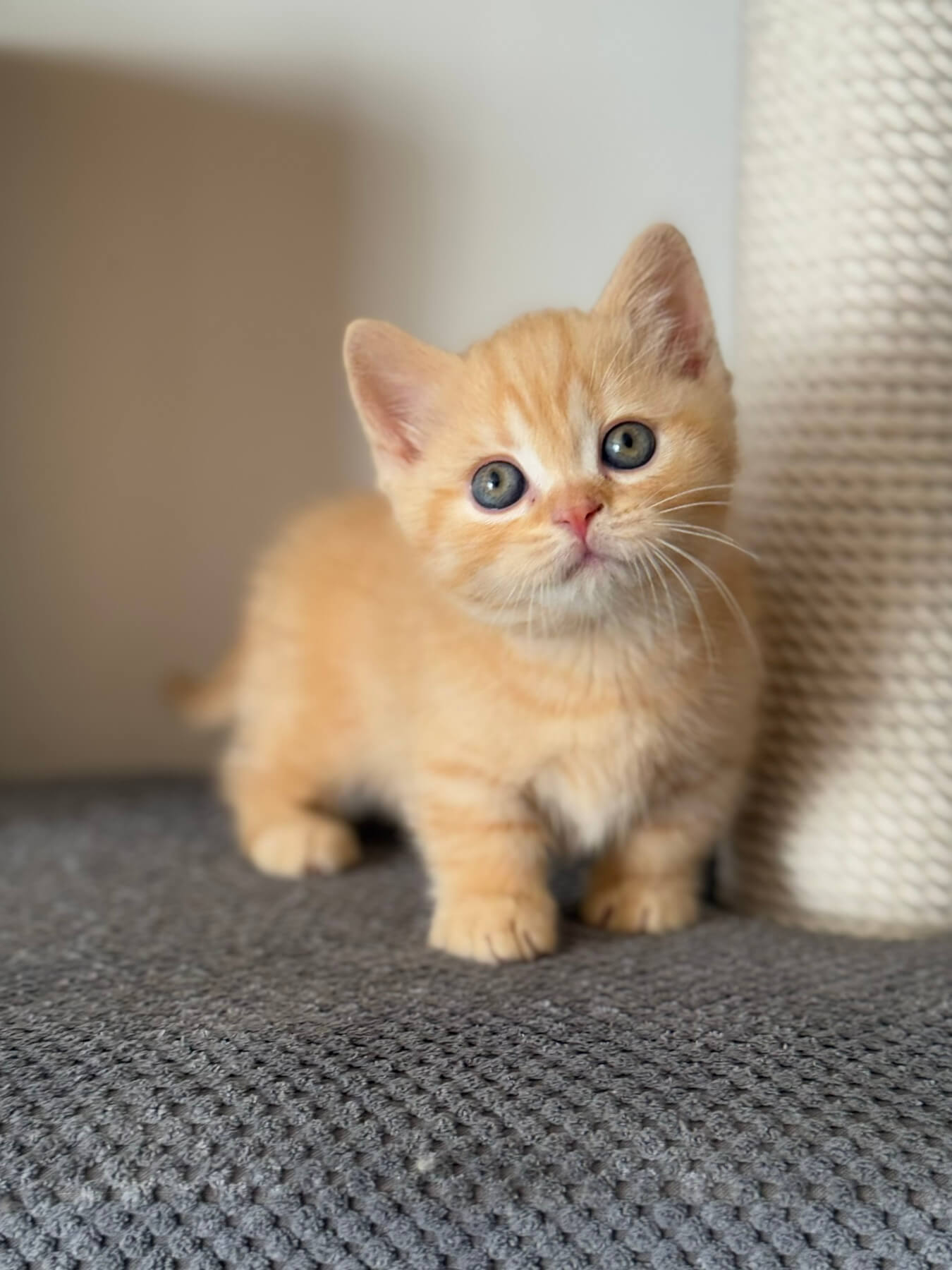 Meet Titan, an adorable male Munchkin kitten with a striking red coat and captivating yellow eyes. Born on August 18, 2025, Titan comes from champion bloodlines and is of show quality. He will be ready to join his new family on December 18, 2025. Registered and available with a conditional pedigree (please inquire for pricing), Titan can be reserved for the USA through our website with a $500 non-refundable deposit. Convenient pick-up is available at our location in Wood Dale, Illinois, or we can arrange delivery from Chicago to other states. All kittens are neutered/spayed before adoption, or breeding rights can be discussed upon request. We provide 24/7 support for all your kitten care needs. For more details and joyful moments with Titan, check out our Instagram page.