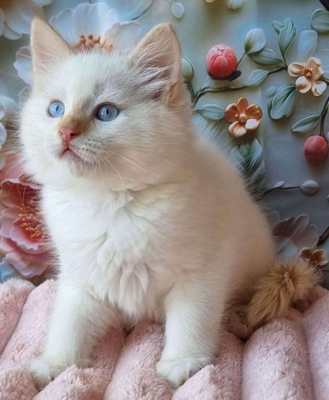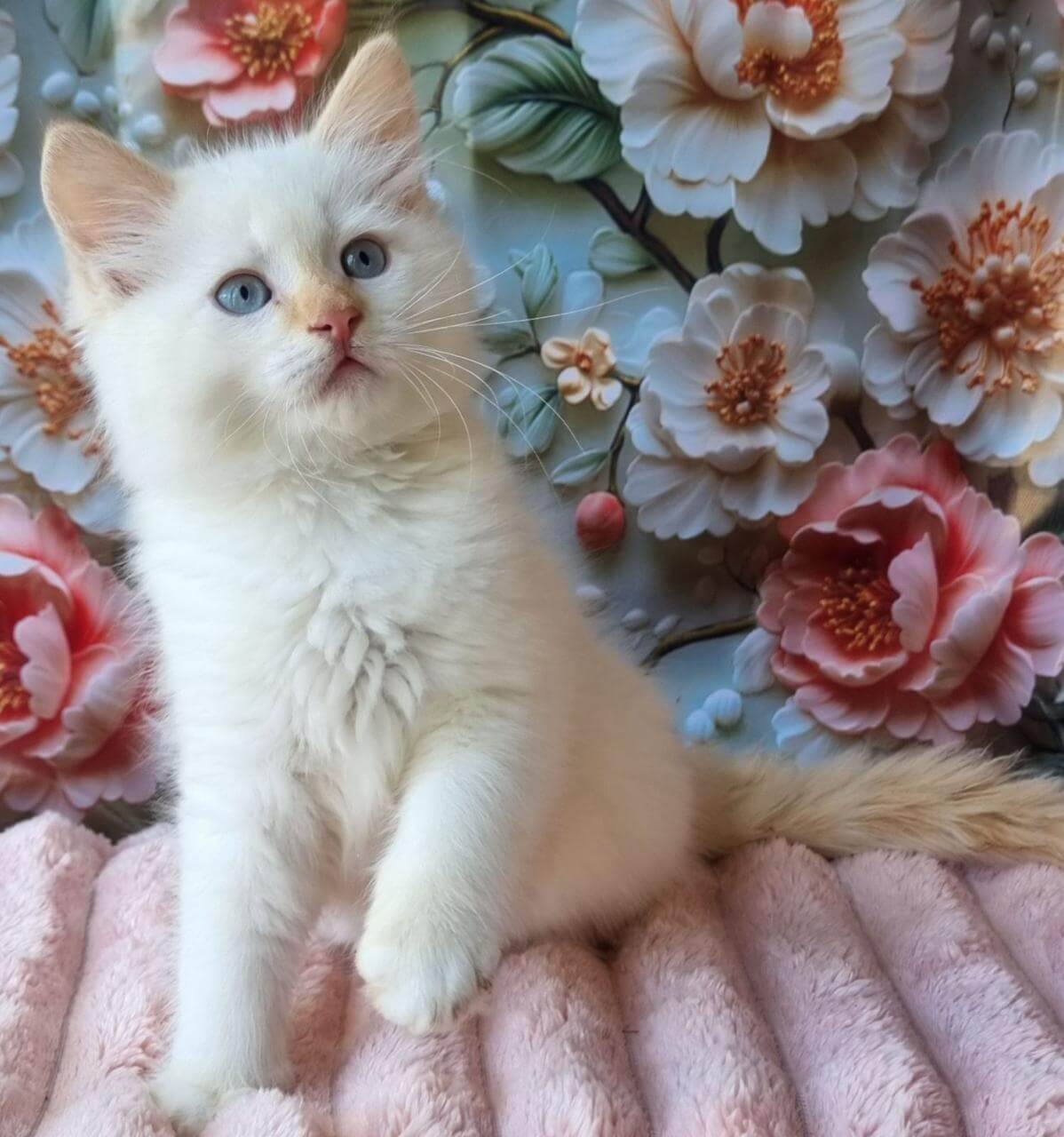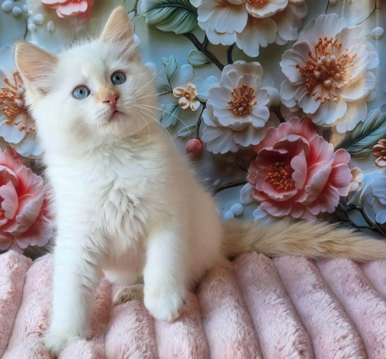 Tomas is pure show-quality magic, boasting his champion bloodlines and plush coat that catches the light as he plays. Affectionate and tender, he adores snuggles and quietly explores the world with curiosity and trust—he’s your loyal companion in every moment. His beautiful blue eyes sparkle with intelligence and promise unconditional love.