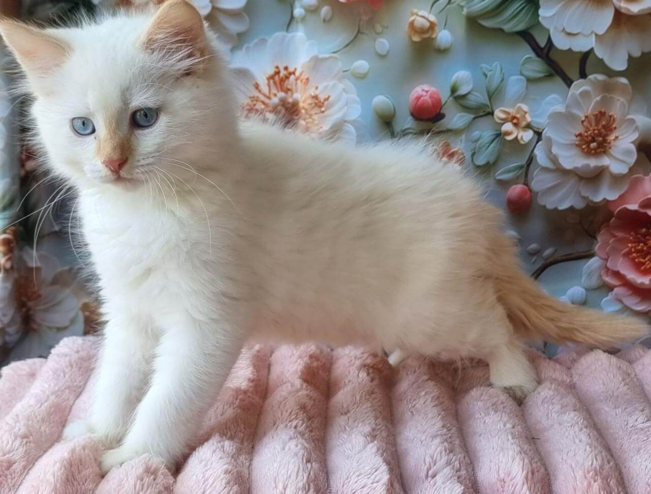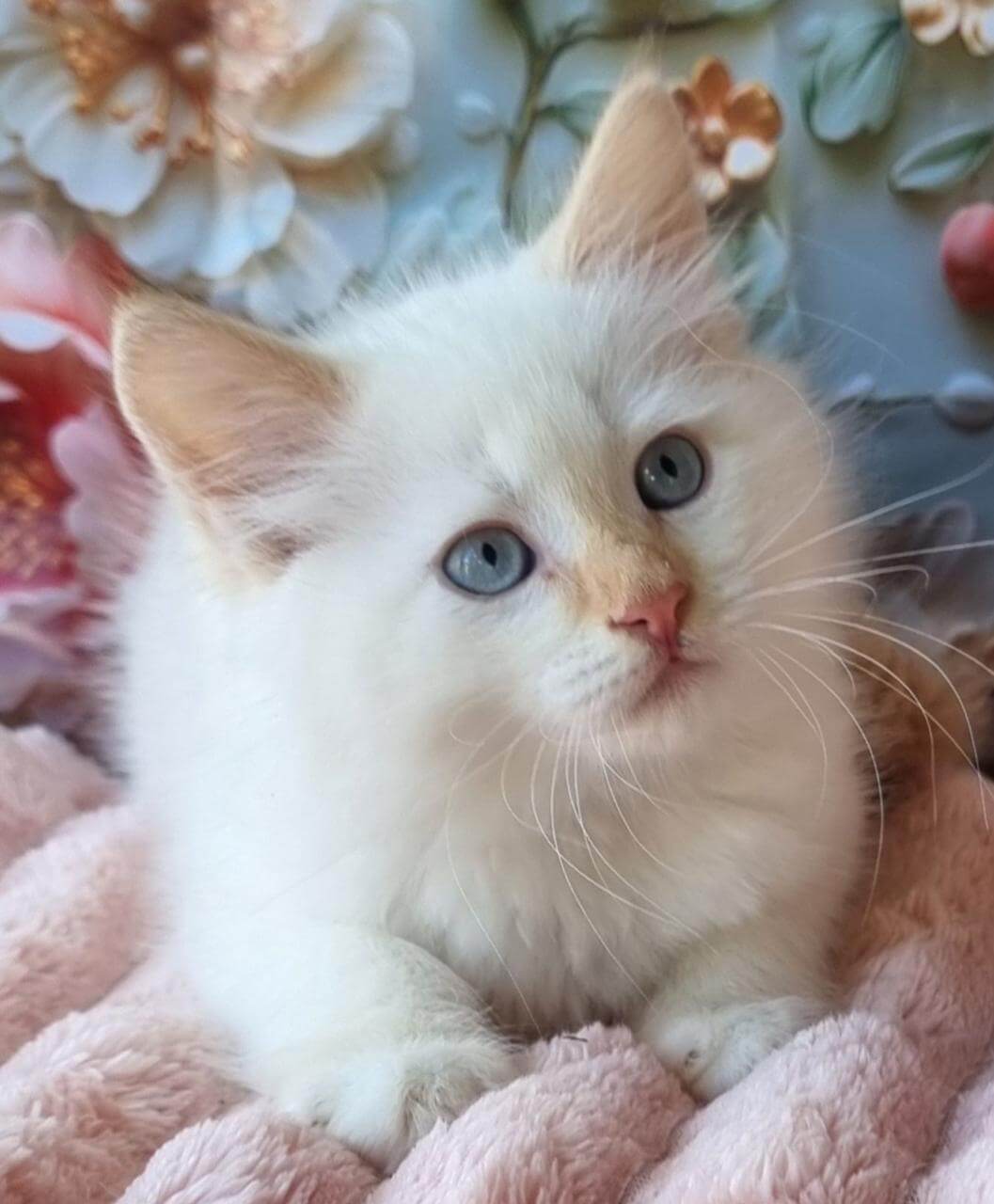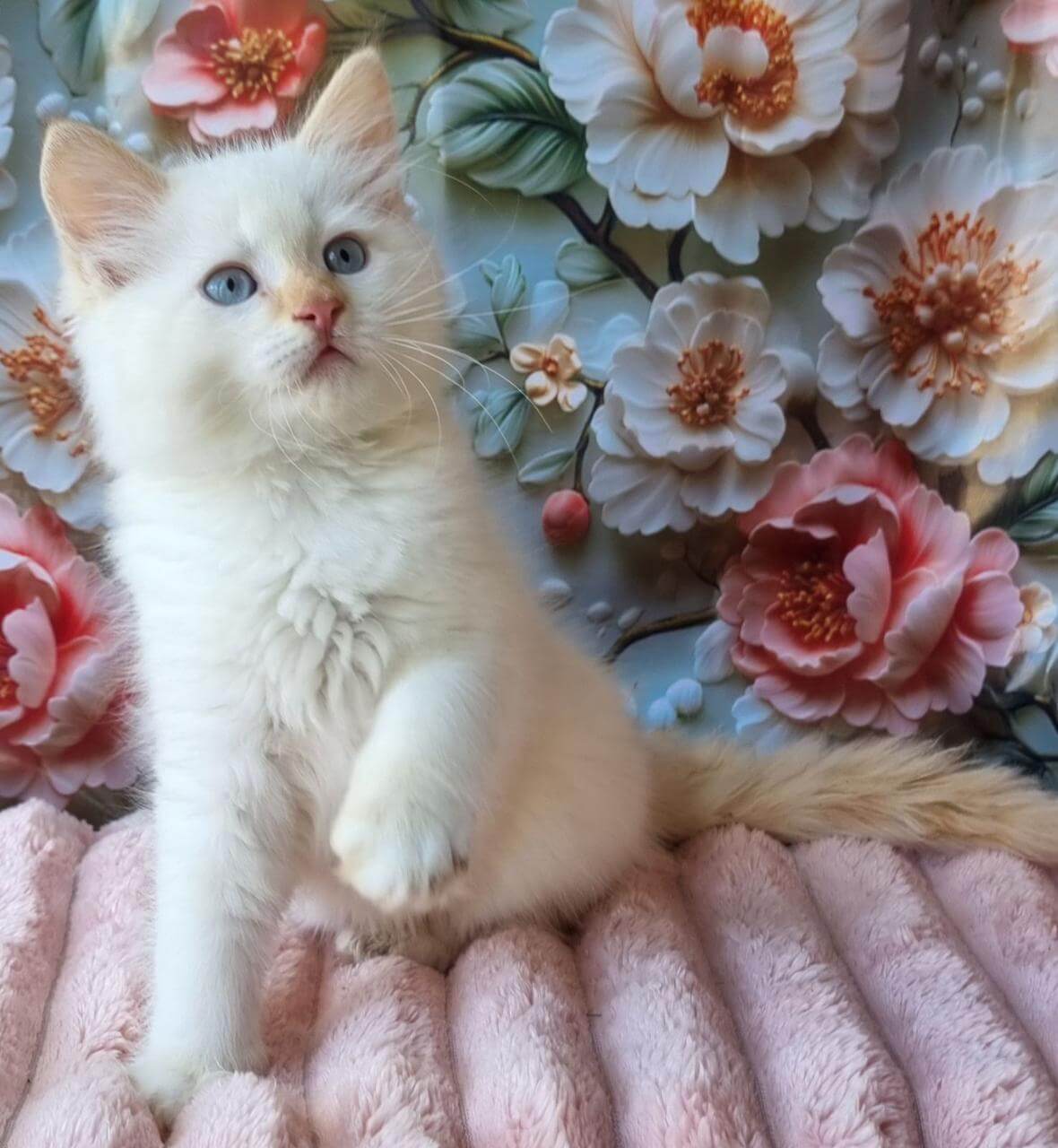 Tomas is pure show-quality magic, boasting his champion bloodlines and plush coat that catches the light as he plays. Affectionate and tender, he adores snuggles and quietly explores the world with curiosity and trust—he’s your loyal companion in every moment. His beautiful blue eyes sparkle with intelligence and promise unconditional love.