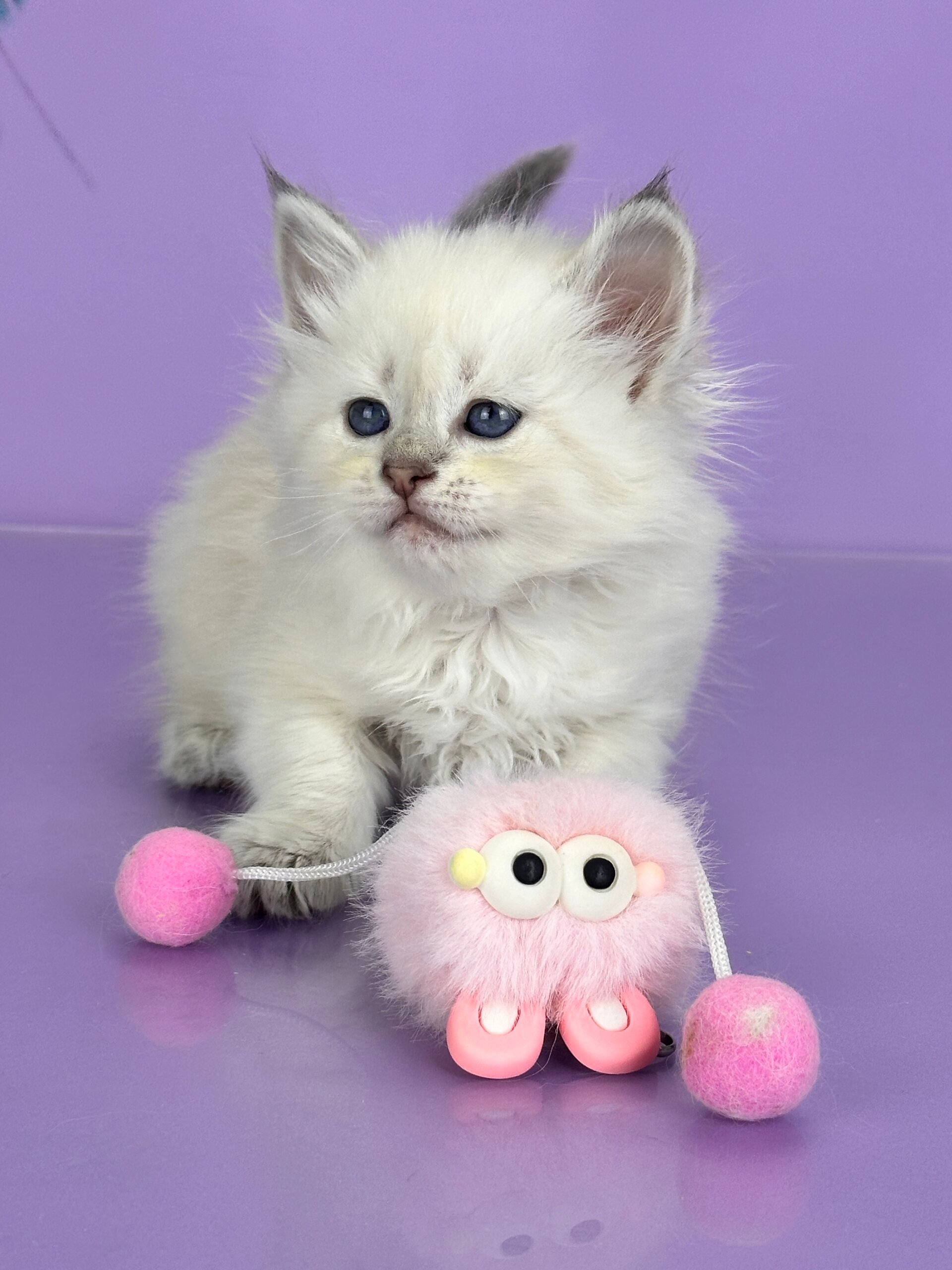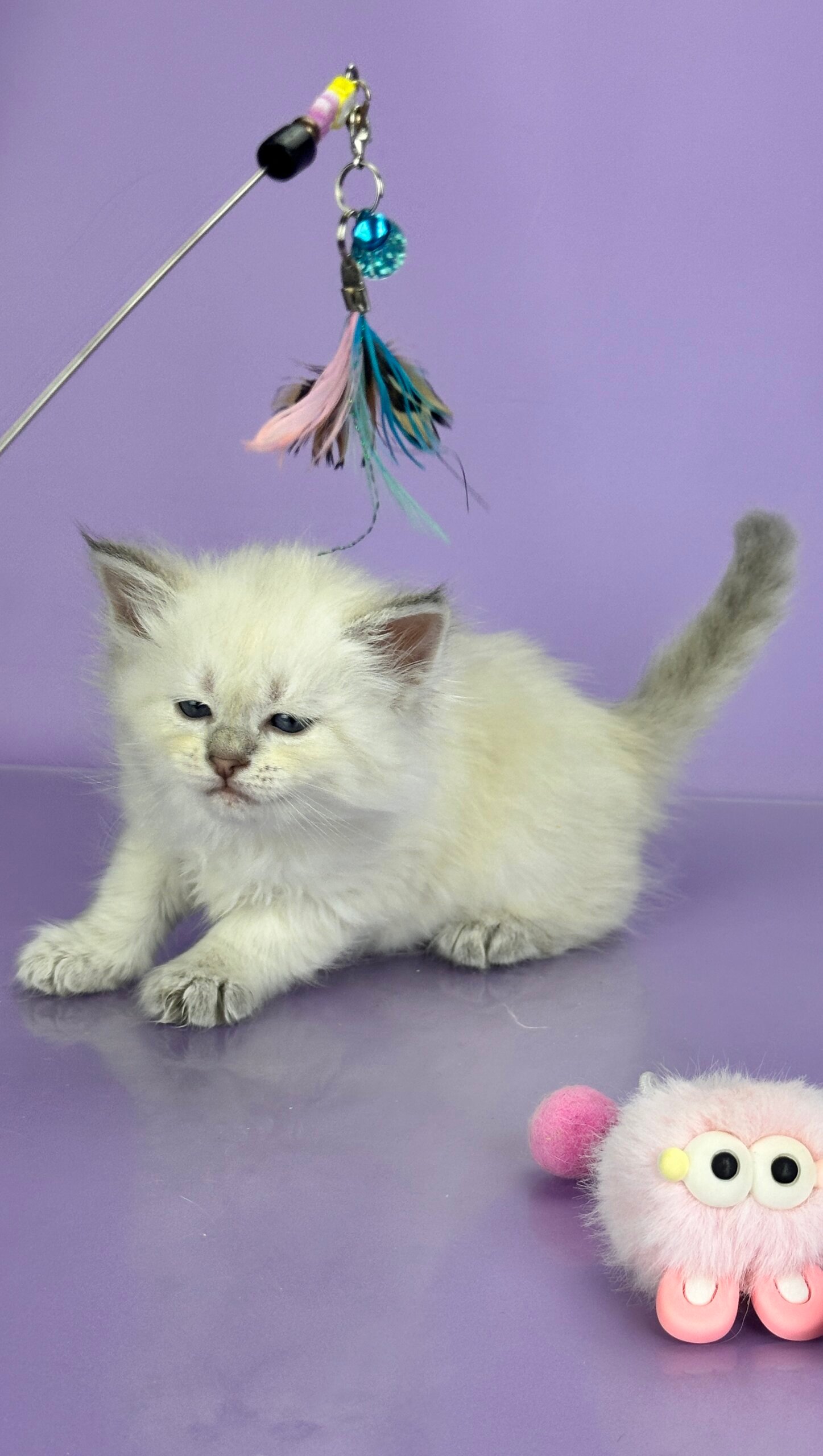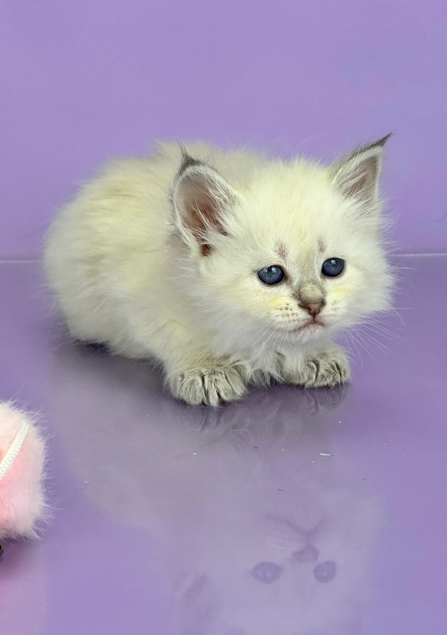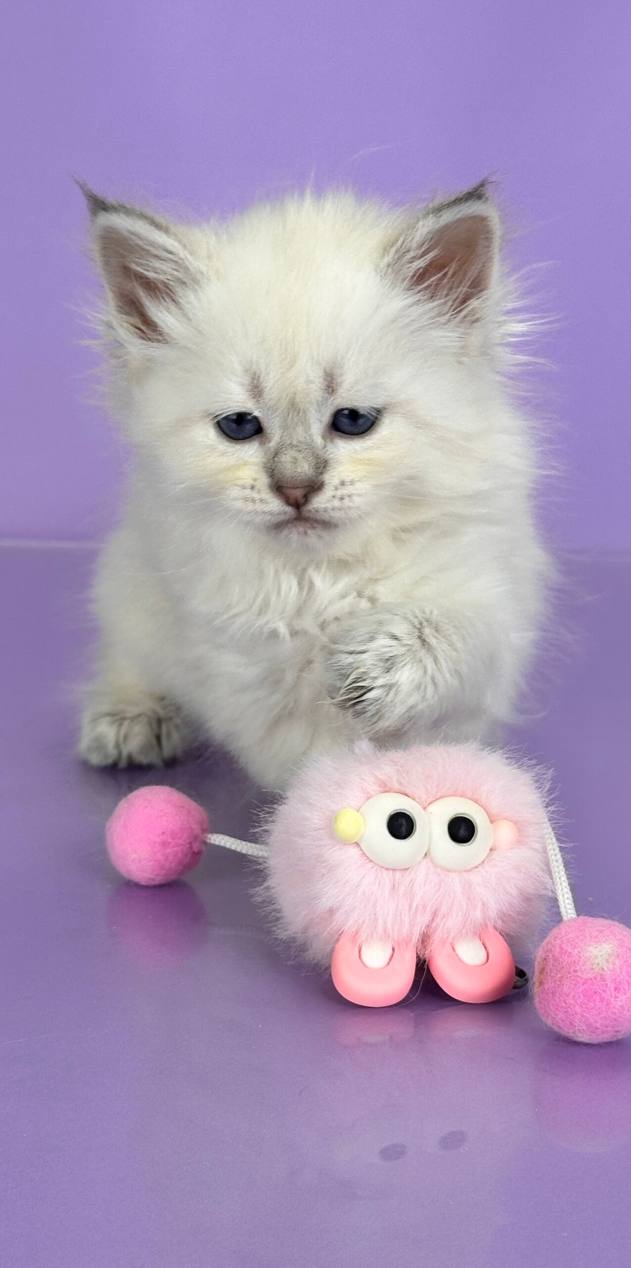Meet Trixie, an exquisite female Siberian kitten with a stunning blue tabby point coat and captivating blue eyes. Born on August 10, 2025, Trixie comes from champion bloodlines and boasts a show-quality pedigree. She’s registered and will be spayed as a pet, ensuring she’s ready for her new loving home by December 10, 2025.