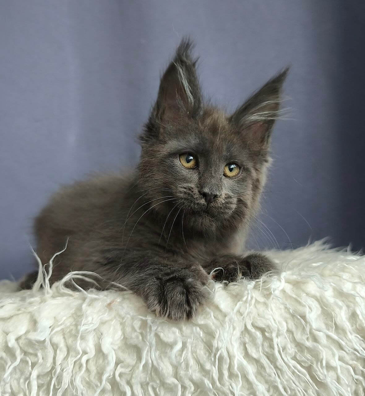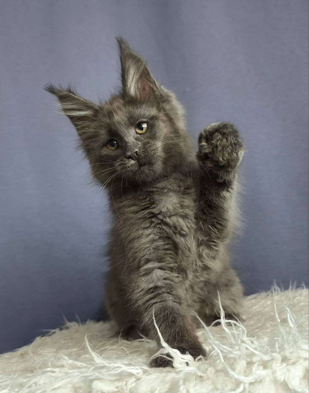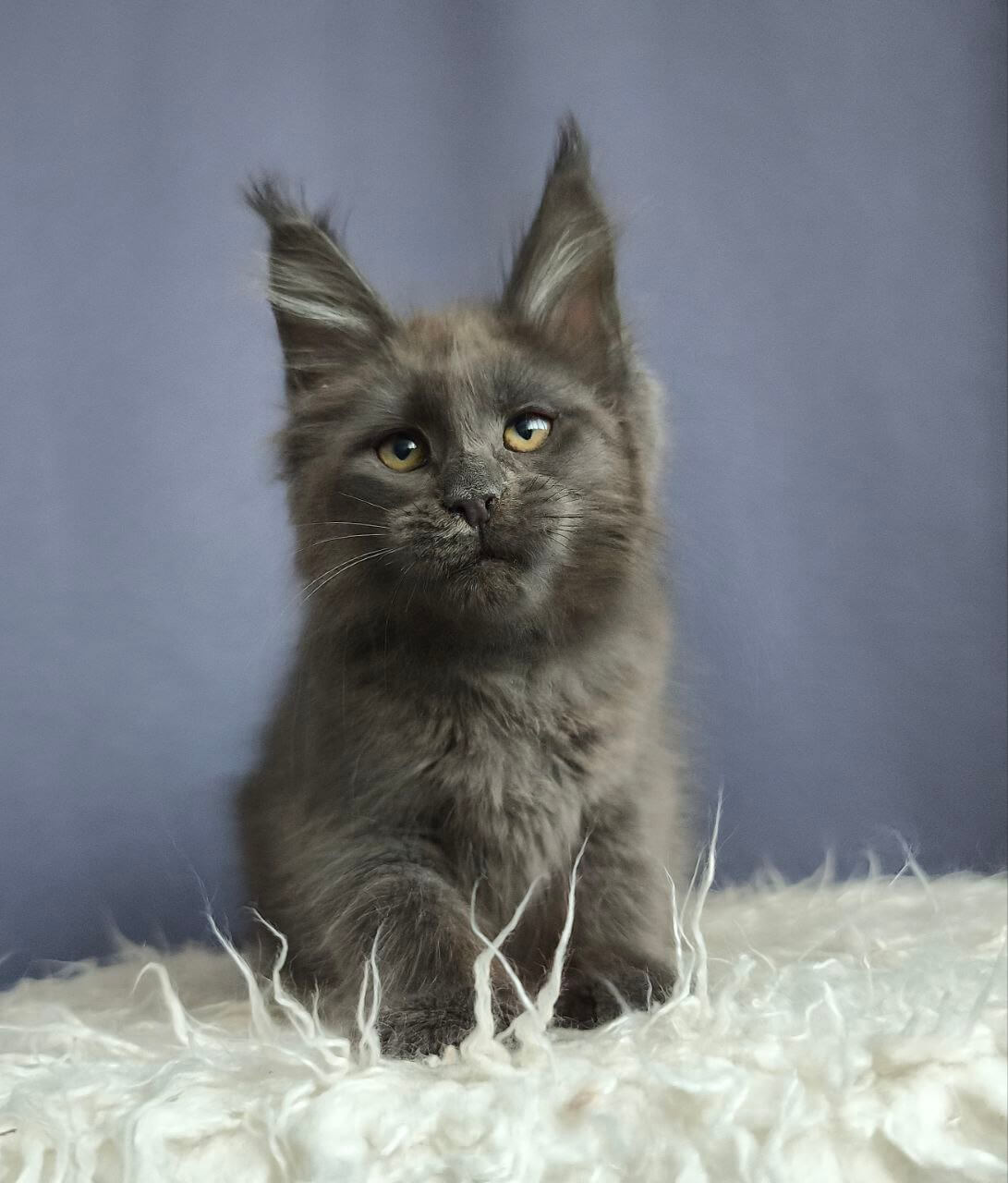 Meet Tutti Frutti — a dreamy Blue Silver princess whose soft fur gleams with gentle silver and whose sunflower-yellow eyes will melt your heart from the very first gaze. Imagine cradling her delicate paws, feeling her purring warmth tuck beneath your chin as she nestles in, eager for endless cuddles.
