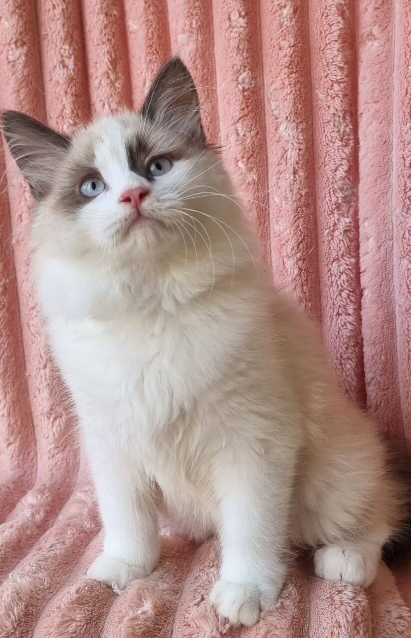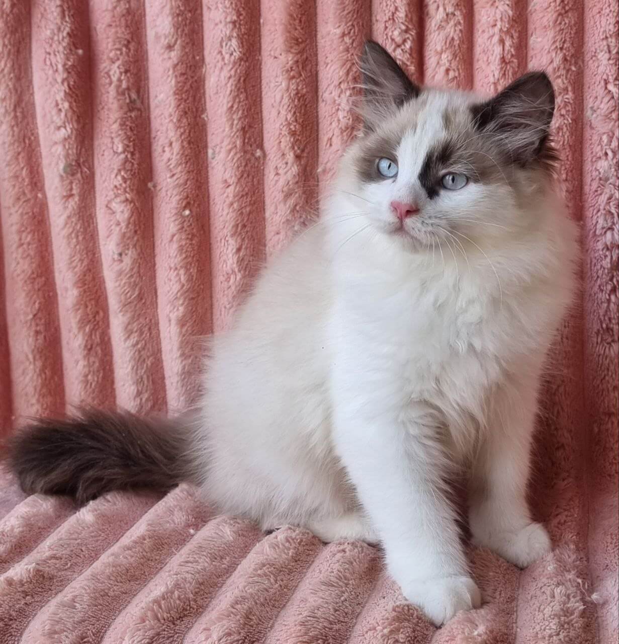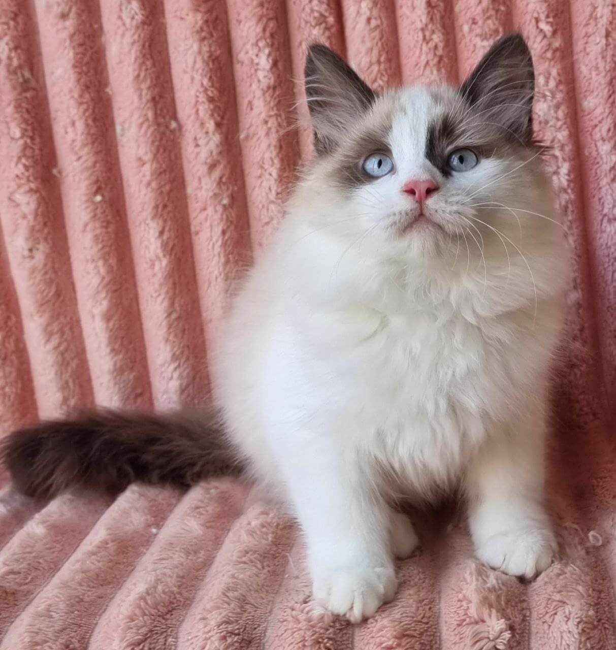 Meet Udjyn, an adorable male Siberian kitten with mesmerizing blue eyes and a stunning seal point coat with white accents. Born on August 3, 2025, Udjyn is from champion bloodlines and boasts show quality standards. He will be ready to join his forever home by December 3, 2025. Registered and carrying a conditional pedigree, additional breeding rights and custom spaying/neutering options are available upon request.