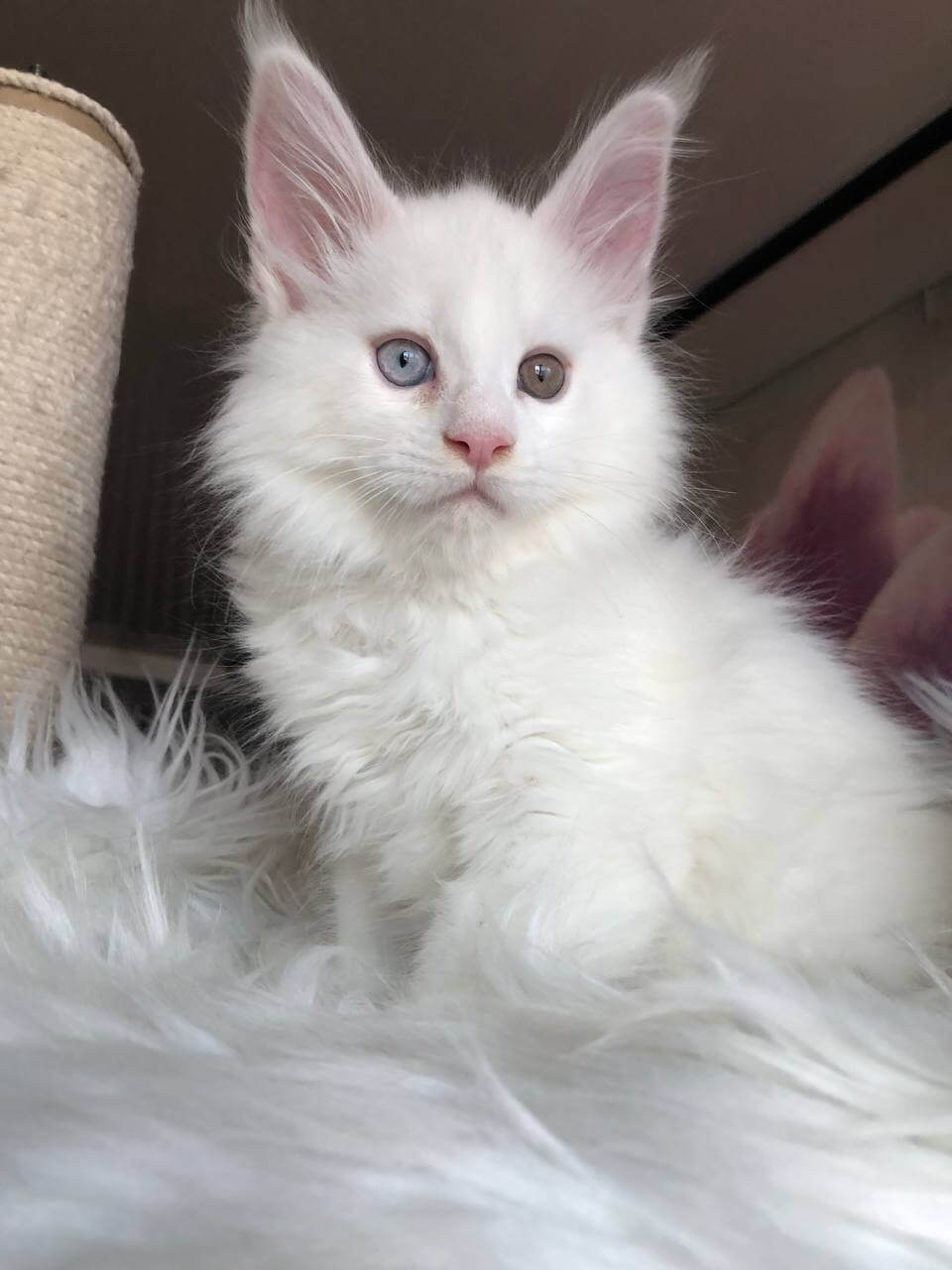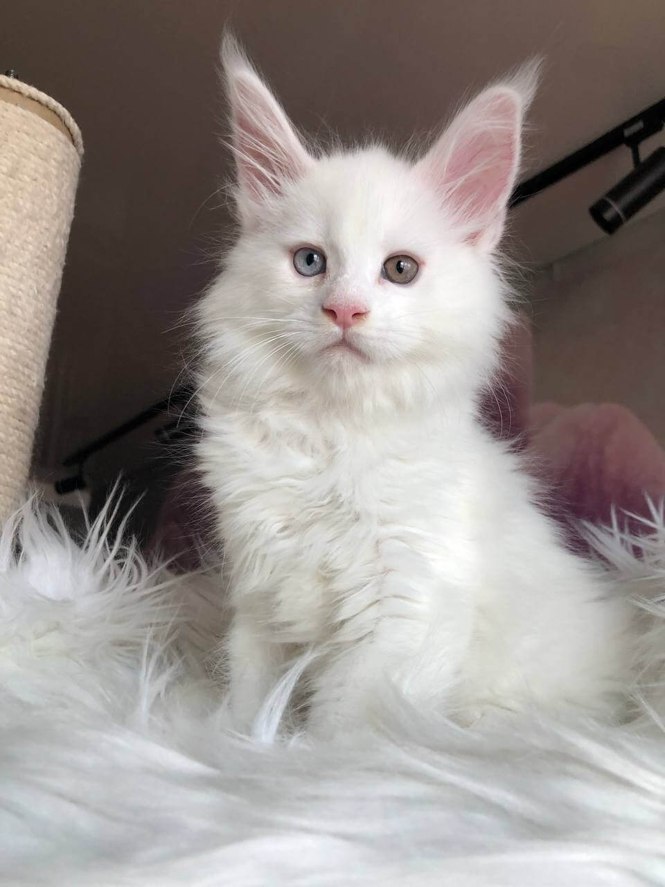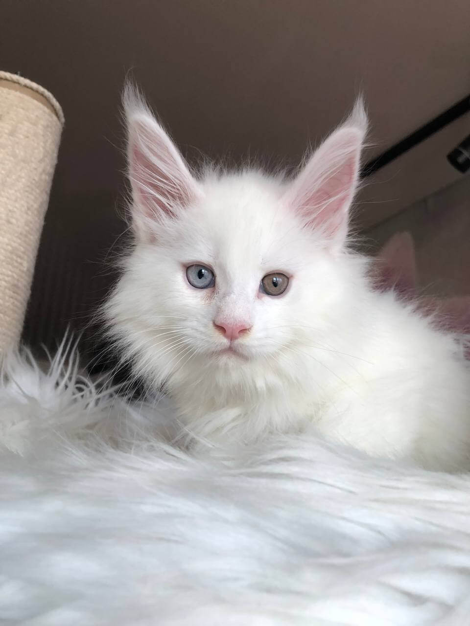 Imagine coming home to Umarielle, a show-stopping white kitten whose silken coat feels like the first snowfall—cool and pure, but always warm against your cheek. His gaze is utterly captivating: one crystal blue eye and one radiant gold, gleaming with wonder and intelligence. Playful by heart but gentle in his paws, Umarielle will fill your life with purrs, soft head bumps, and loving cuddles. He’s just waiting to chase shadows and curl up in your arms.