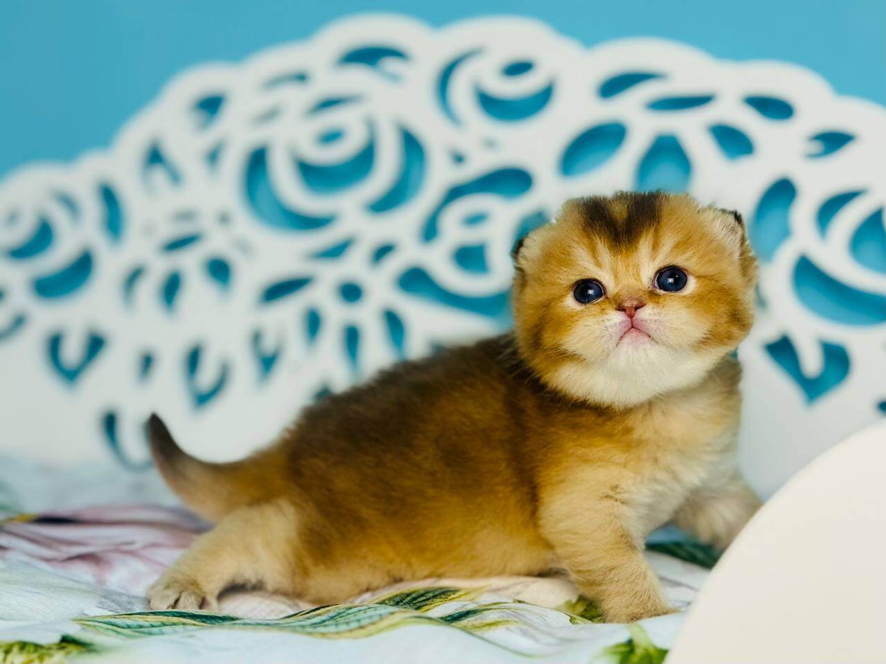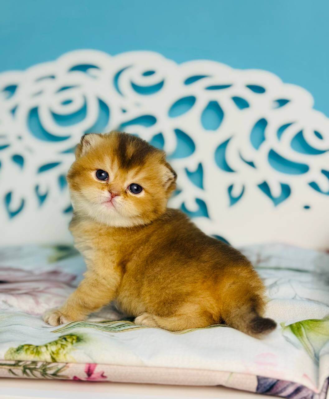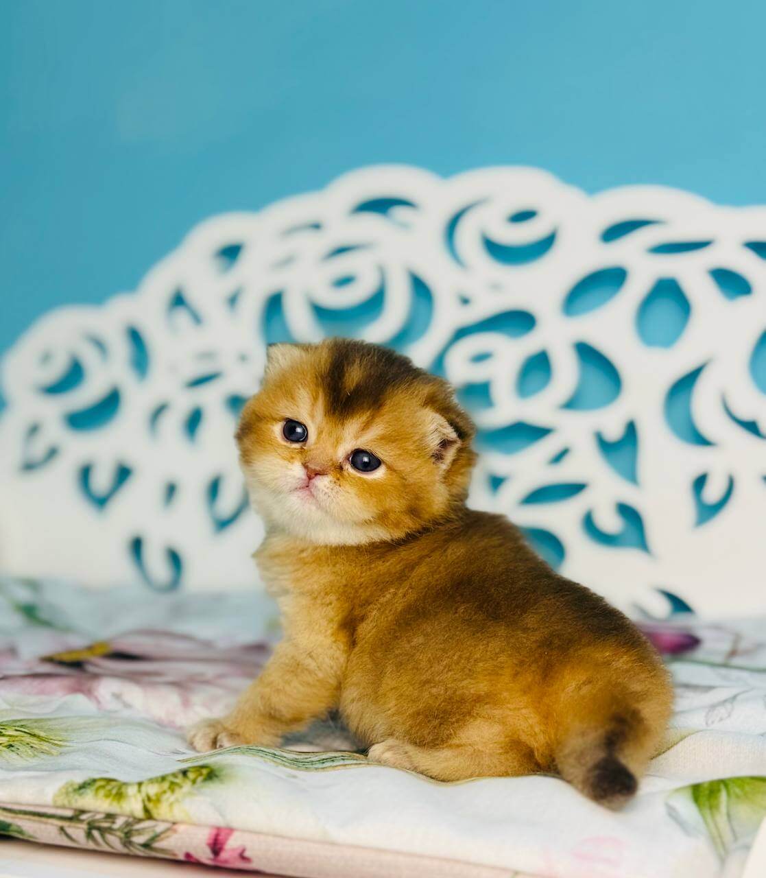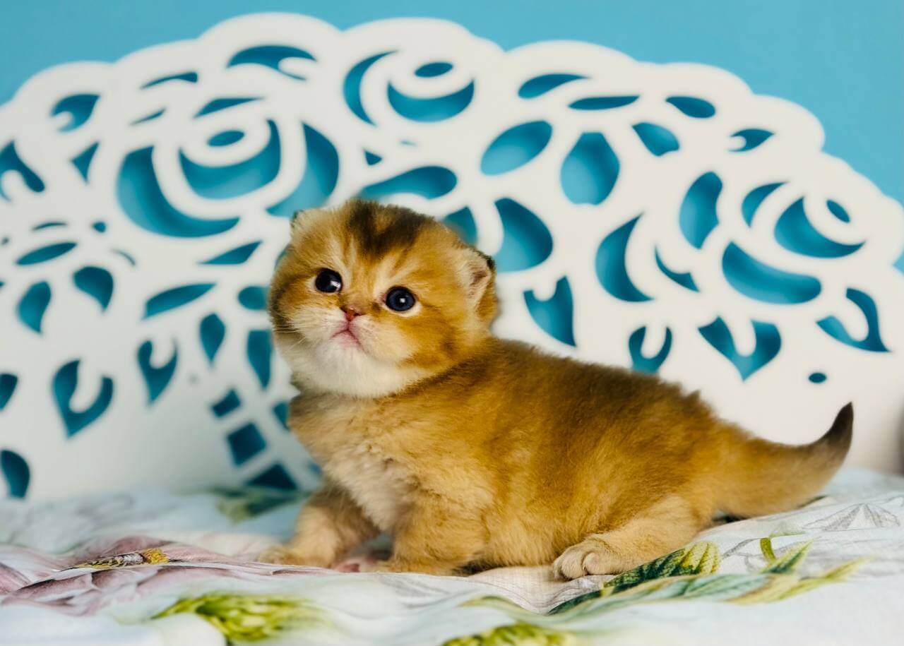 Uriel’s lush Chocolate Golden Shaded coat feels like velvet under your hands, shimmering with subtle golden highlights in the sunlight. When she looks up, her vivid green eyes radiate intelligence and a gentle warmth that immediately draws you in. Holding Uriel, you sense her calm grace and signature Scottish Straight sturdiness.