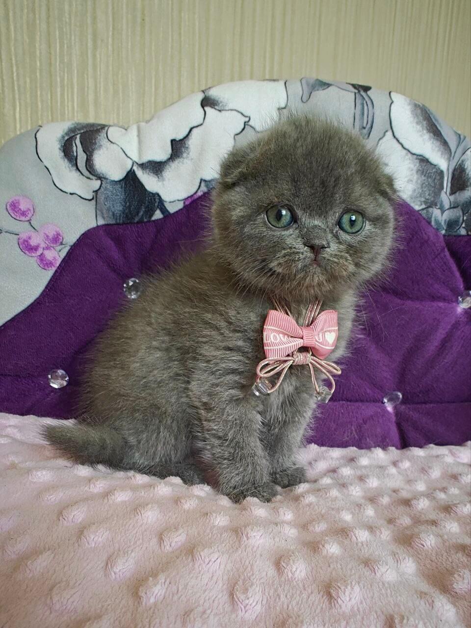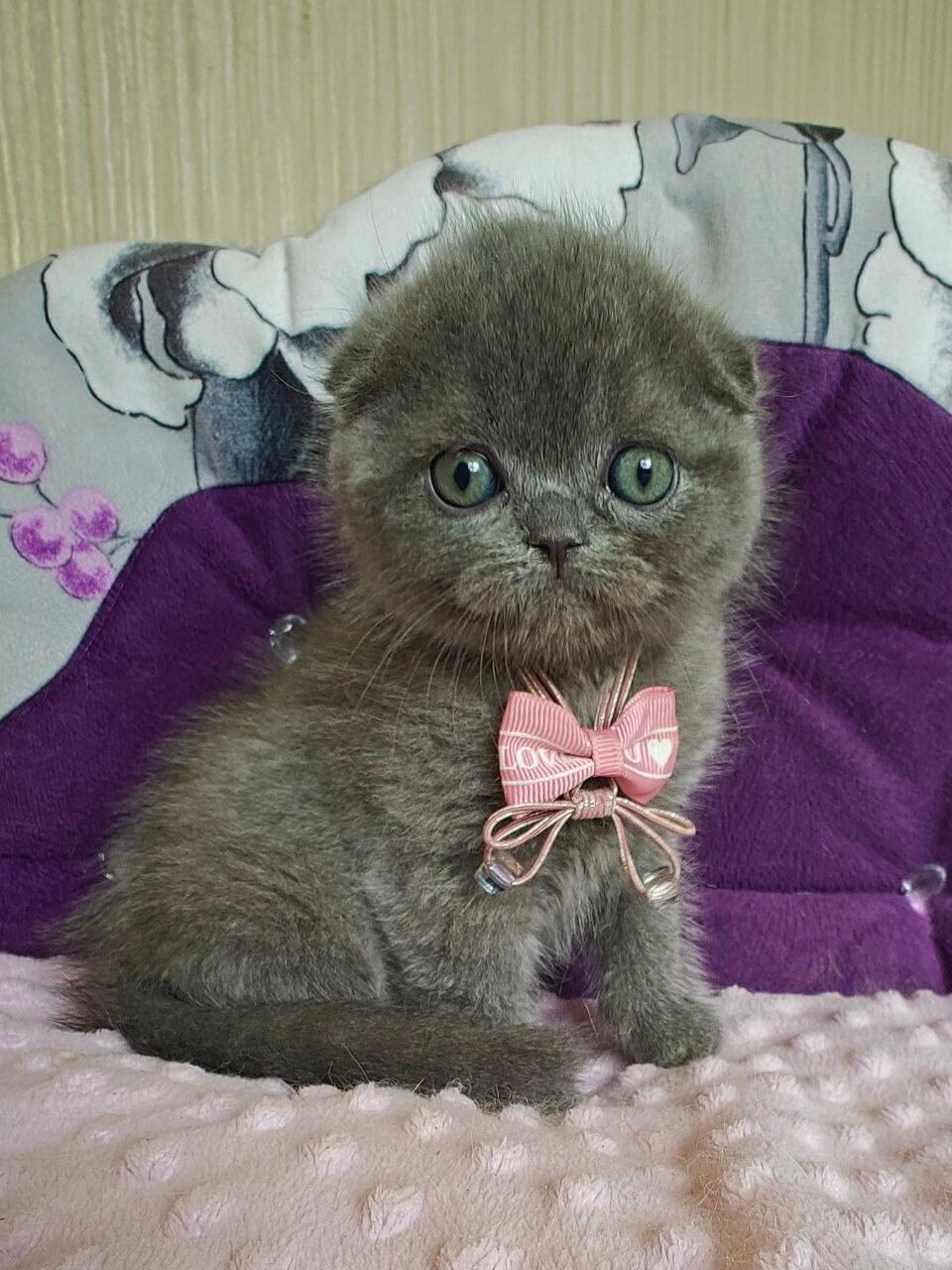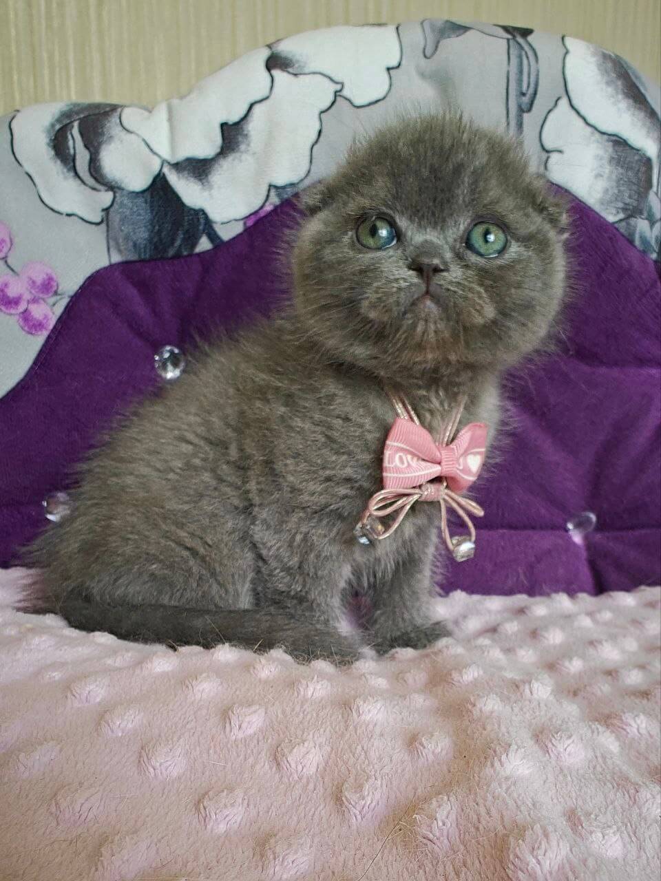 Meet Uslada, a blue Scottish Fold princess whose gentle purr is as soft as her powder-blue fur. With radiant yellow eyes that shine like morning sunbeams, Uslada wins hearts the moment she gazes up at you—her warmth and sweetness are impossible to resist.