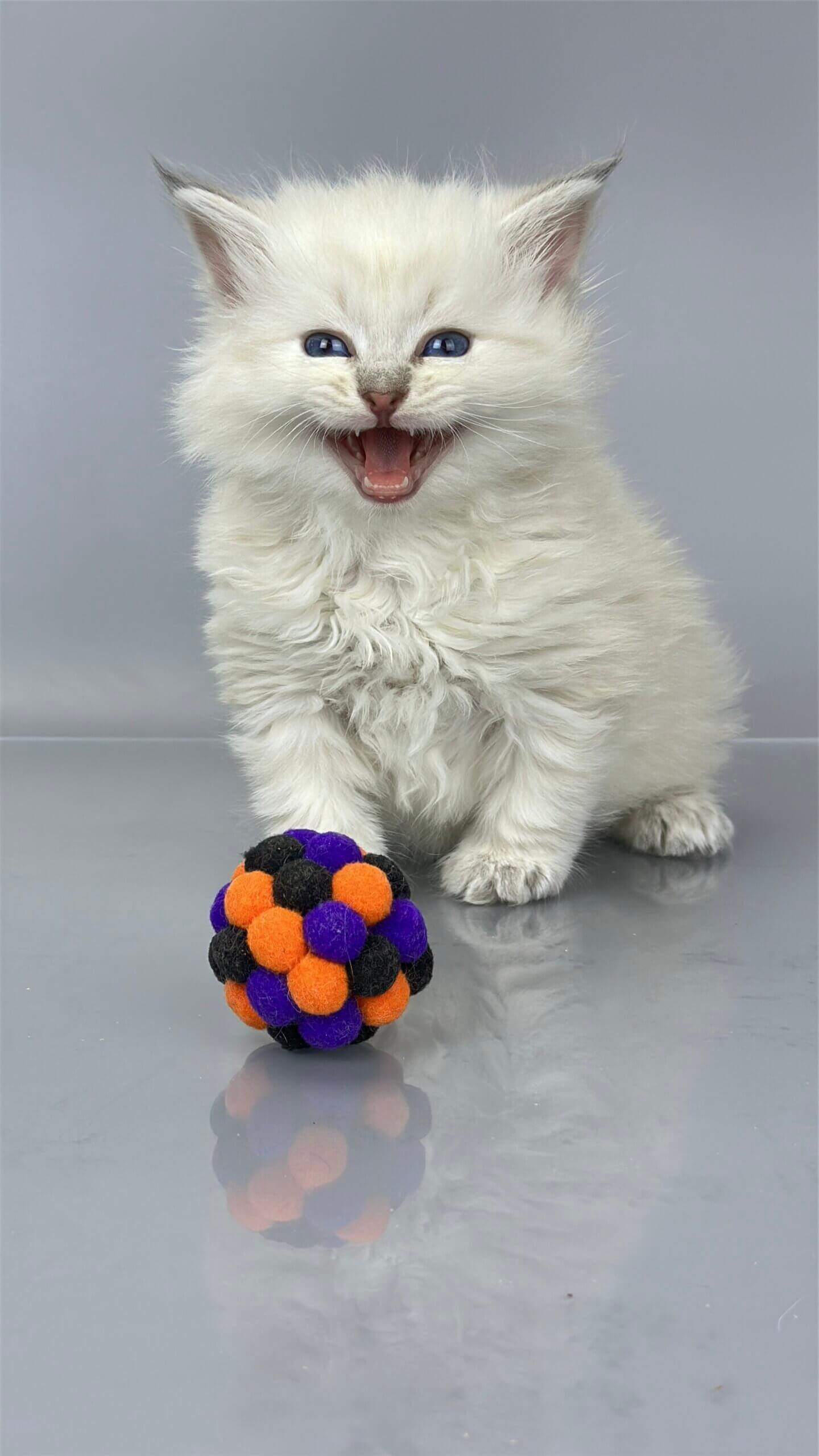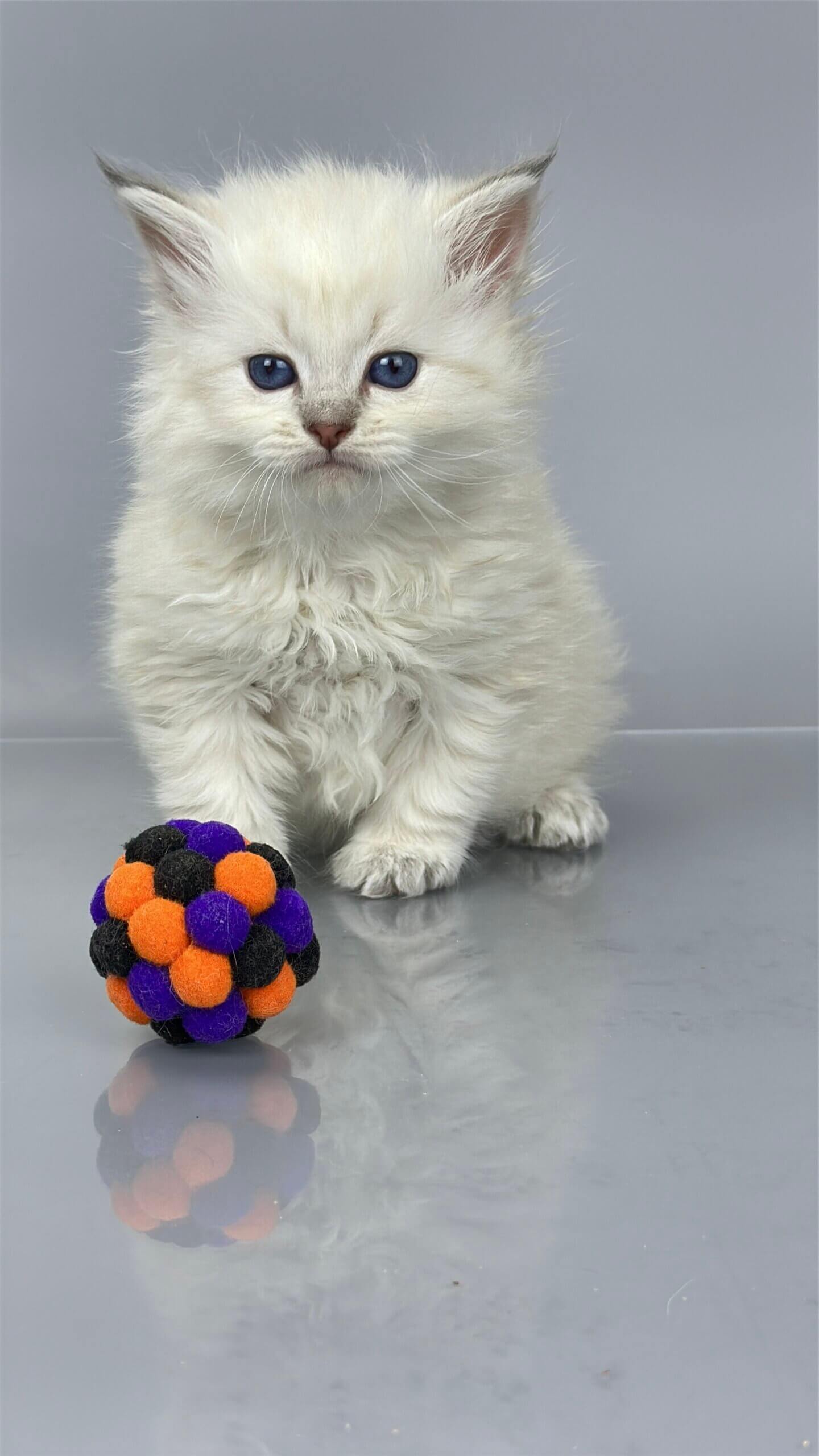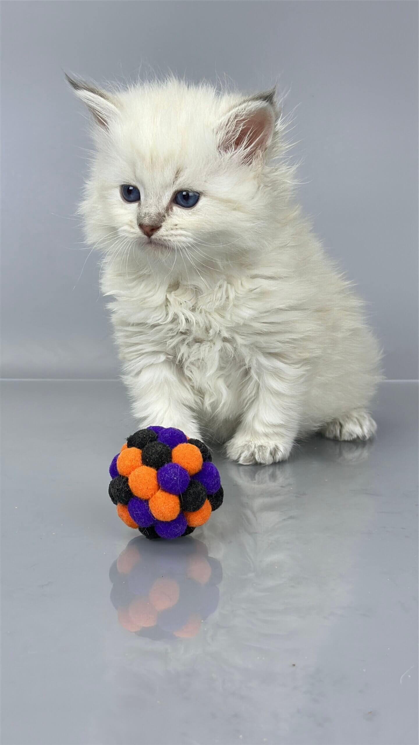 The moment you meet USYK, your heart will melt—just one look into his crystal-blue eyes and you’ll feel an instant bond with this exceptional Blue Tabby Point gentleman. Born for cuddles and calm companionship, USYK is a gentle soul with a soft, silken coat perfect for cozy evening snuggles. He purrs quietly when stroked, loves to chase feathers, and will gently nuzzle your hand for attention—all with the confidence and elegance of his champion heritage.