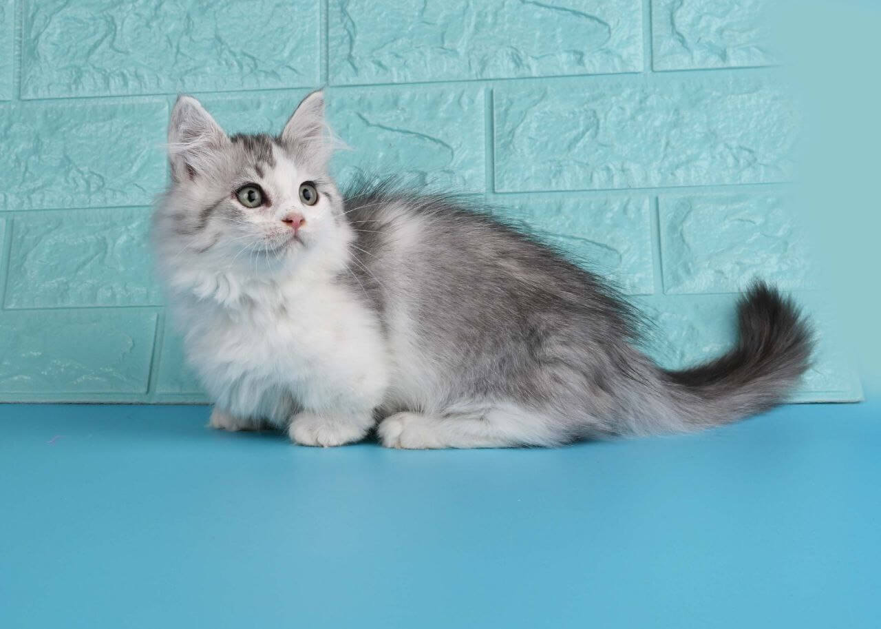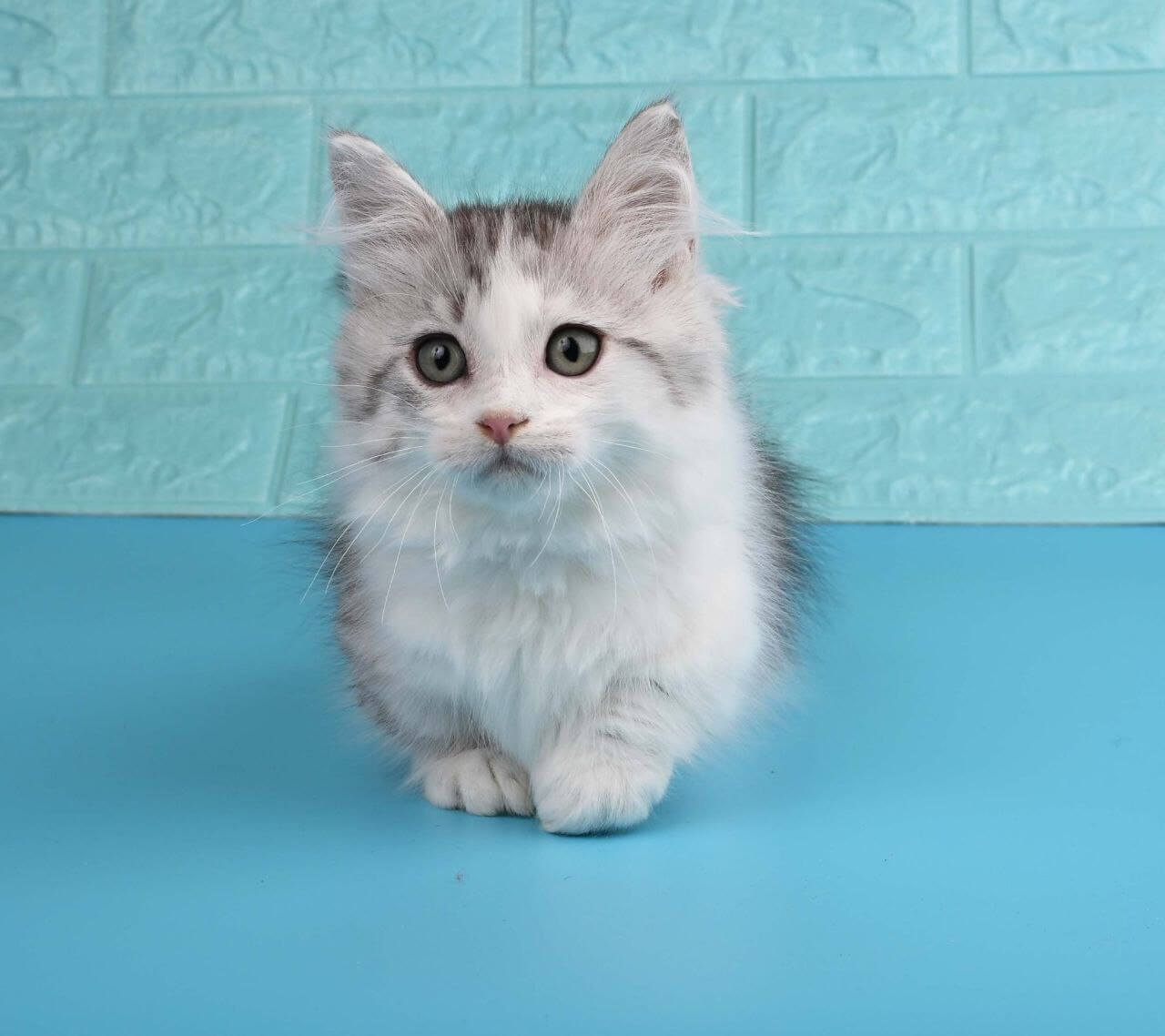 Meet Valeris, our enchanting Male Munchkin kitten—a tiny bundle of love wrapped in a plush black silver coat with the sweetest touches of white. His sparkling green eyes will surely steal your heart the moment you meet him, glowing with wonder and a gentle spirit that promises deep bonds and cozy cuddles.