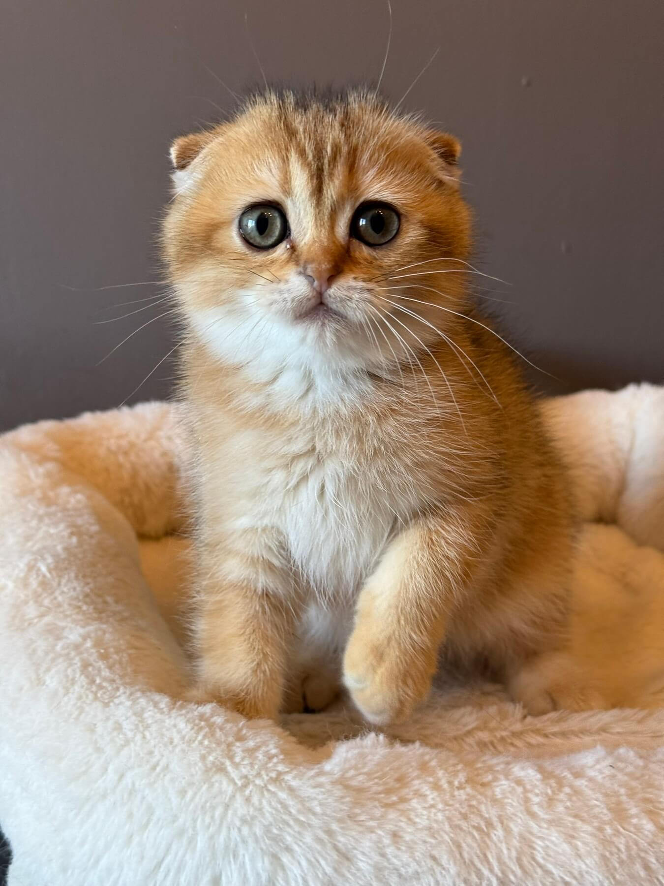 Meet Viola, an exquisite female Scottish Fold with champion bloodlines, now available on Meowoff’s kitten sale page. This stunning kitten boasts a mesmerizing black golden shaded coat and striking green eyes. Born on June 29, 2025, Viola will be ready to charm her new family starting October 29, 2025. With her show-quality pedigree, she’s registered and conditionally pedigreed, and will be spayed/neutered to ensure a happy pet life. Currently located in Europe, Viola is available for reservation in the USA through our website. She will be ready for pick-up in Wood Dale, or delivery can be arranged from Chicago to other states. We offer 7-day support for all of Viola’s needs, and she thrives with wood pallets or clumping litter. To reserve this adorable kitten, a non-refundable $500 deposit is required. For more details about Viola and to see her playful side, visit our Instagram page.