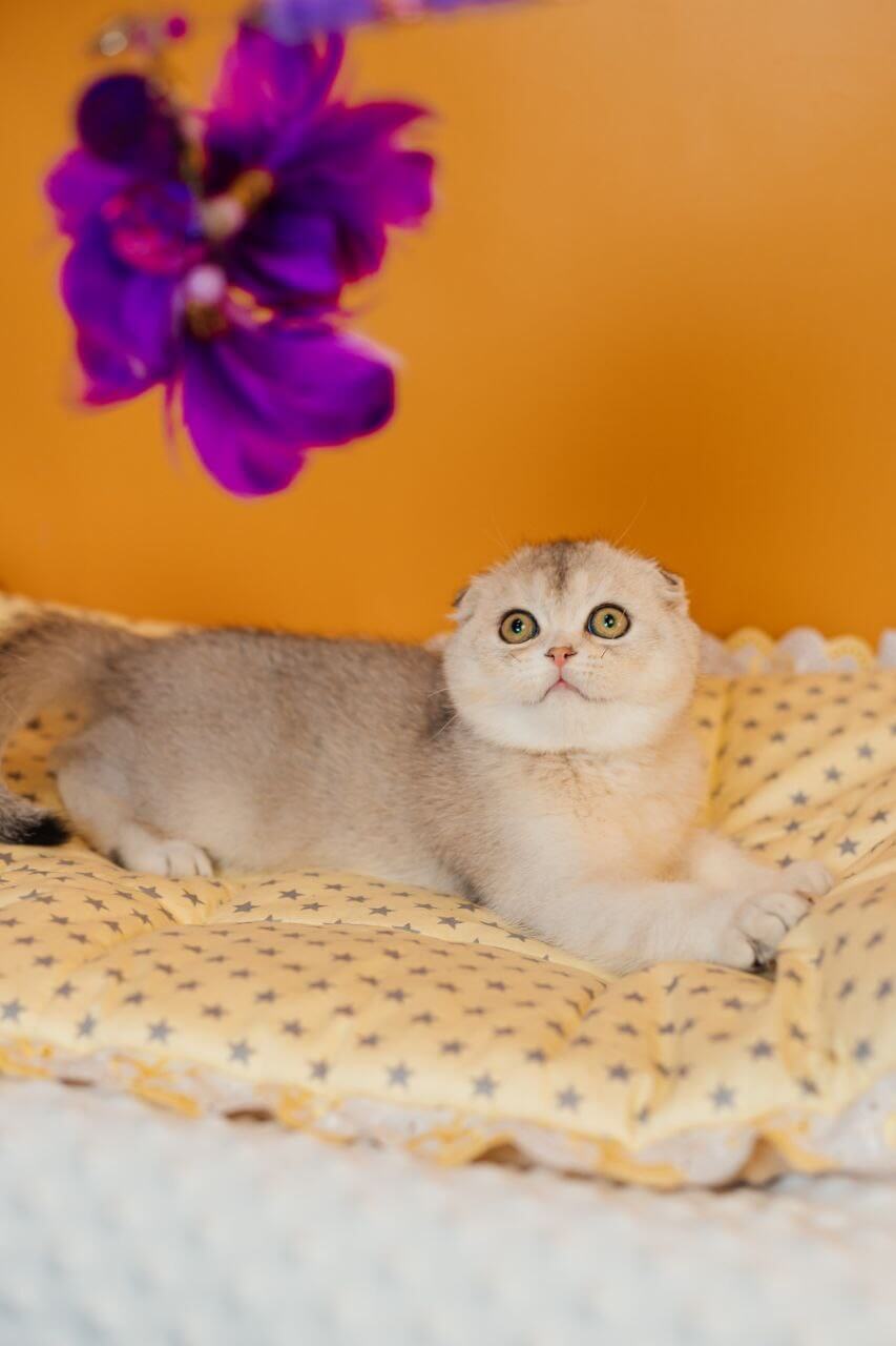 Meet Vivian, a stunning female Scottish Fold available for adoption. Boasting a gorgeous black silver tabby ticked coat and enchanting green eyes, Vivian is truly a show-quality kitten with champion bloodlines. Born on July 23, 2025, she’ll be ready to join her new family by November 23, 2025. Vivian comes with a pedigree (conditional – ask for price) and is registered. Her future home will receive full support for any needs 7 days a week. Vivian can be purchased as a beloved pet with neutering/spaying, or with breeding rights upon request. She is available for reservation on our website, and can be picked up at our Wood Dale, USA location, with delivery options available from Chicago to other states. A non-refundable deposit of $500 is required to hold Vivian just for you. Join us on Instagram to catch a glimpse of Vivian and our other adorable kittens in action!