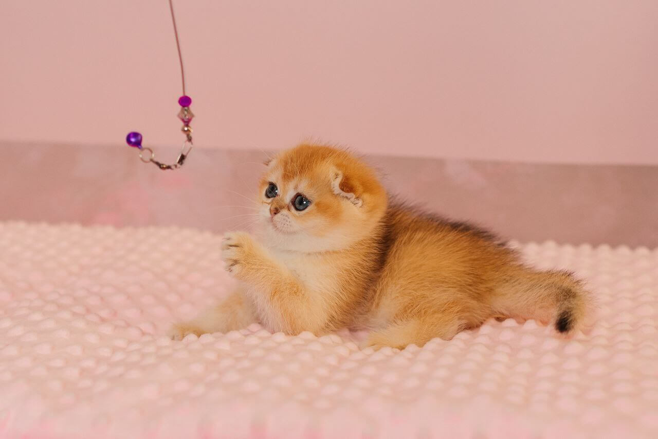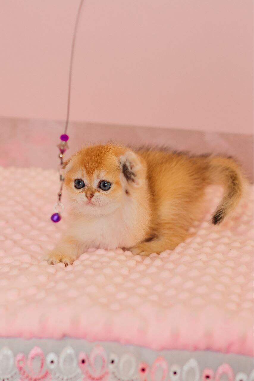 From the moment Wednesday blinks her enchanting green eyes up at you, you’ll feel a gentle warmth settle in your heart. This Scottish Fold princess is cloaked in a rare black golden shaded coat, her velvet-soft fur perfect for endless snuggles and soothing purrs on chilly evenings.