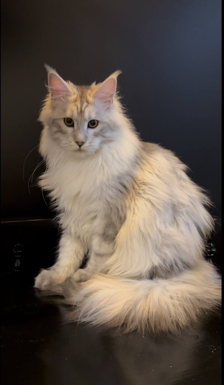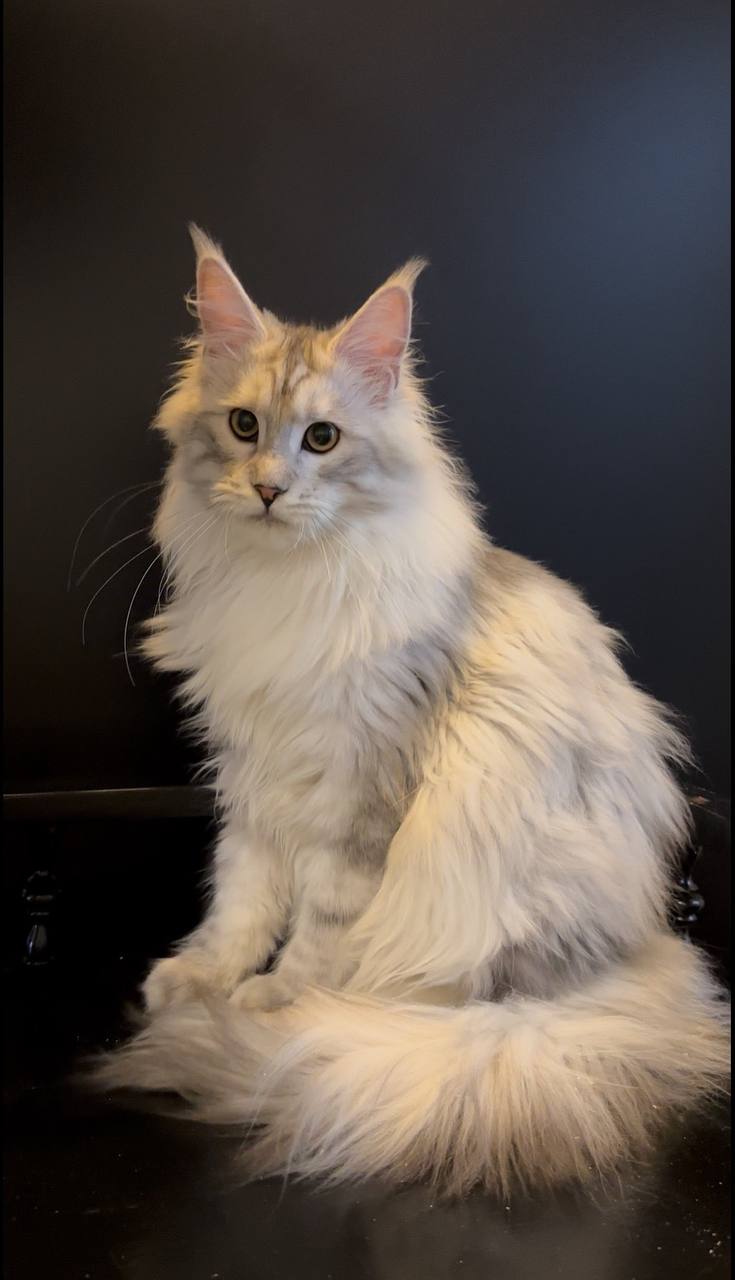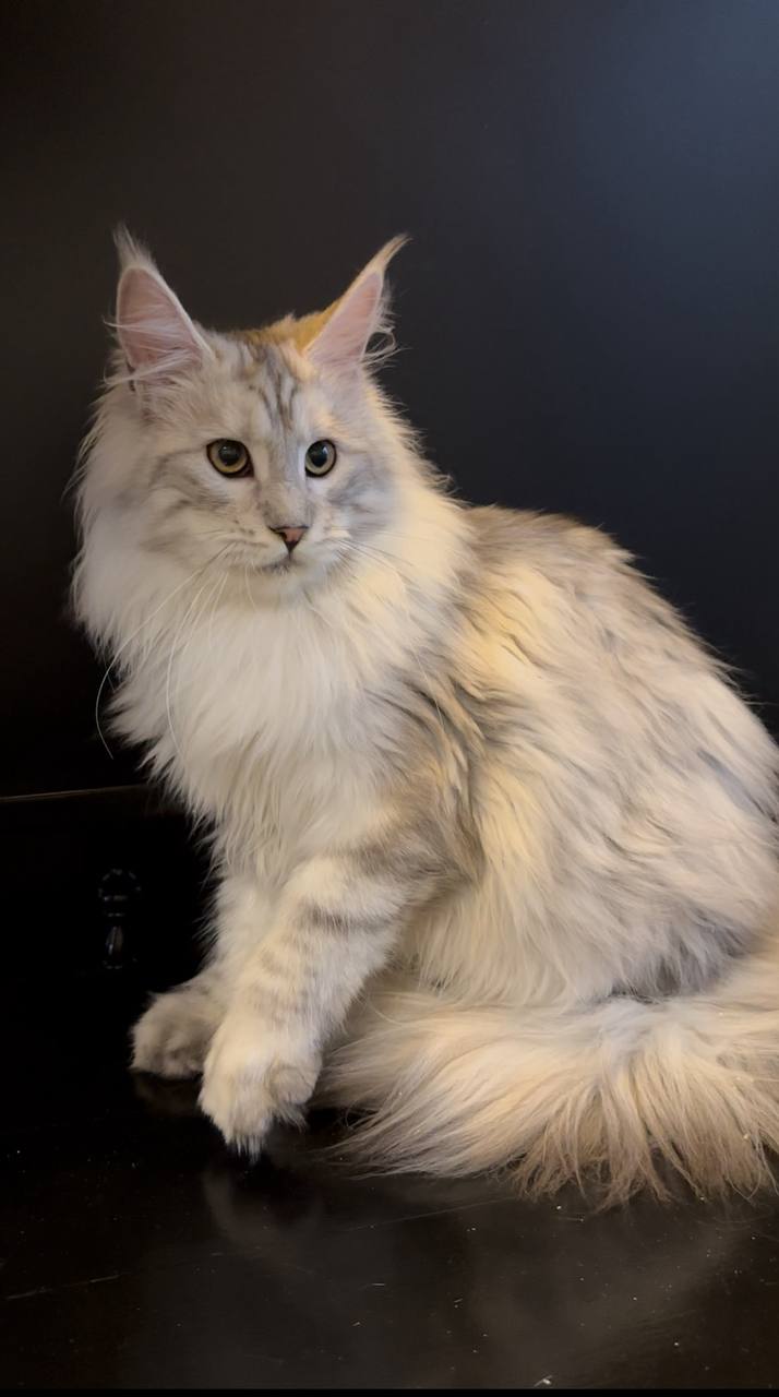 West is a striking black silver tabby Maine Coon boy, brimming with playful charm. With a purr as deep as his pedigree and show-quality looks, he’s endlessly fascinated by gentle cuddles, feather toys, and the joy of curling into your arms after a fun-filled day. Calm, intelligent, and full of love: he’ll greet you at the door with his plush tail and nuzzle you for attention.