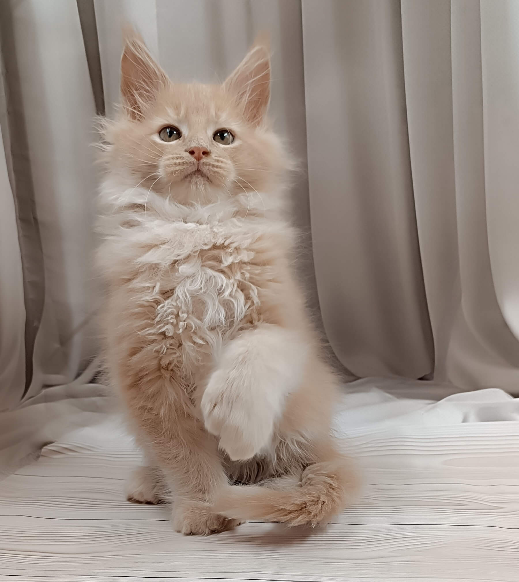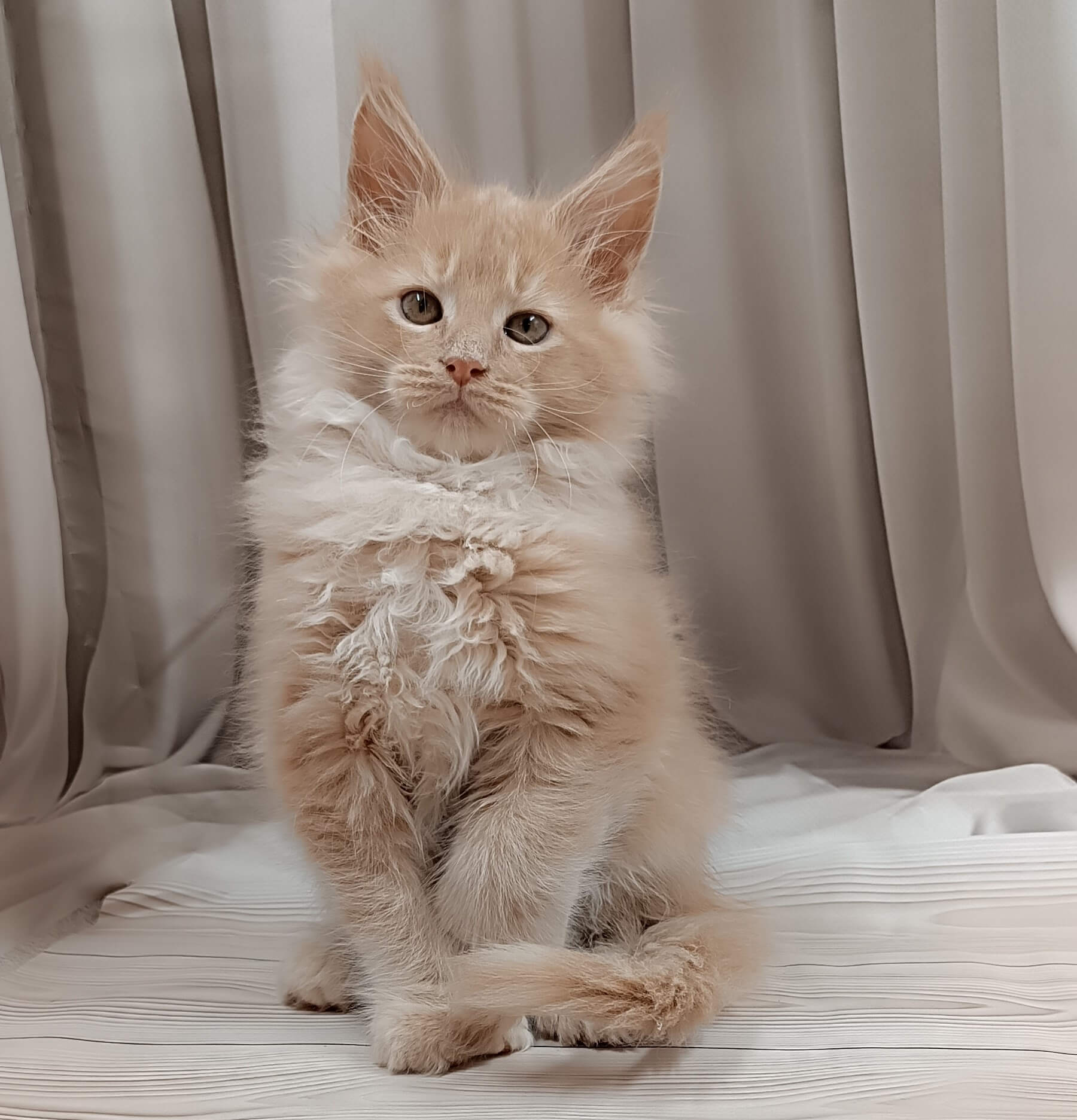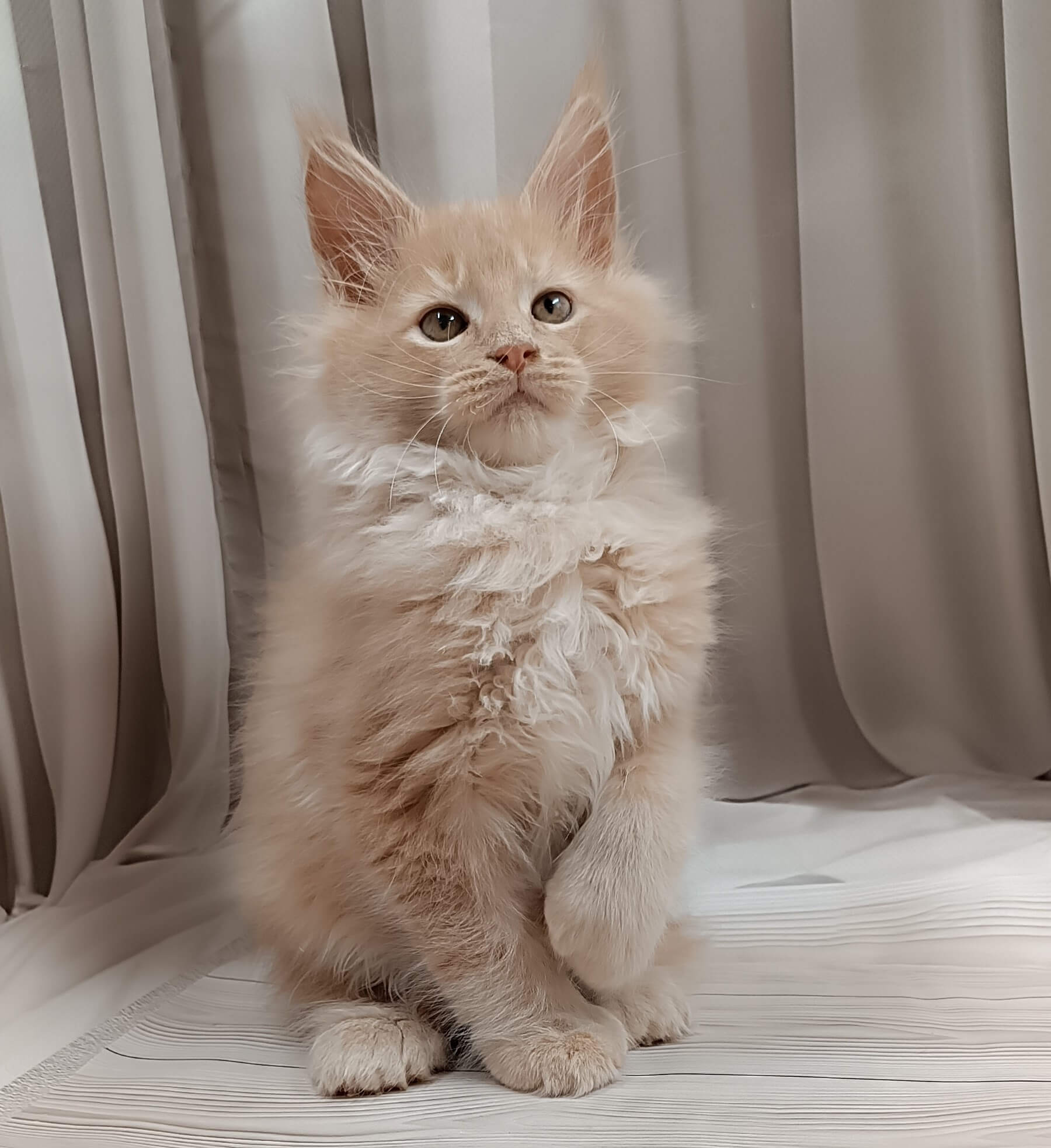 Born from champion bloodlines, West is more than beautiful—he’s a sunbeam of joy with a loyal, intelligent temperament. He adores gentle cuddles, follows you with curious steps, and will sit contentedly in your lap, making every day feel special. His plush cream coat and golden eyes are mesmerizing, and his playful presence fills the room with peace and gentle energy.