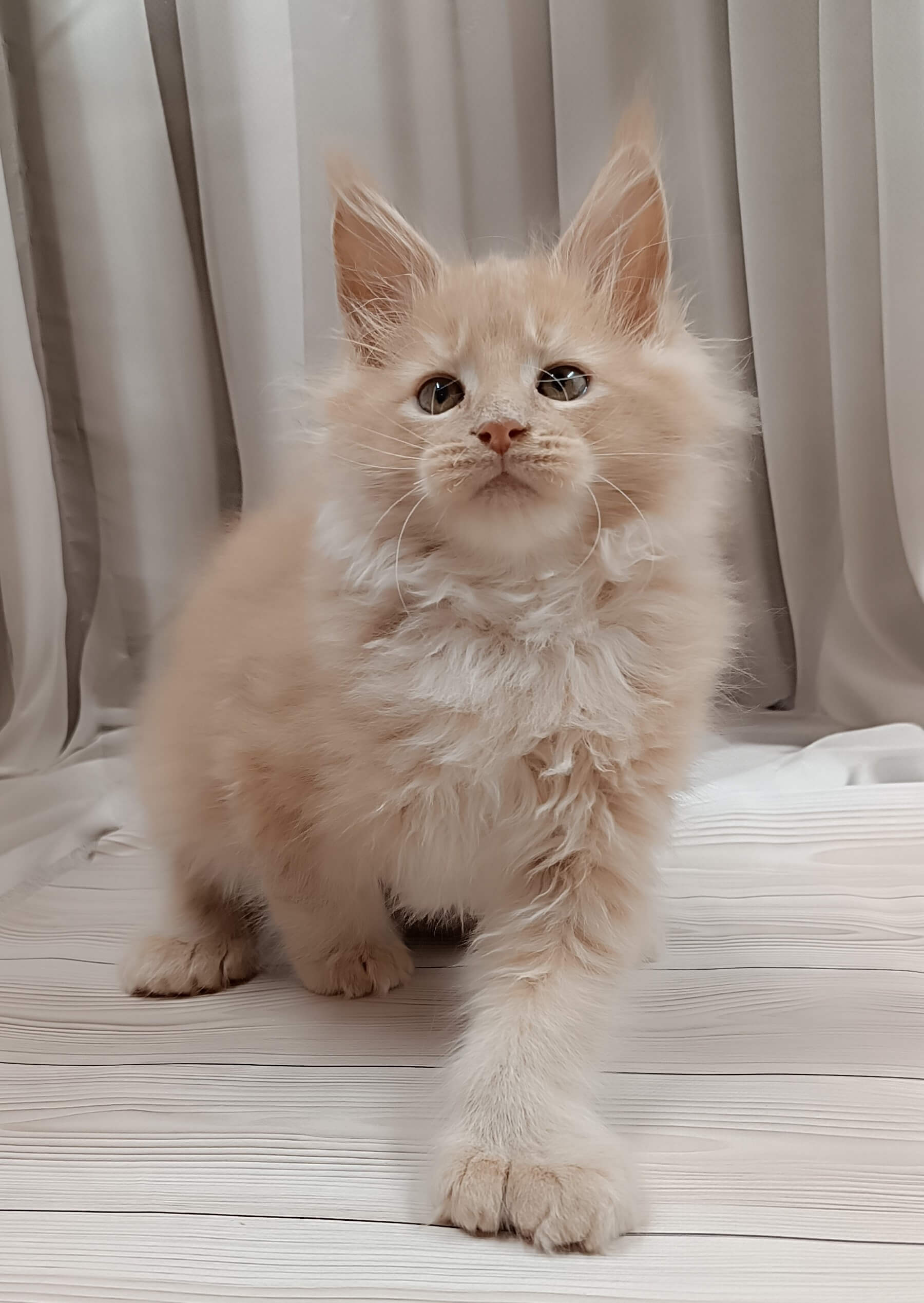 Imagine warm sunlight in kitten form—soft, creamy fur, gentle paws, and melting yellow eyes that gaze at you with pure affection. From his very first purr, West wraps your heart in comfort and promise.