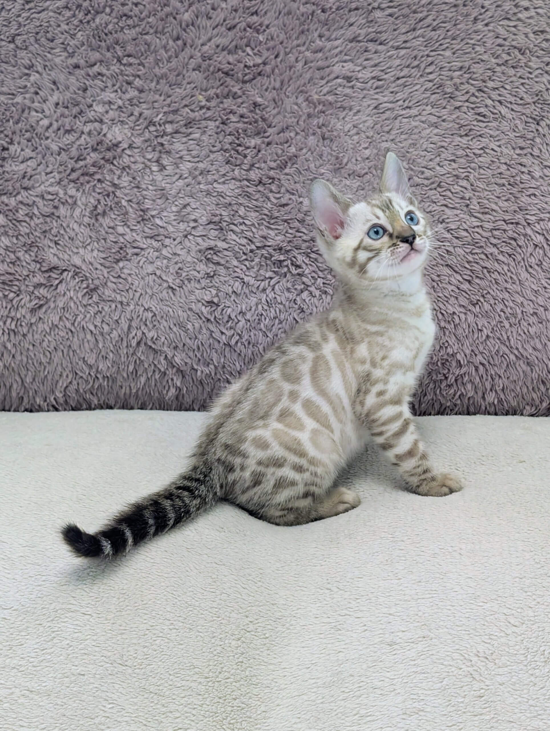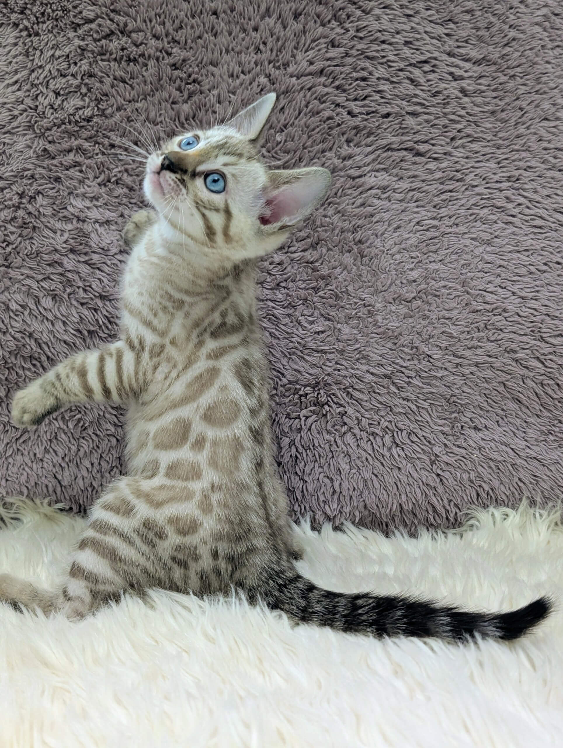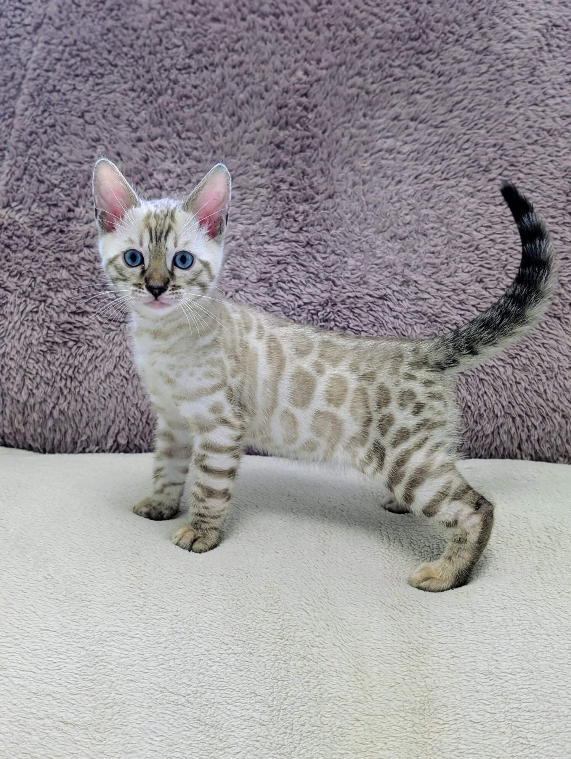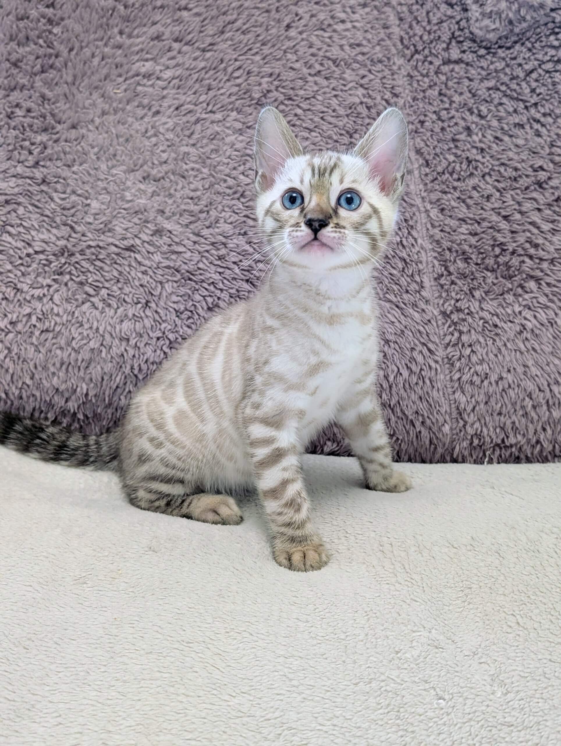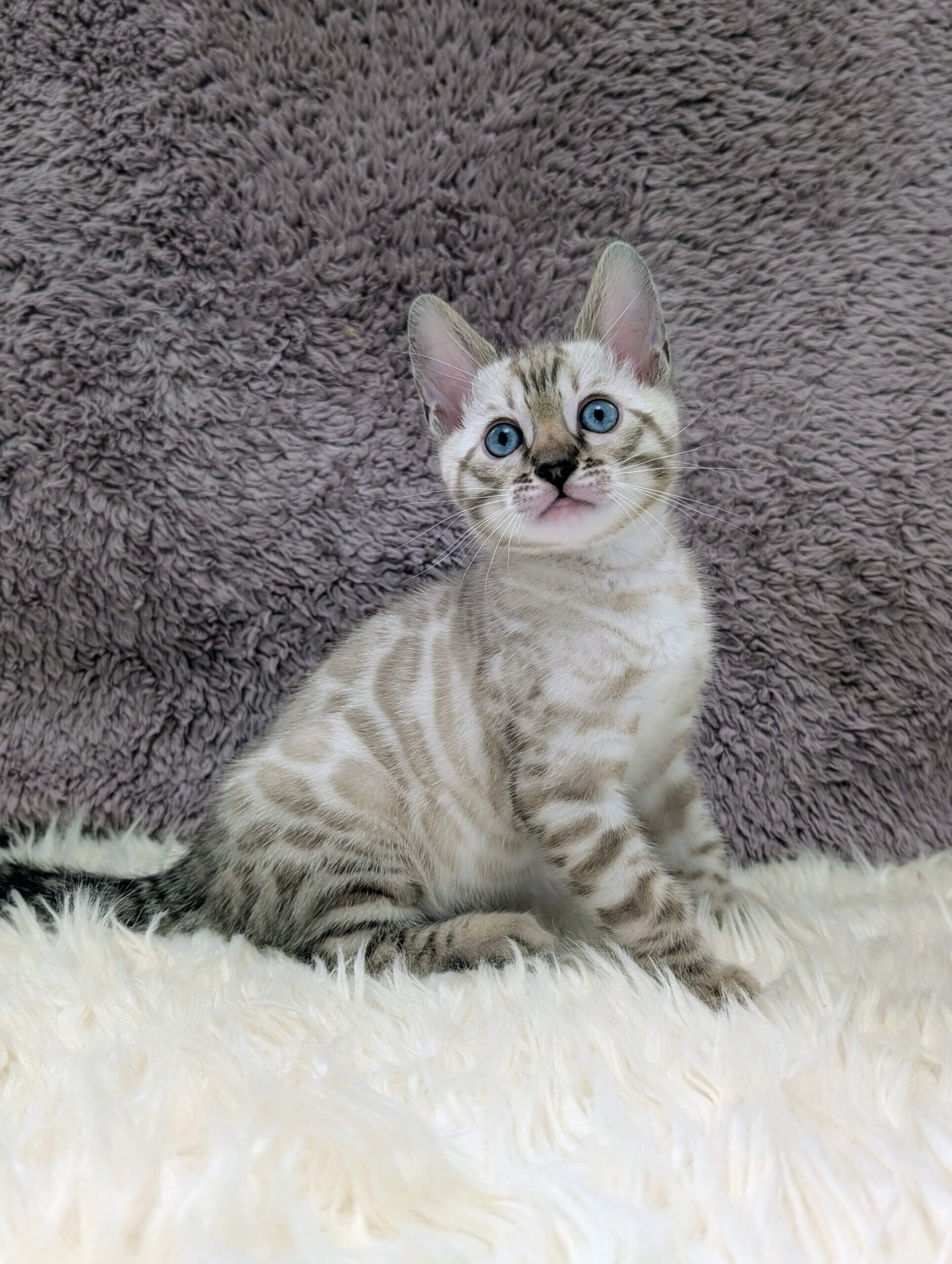 Meet your new heart-stealer: a breathtaking White Seal Spotted Tabby Silver Mink boy with glacier-blue eyes that will melt your worries away from the very first cuddle.