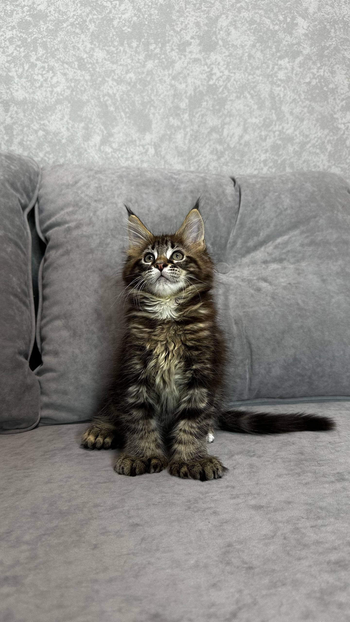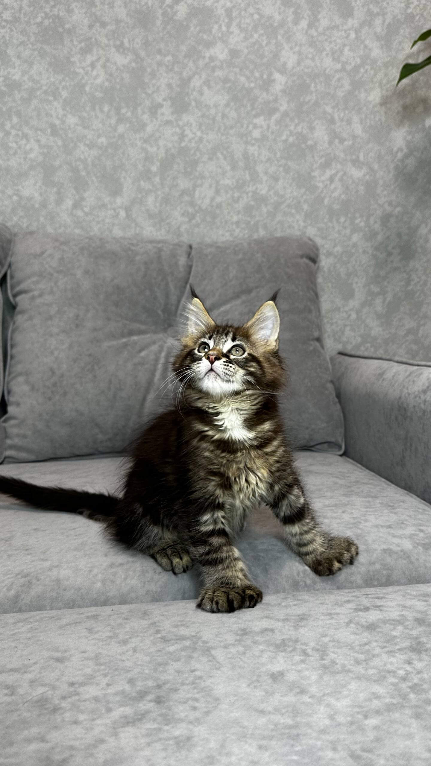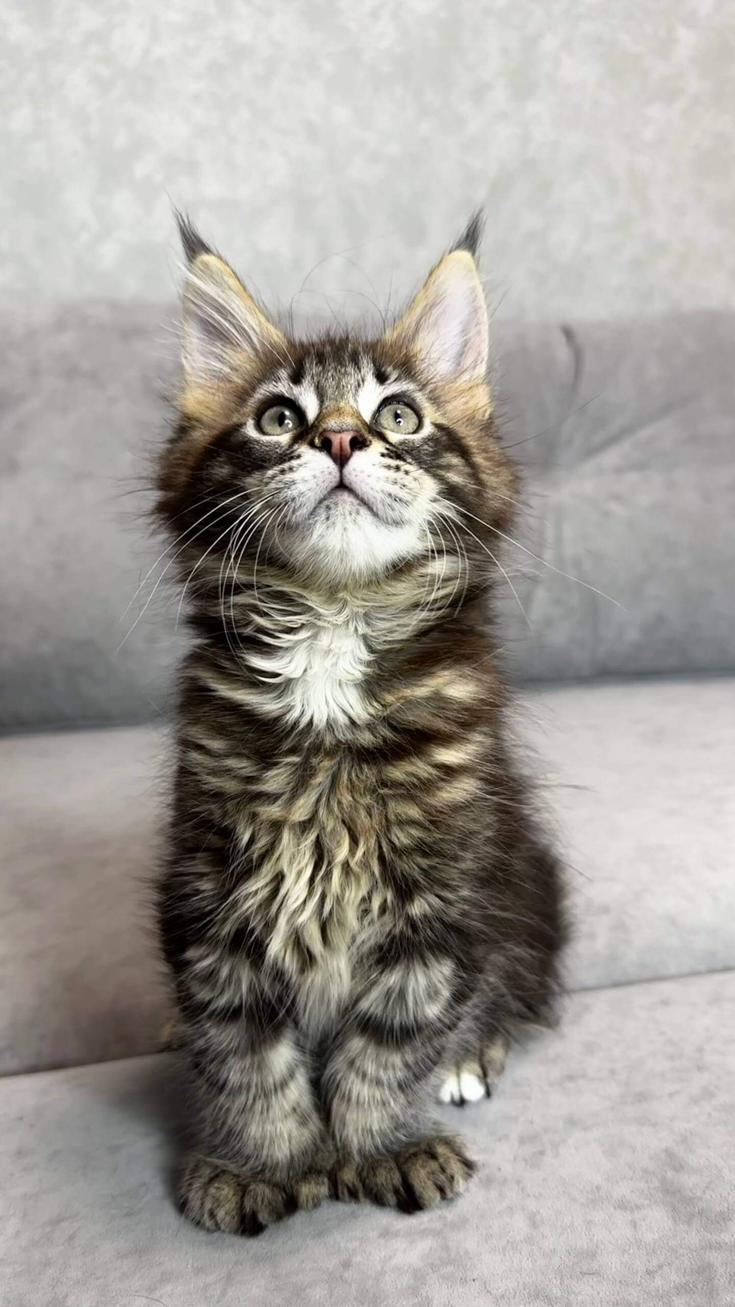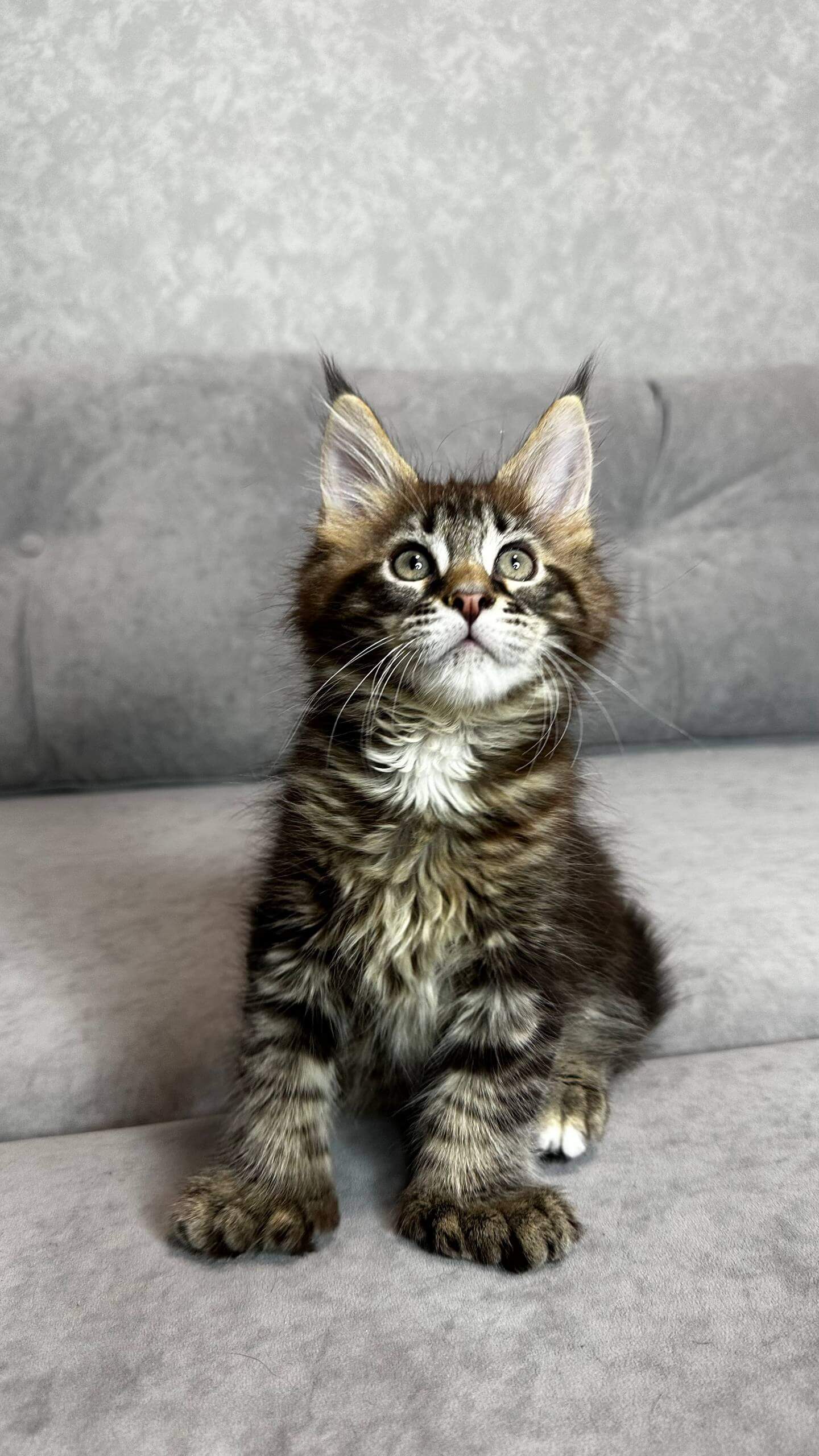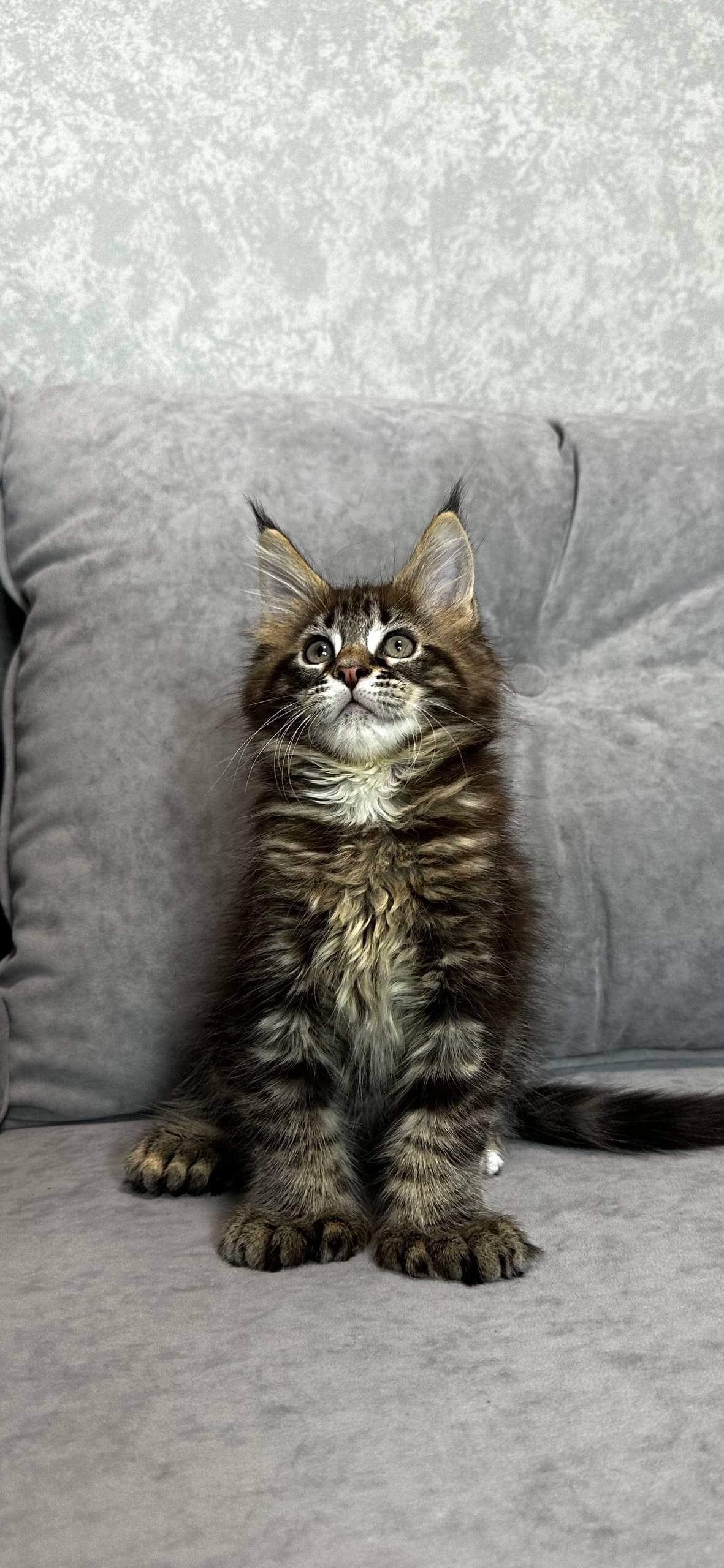 Brimming with curiosity and gentle confidence, this show-quality kitten promises laughter and affection. Watch him playfully stalk and then curl up contentedly beside you, his powerful lineage evident in every graceful leap and reassuring nuzzle. His striking looks and affectionate spirit make him both a stunning companion and a loyal heart-stealer.