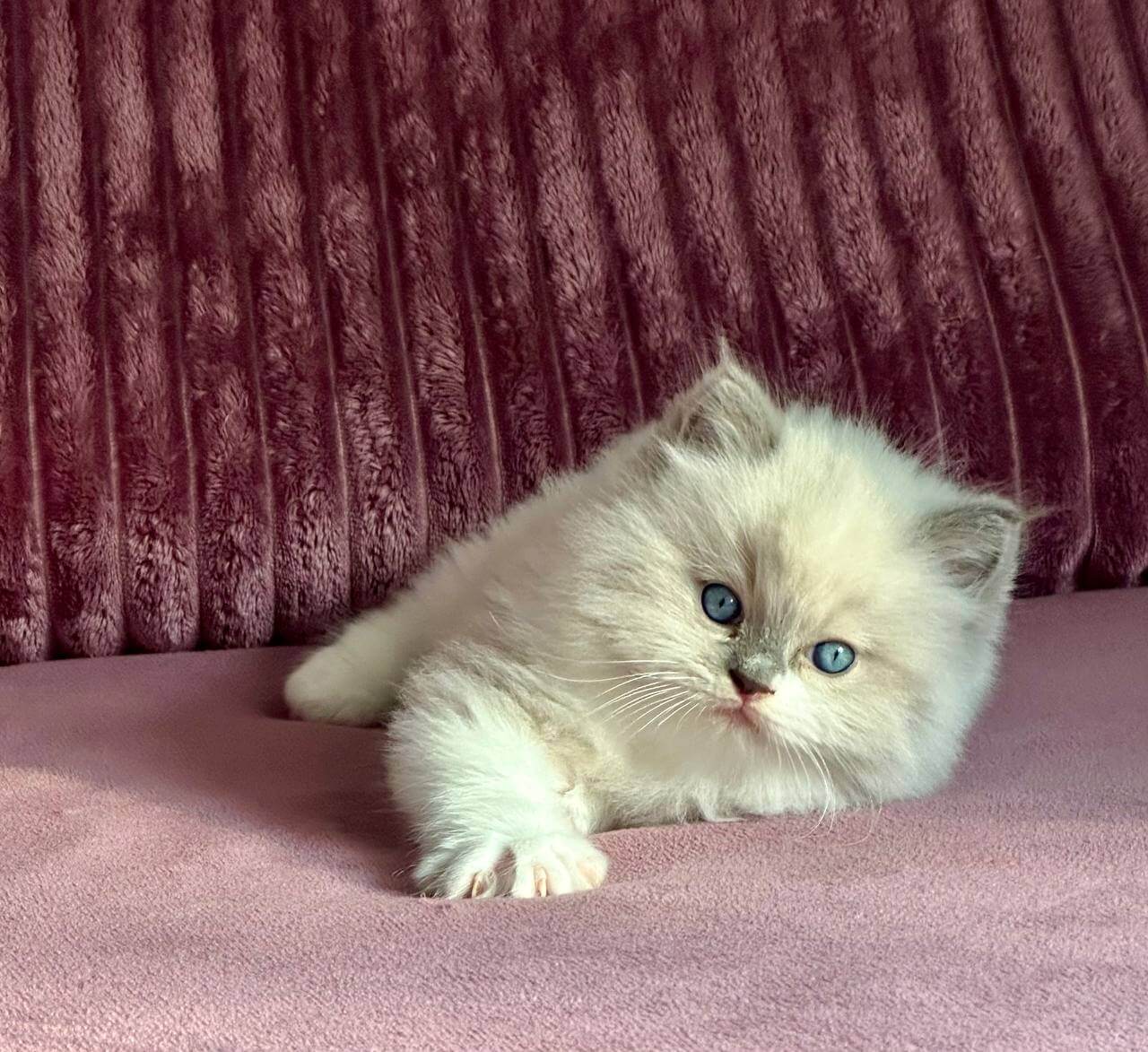 From the moment he curls against you, William will melt your heart with his plush blue bicolor coat and soulful sapphire eyes—filled with endless devotion and gentle charm. He’s a true Ragdoll: soft as velvet to the touch, eager for every cuddle, and always eager for sweet purring snuggles.
